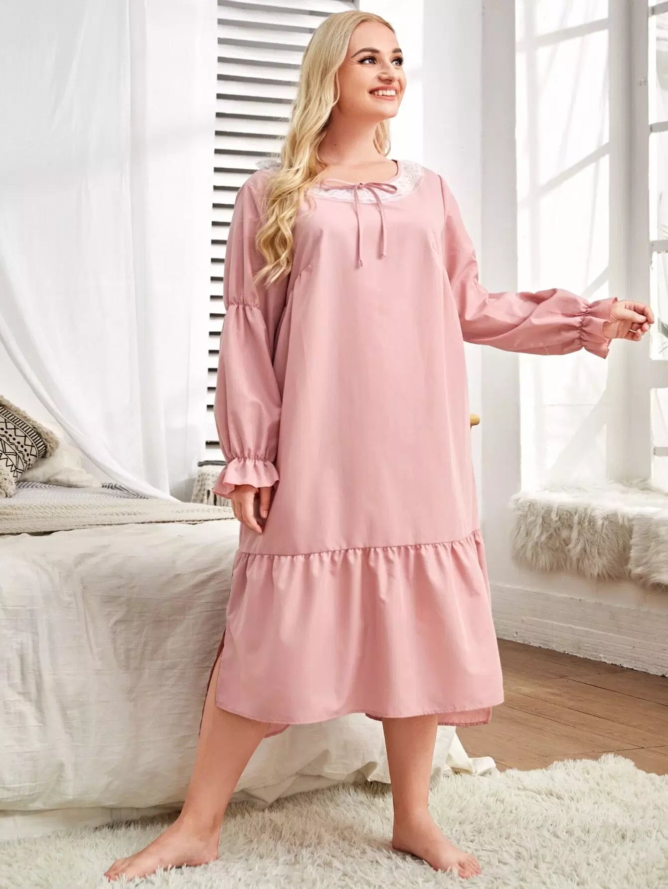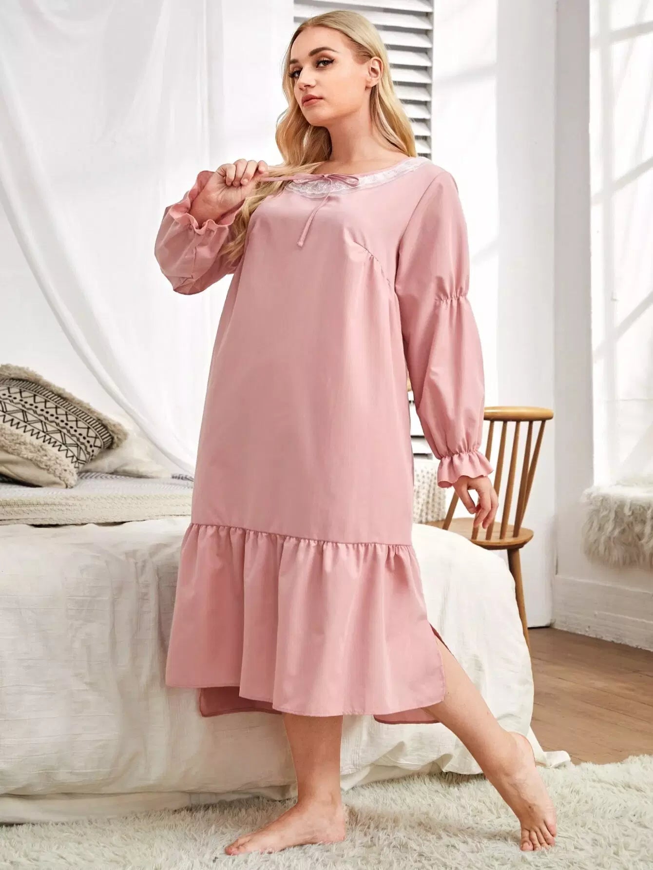 فستان سهرة بفتحة من الدانتيل المنفصل المكشكشوف الحاشية