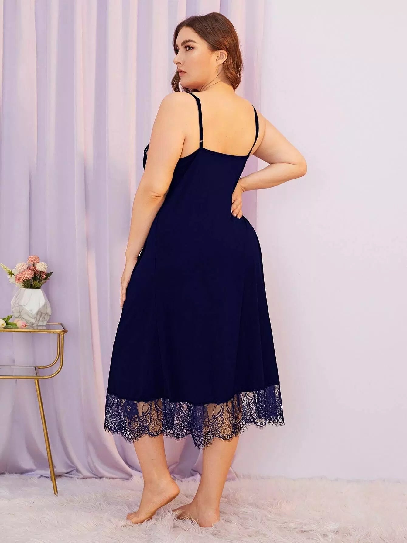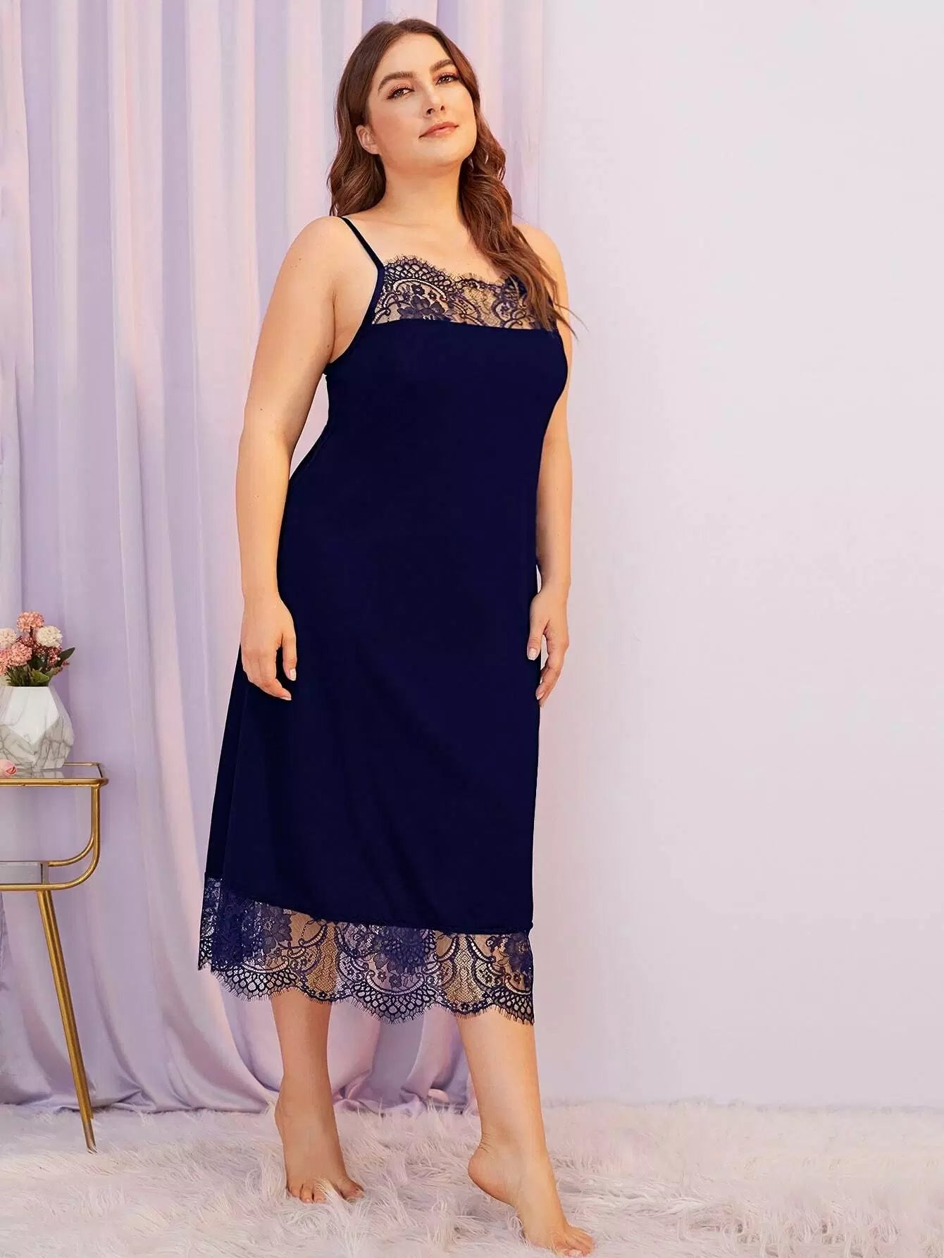 نحيف - مقاس كبير فستان نوم مزين بالدانتيل