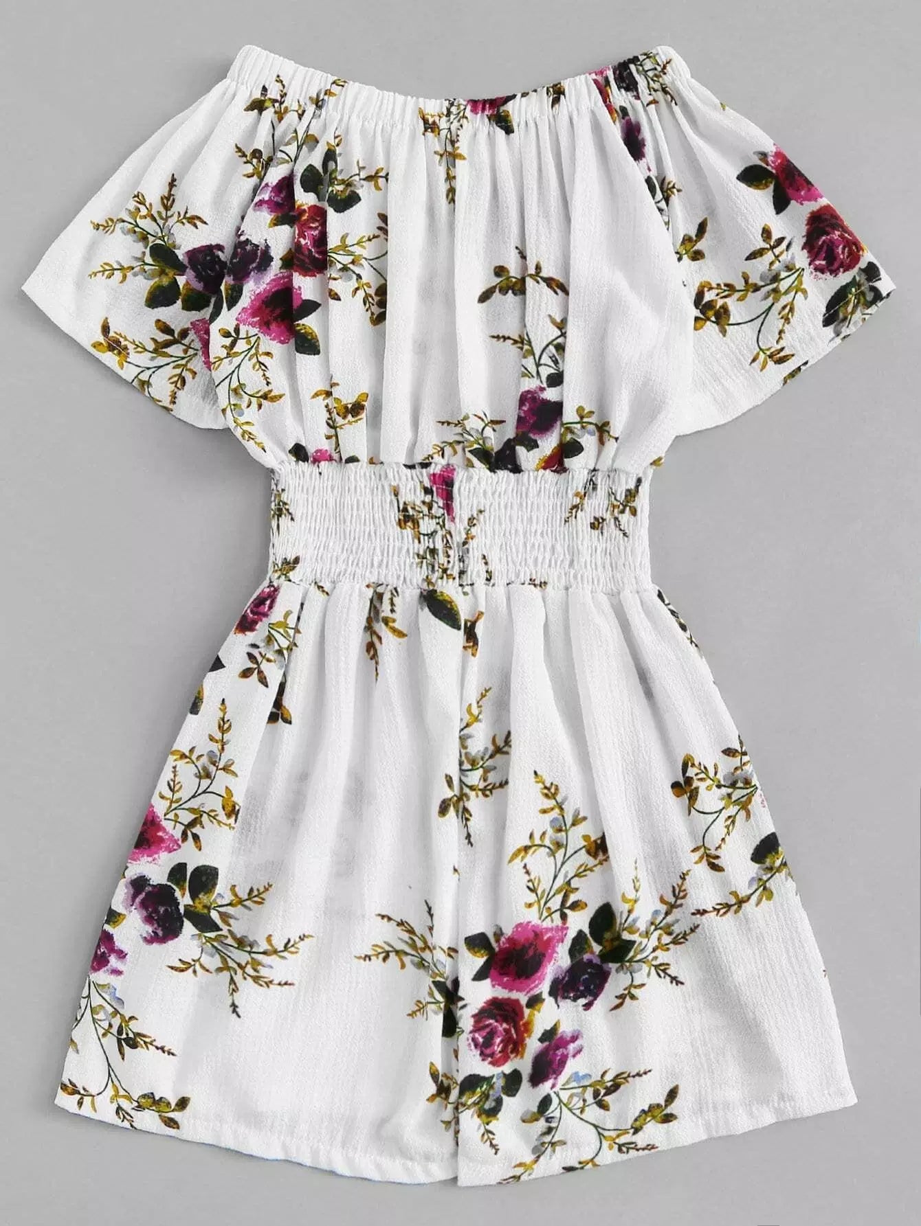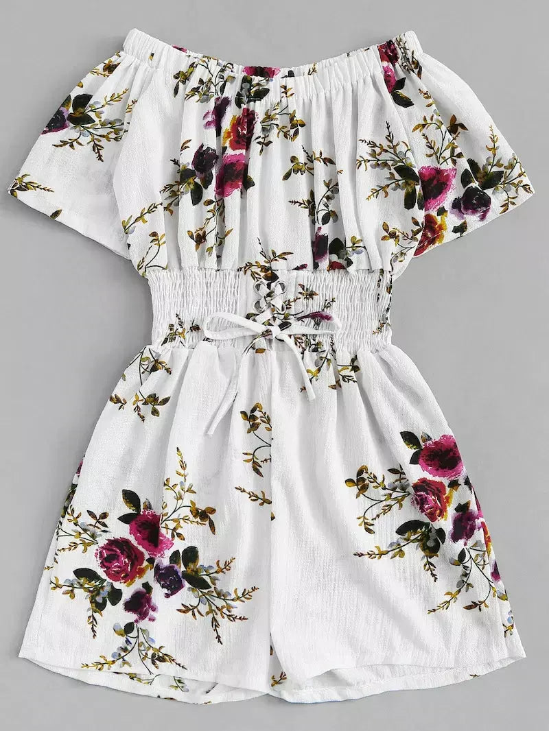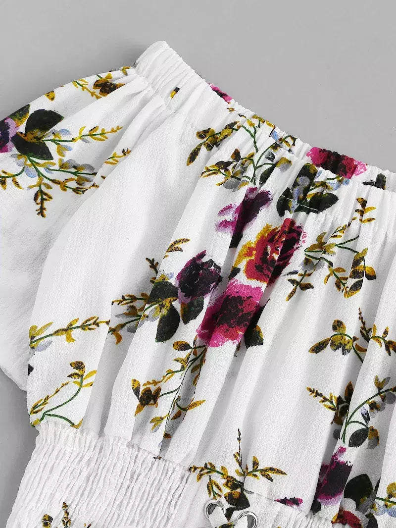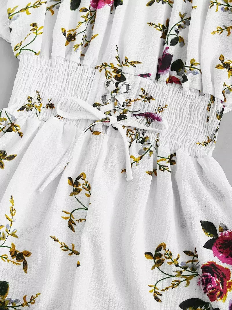 رومبر بطبعة زهور مطبوعة بأربطة بلاس بلس