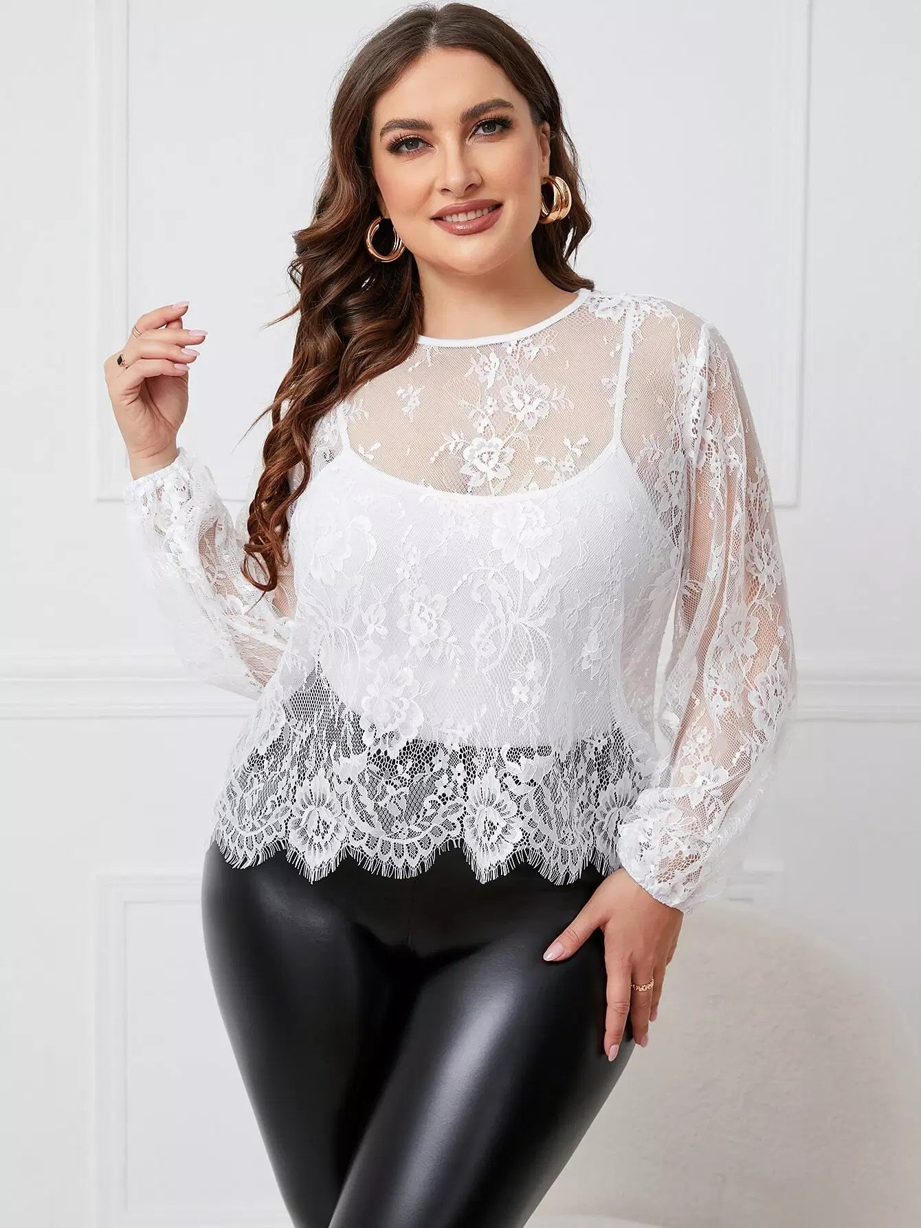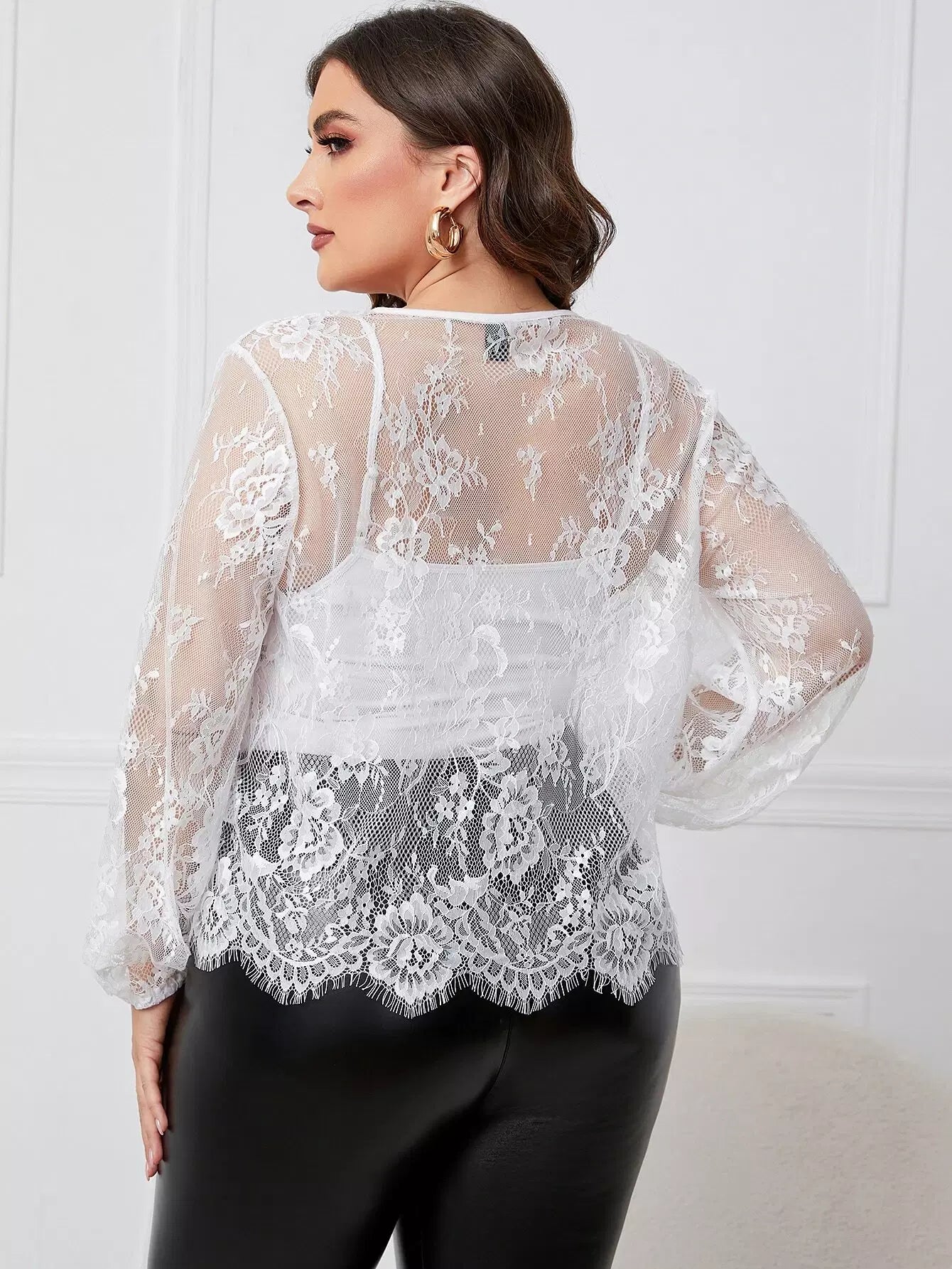 بلوزة من الدانتيل بأكمام فانوس بأهداب من الدانتيل الزهري