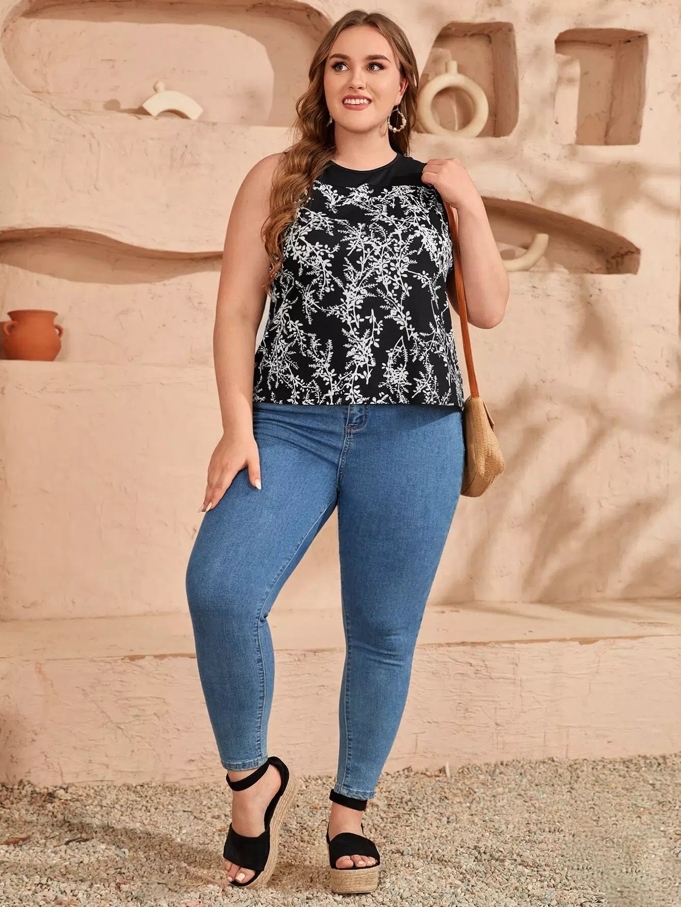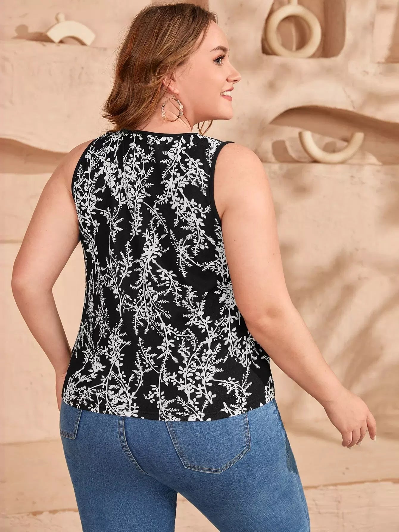 توب بدون أكمام بطبعة أوراق الشجر