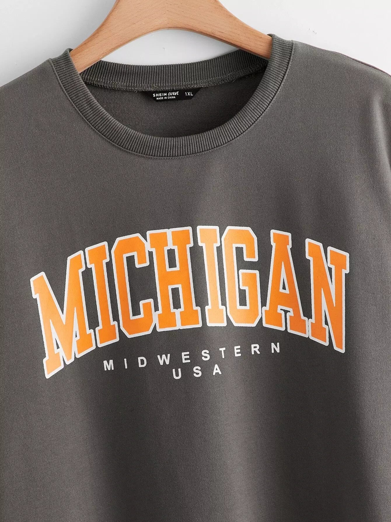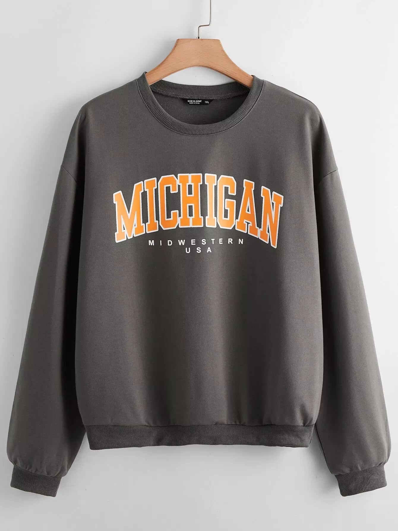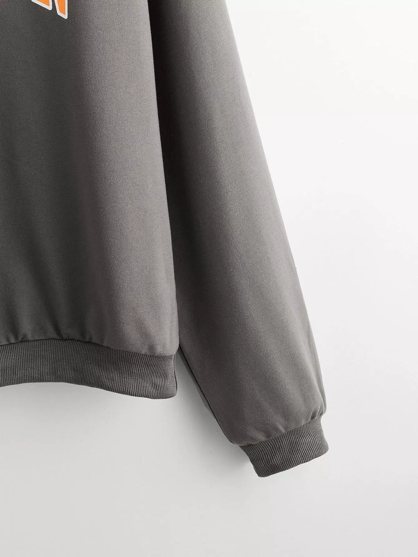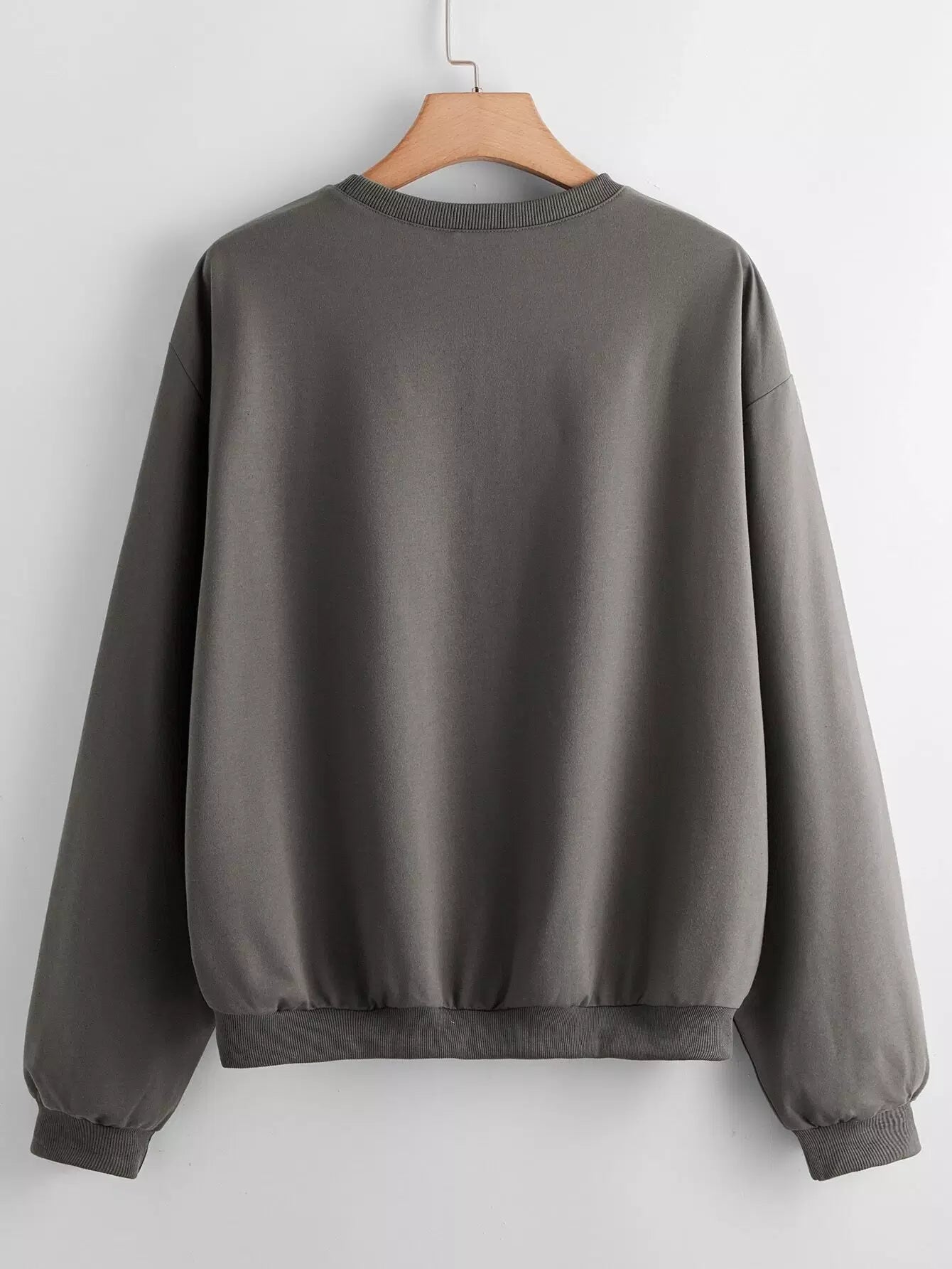 نحيف - مقاس كبير سويت شيرت بكتف منسدل برسومات الحروف