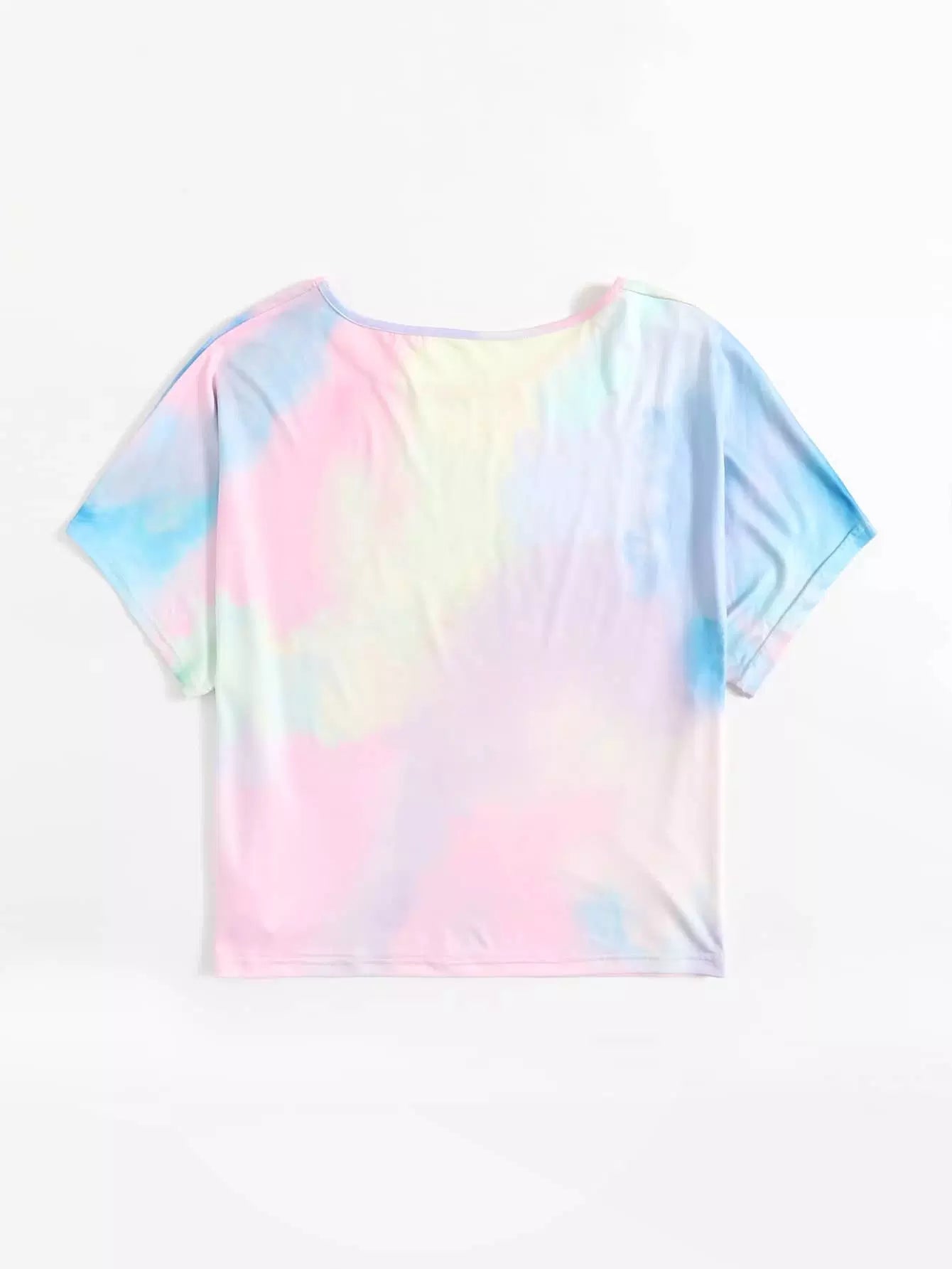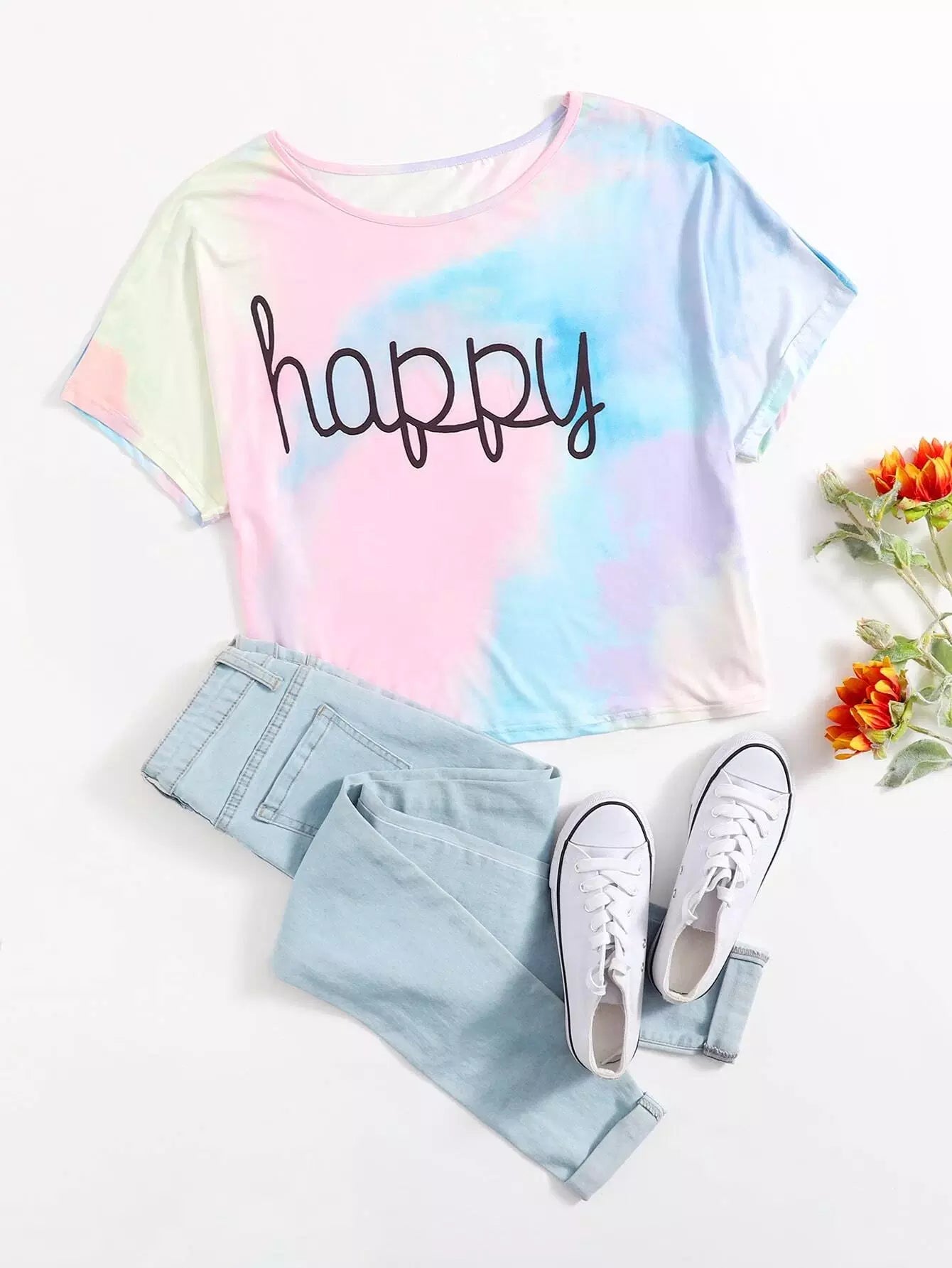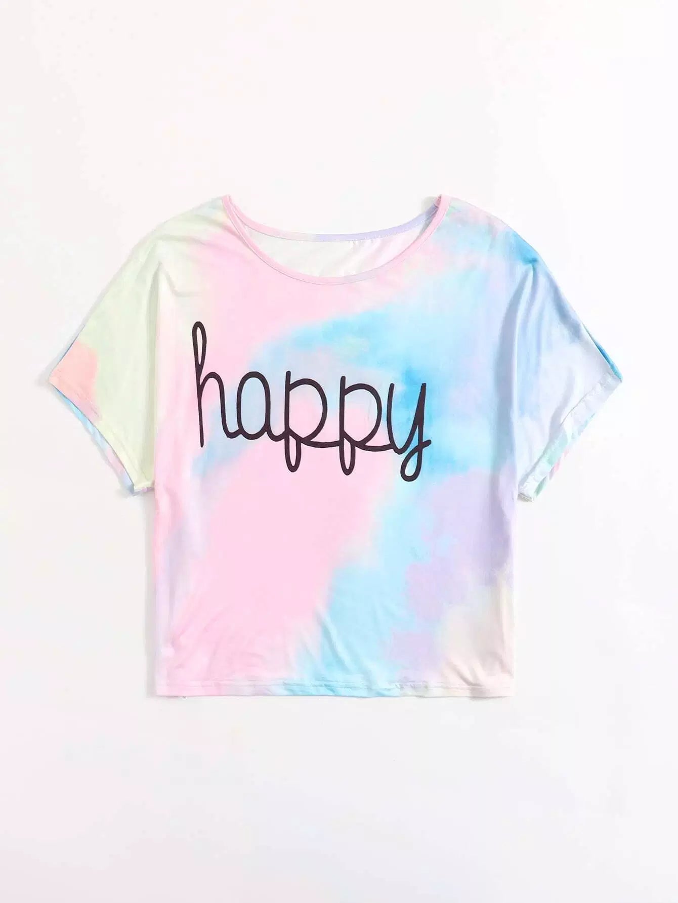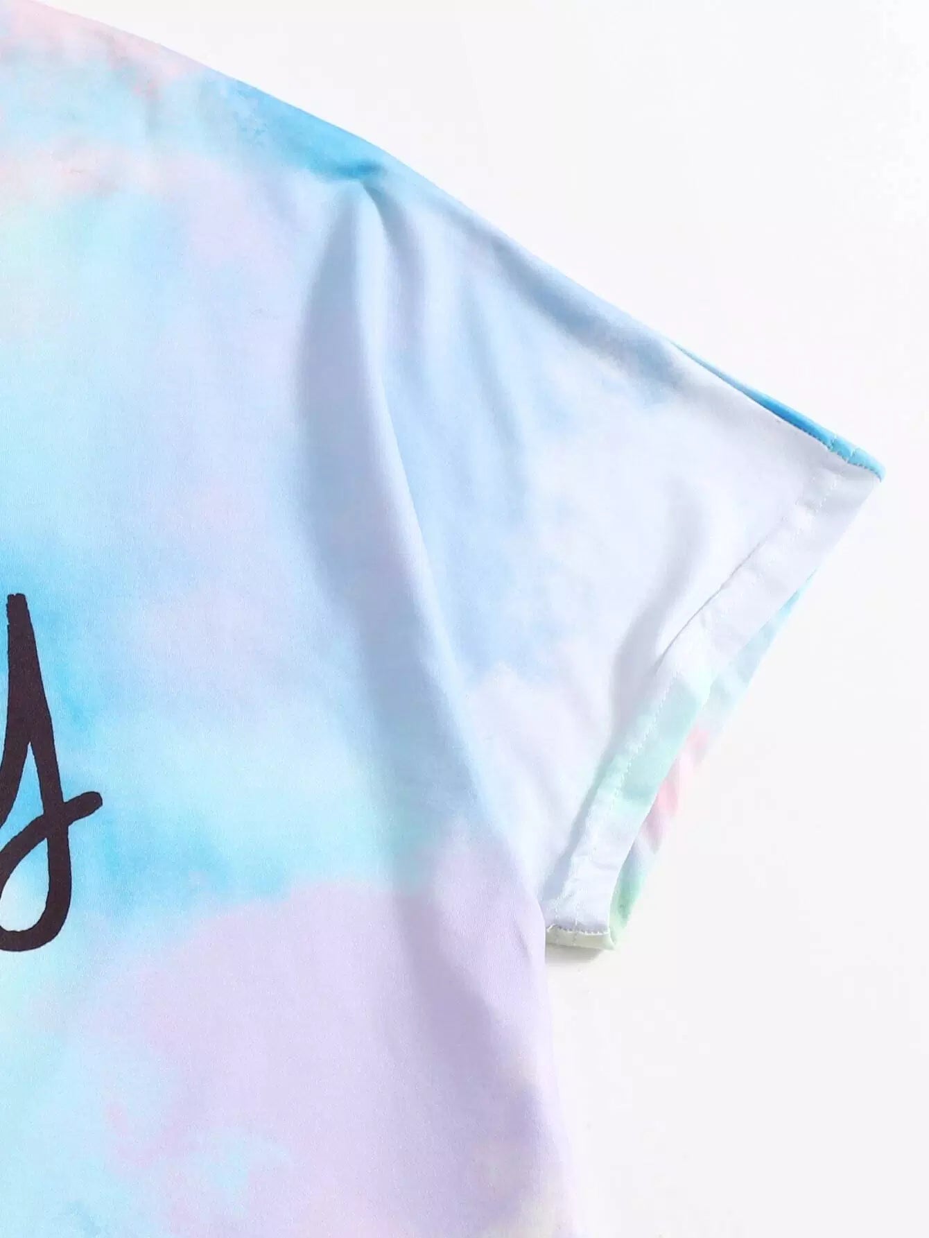 تي شيرت برسومات على شكل حرف زائد مصبوغ بالرسومات