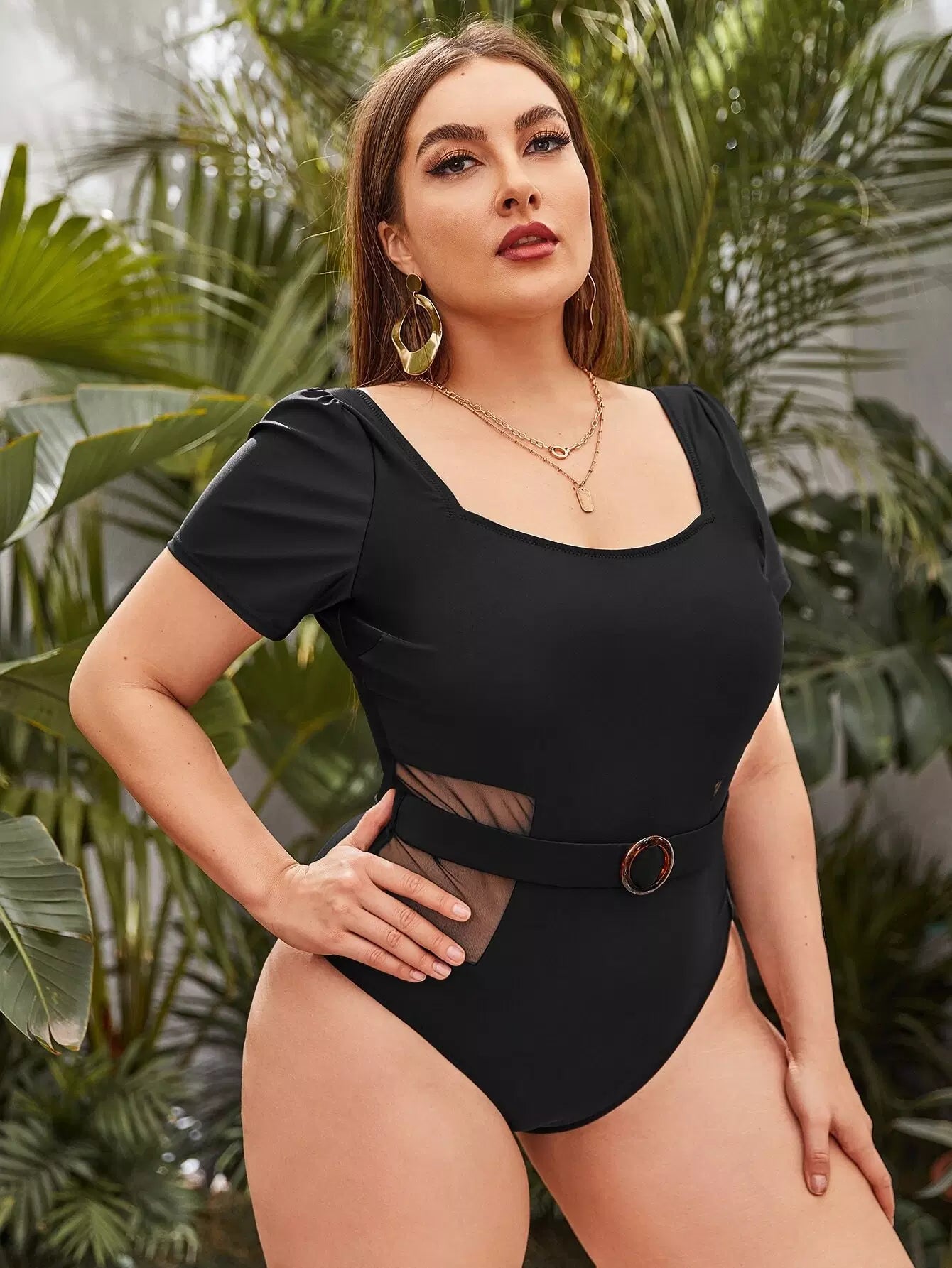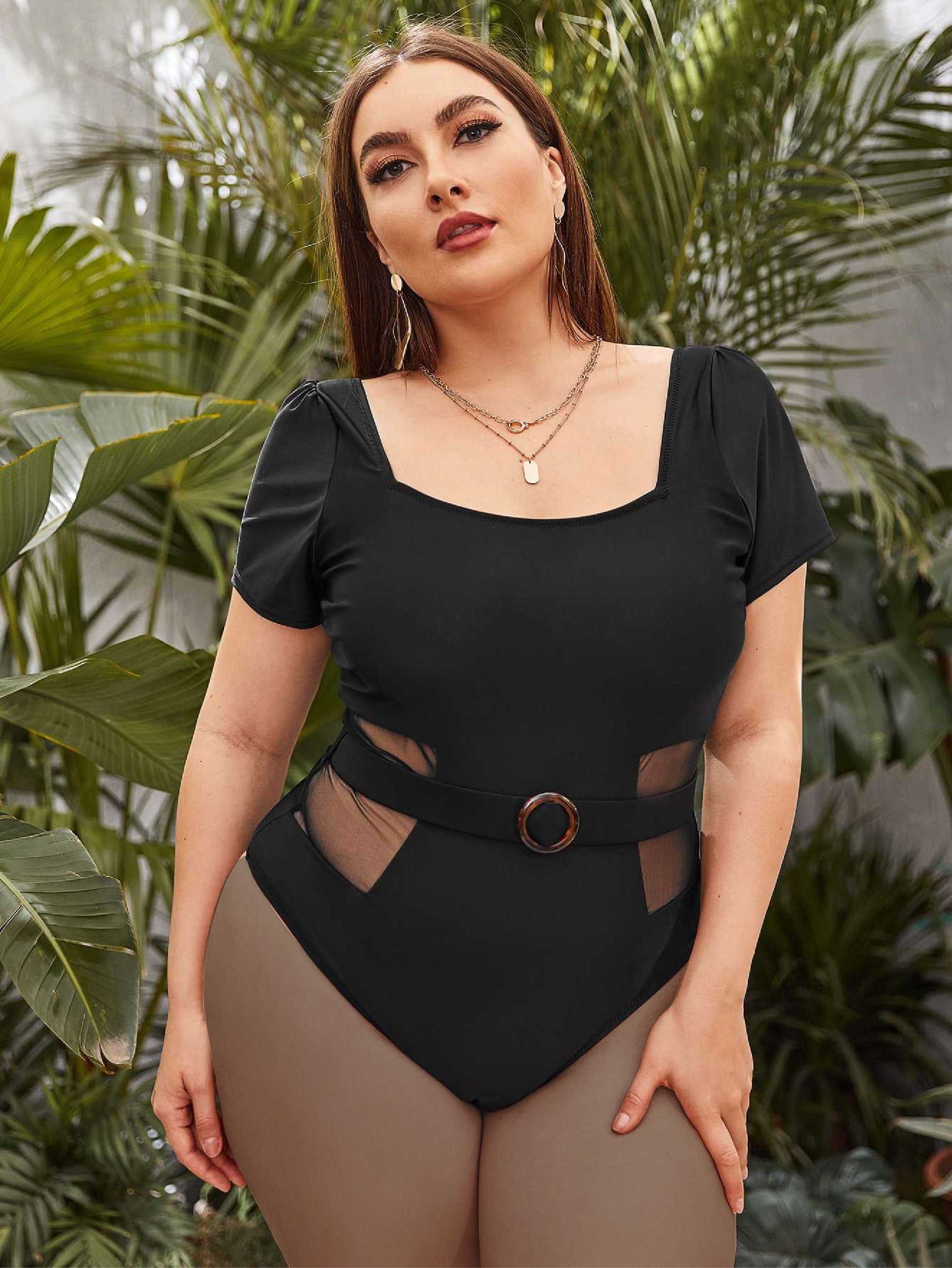 بدلة سباحة بقطعة واحدة شبكية داخلية زائد