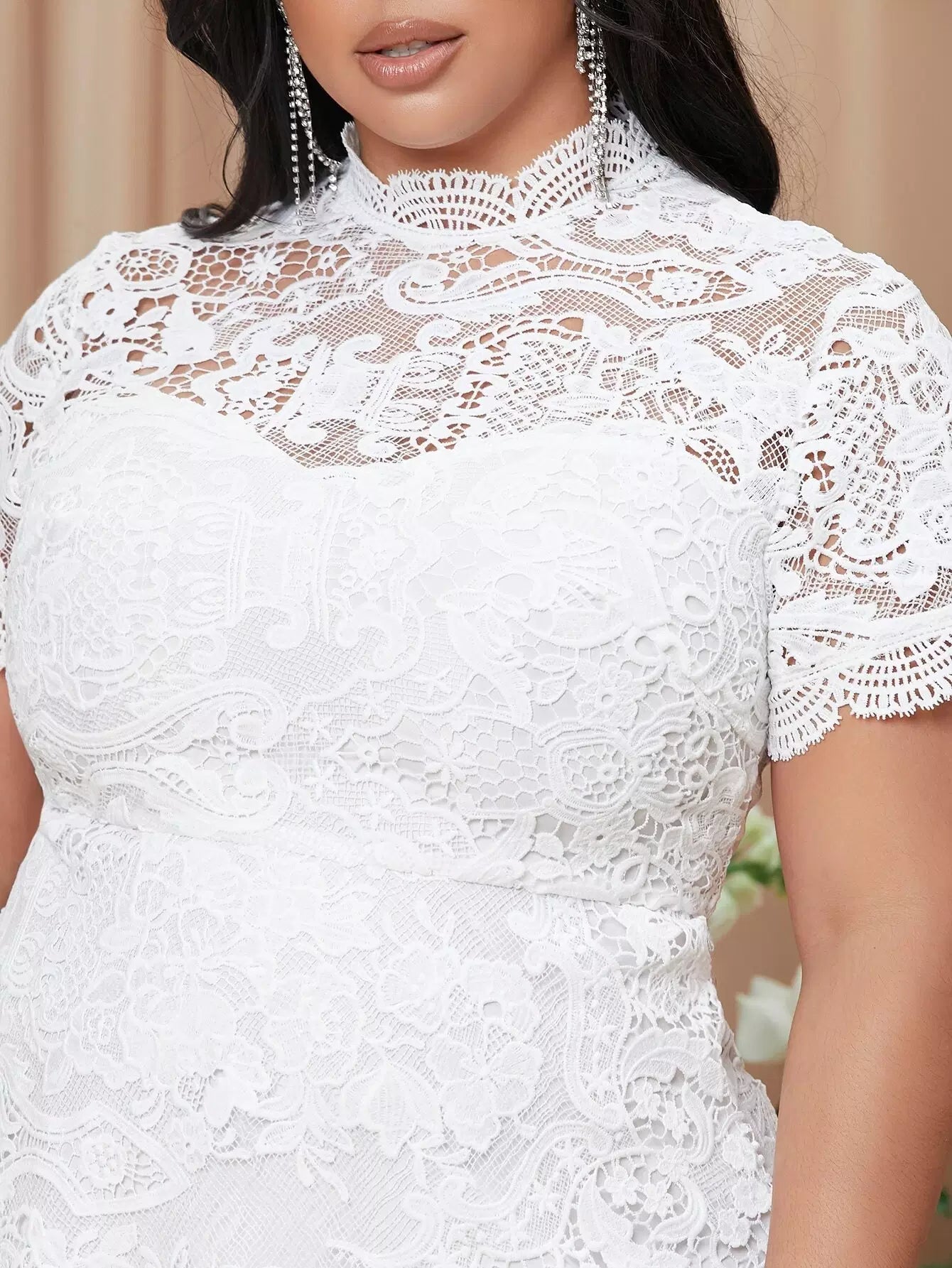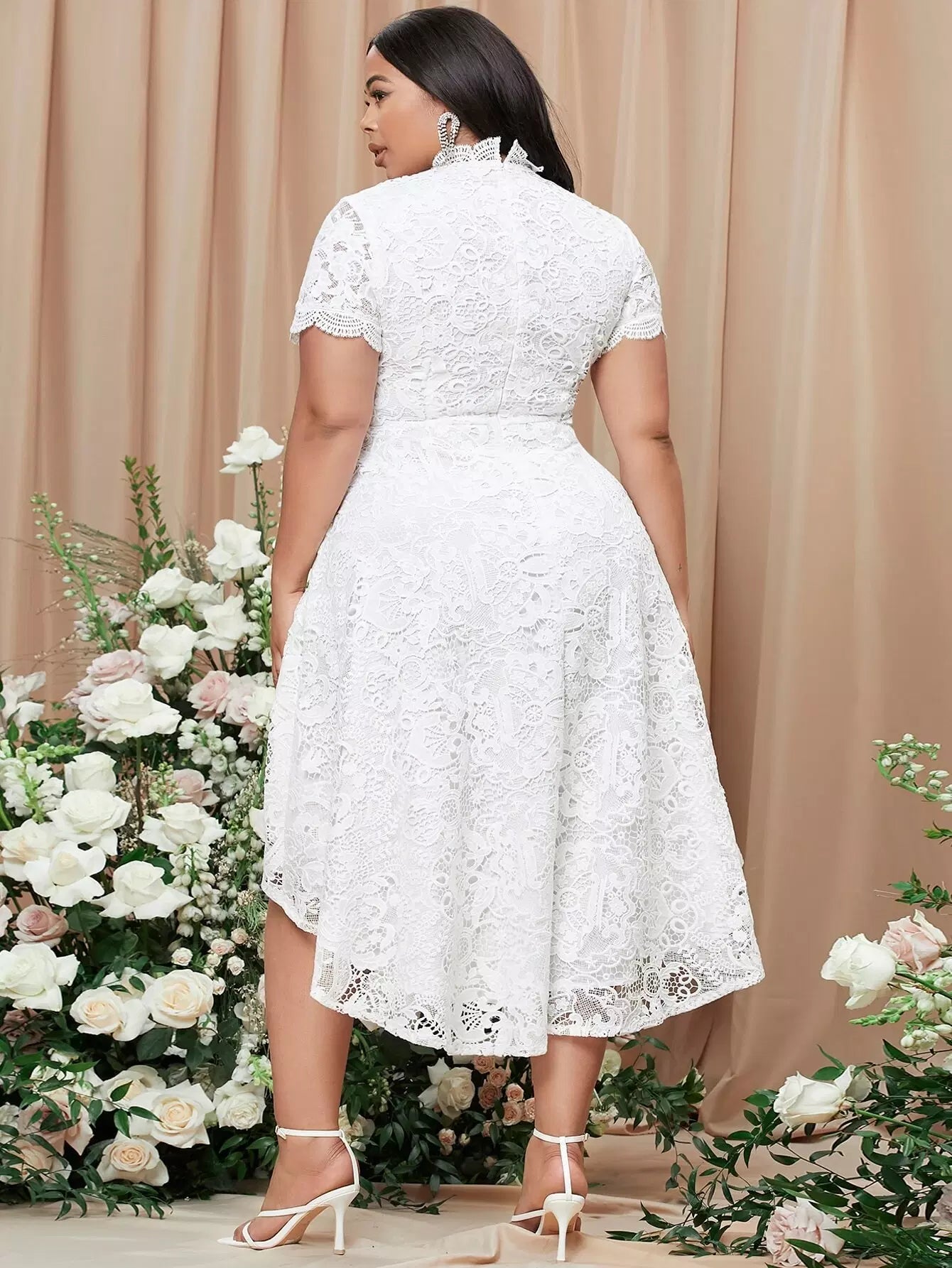 فستان من الدانتيل برقبة زائد برقبة عالية منخفضة من الدانتيل