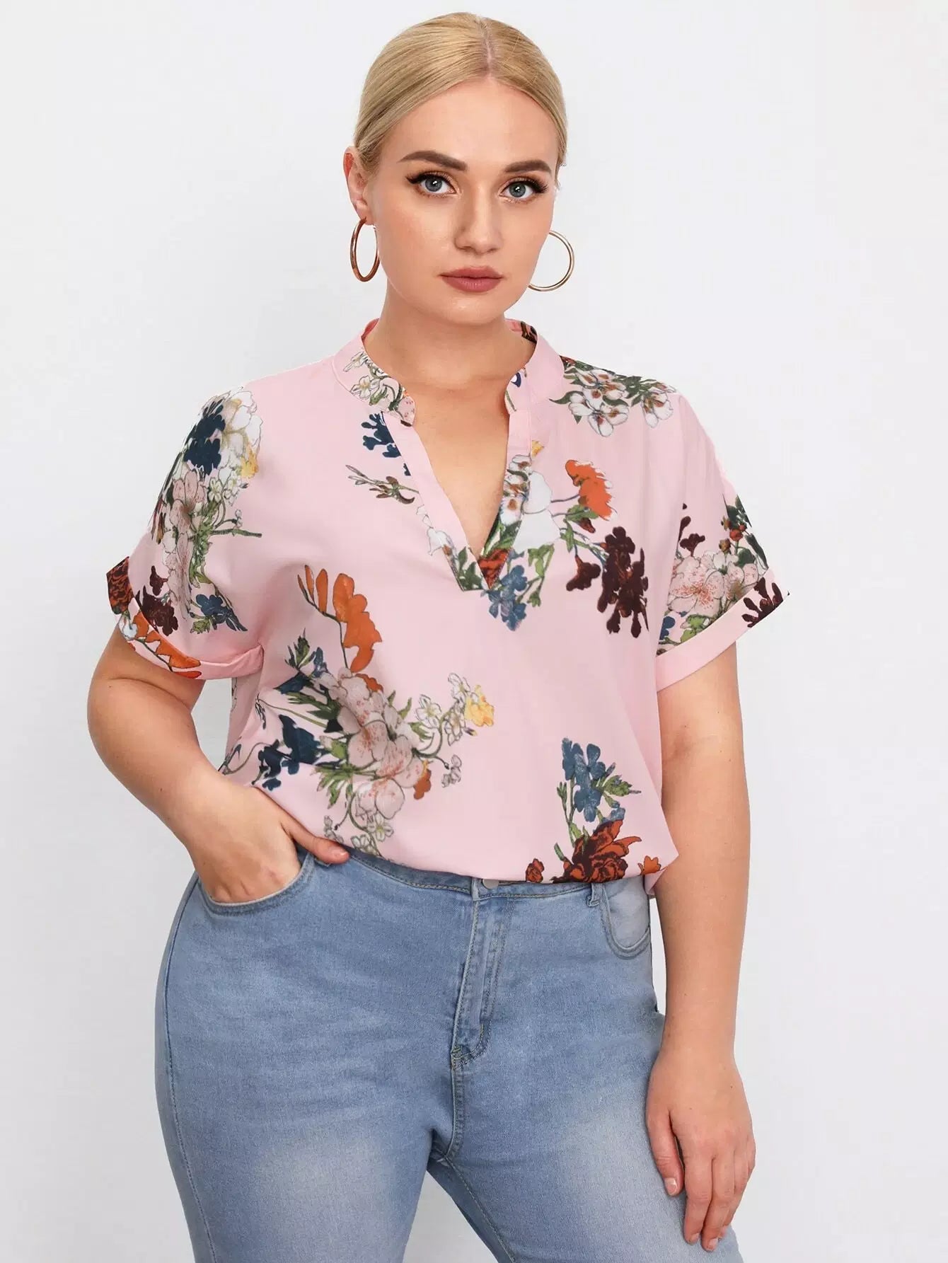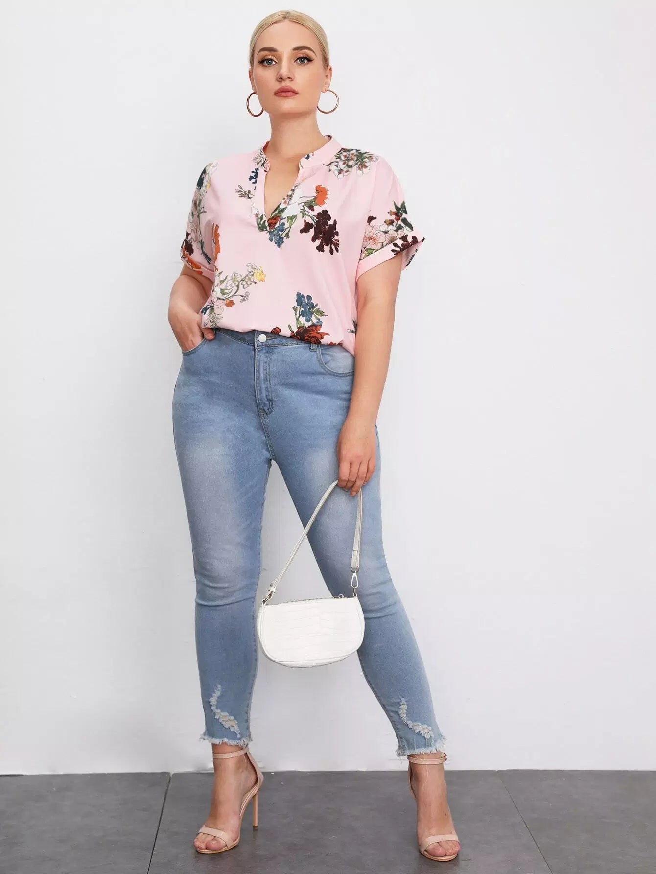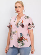 بلوزة بياقة برقبة زائدة وأكمام مكفوفة بأزرار زهرية