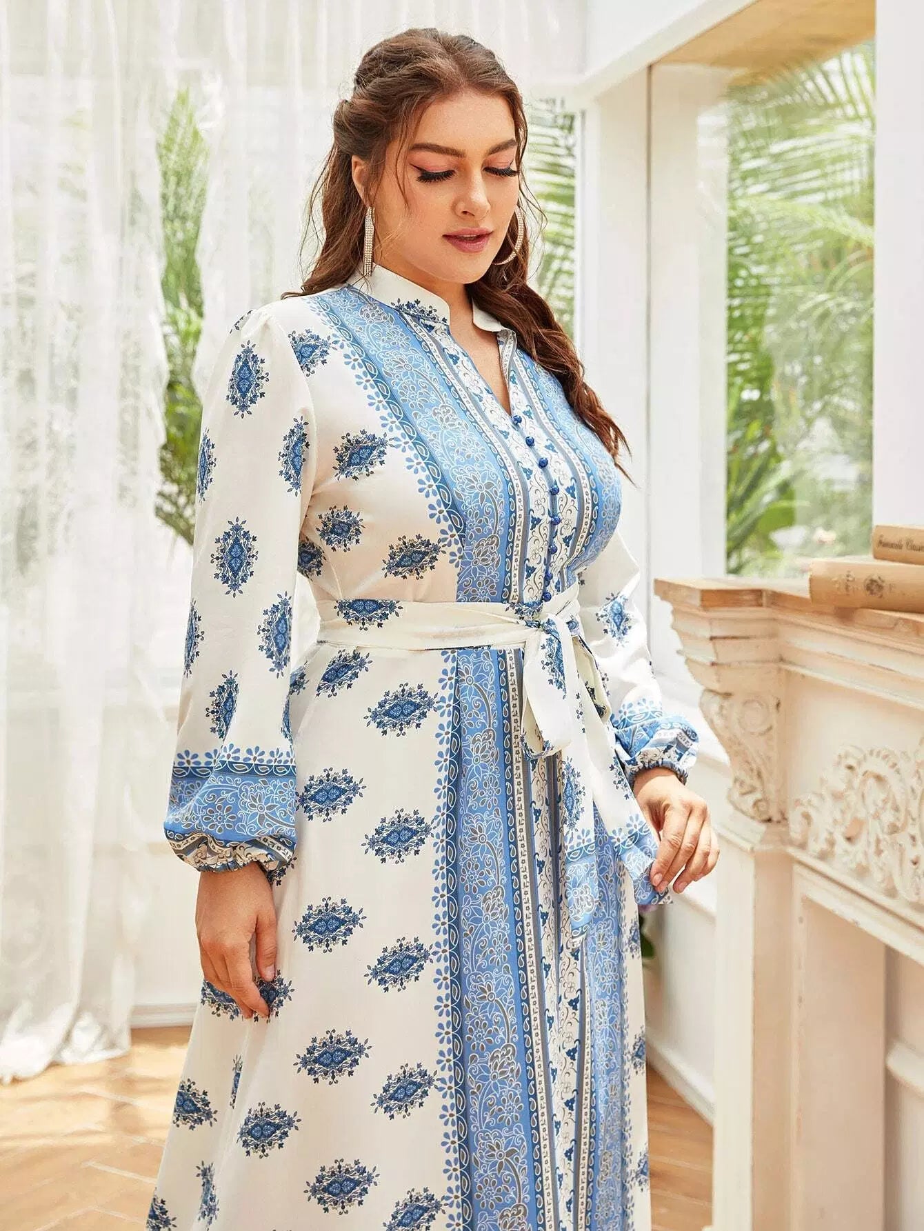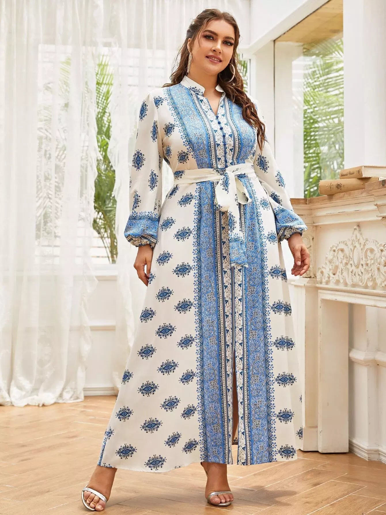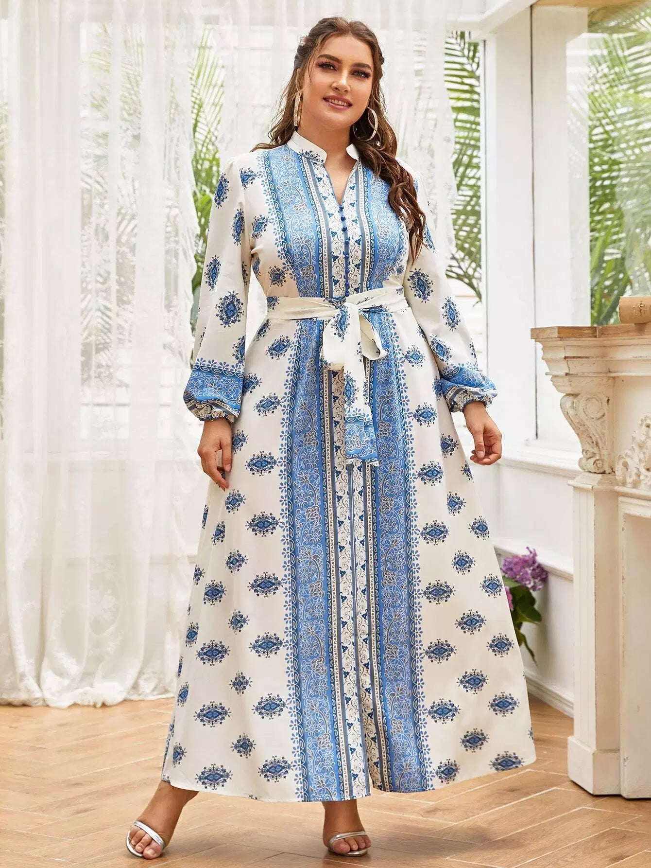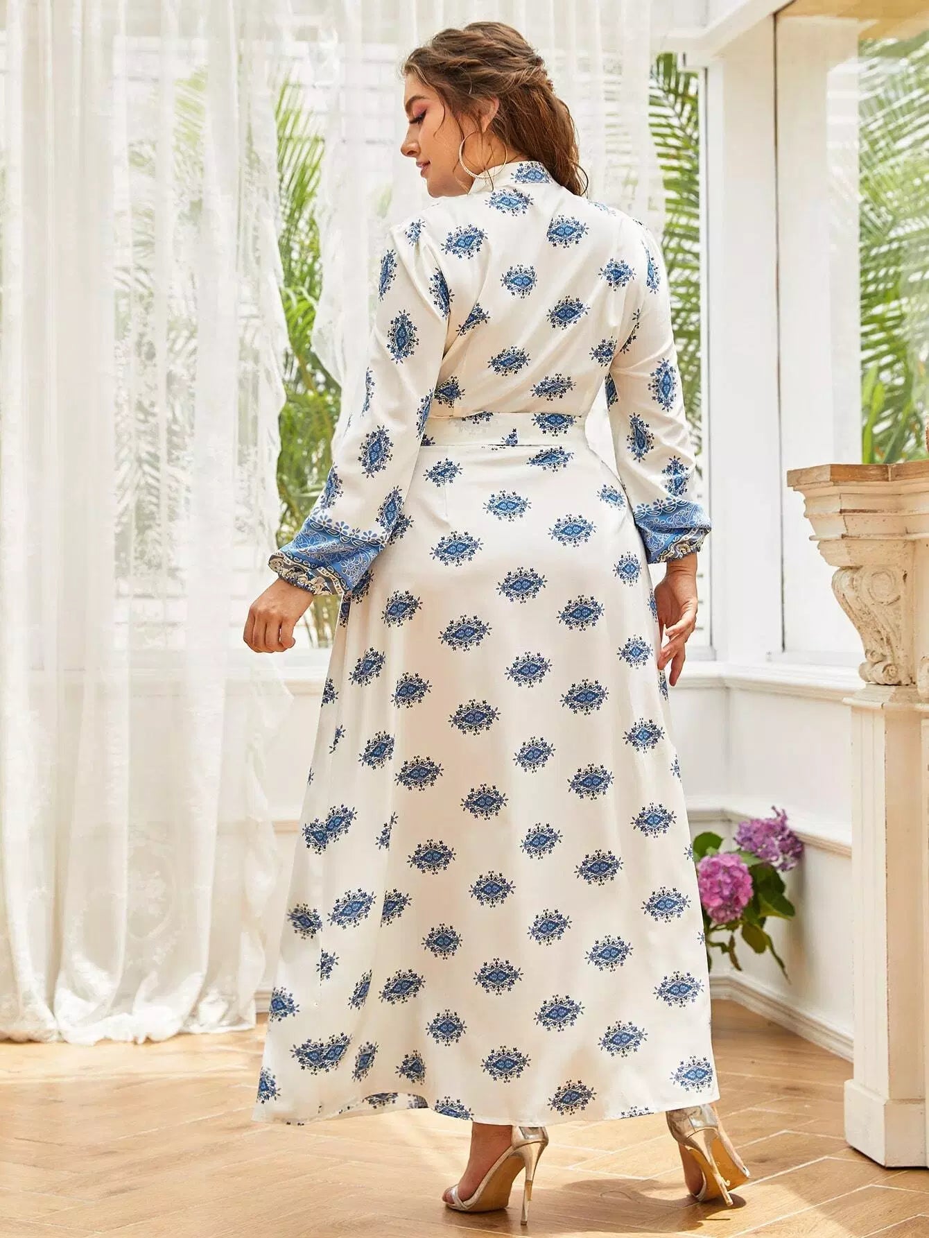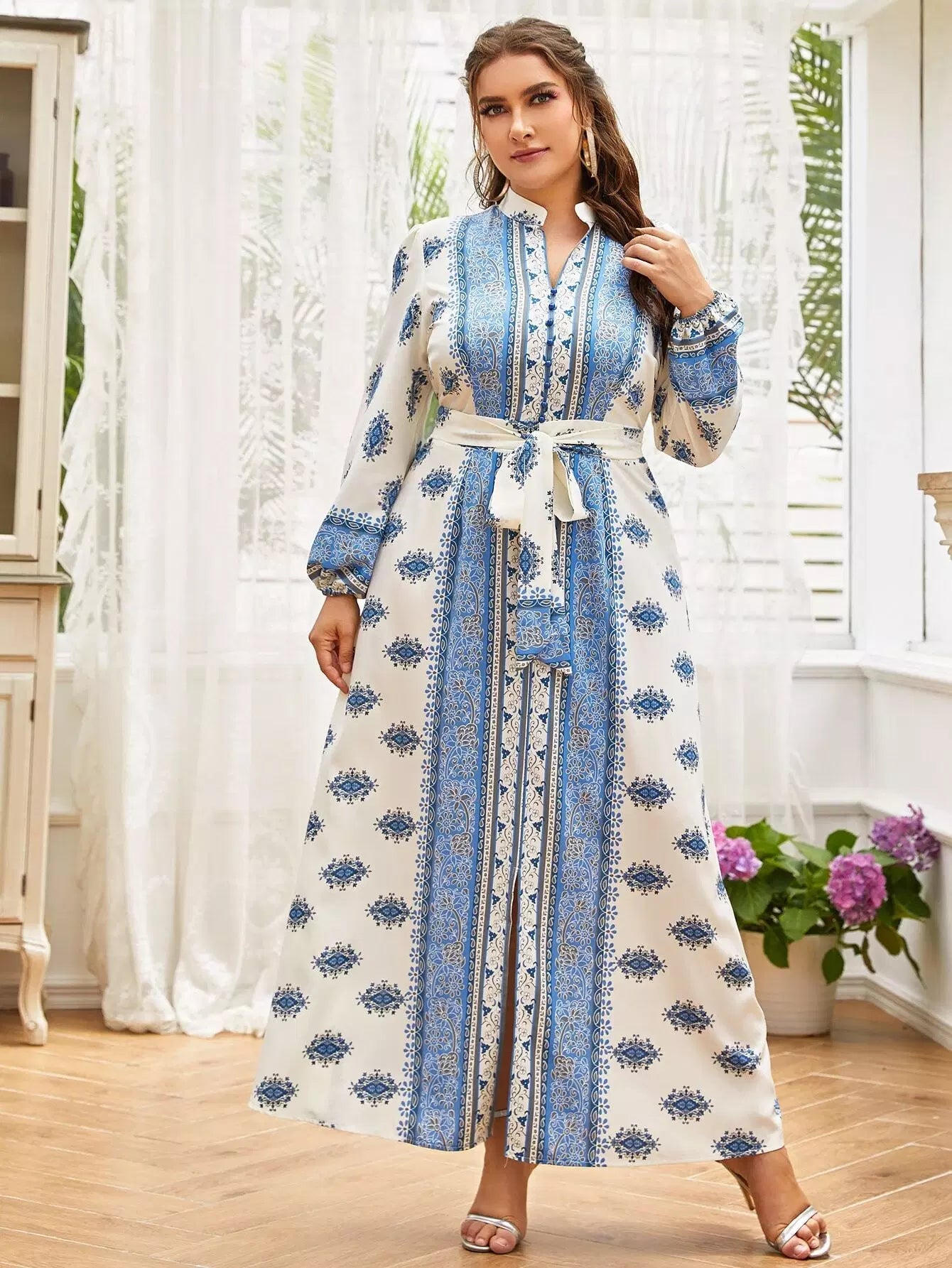 نحيف - مقاس كبير فستان على شكل حرف A بطبعة زهور