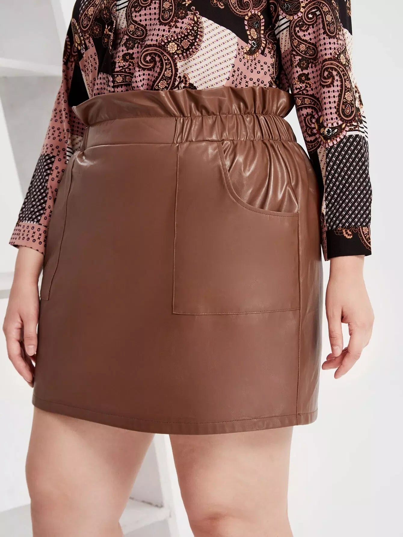 تنورة جلدية من البولي يوريثان ذات جيب مائل على الخصر زائد