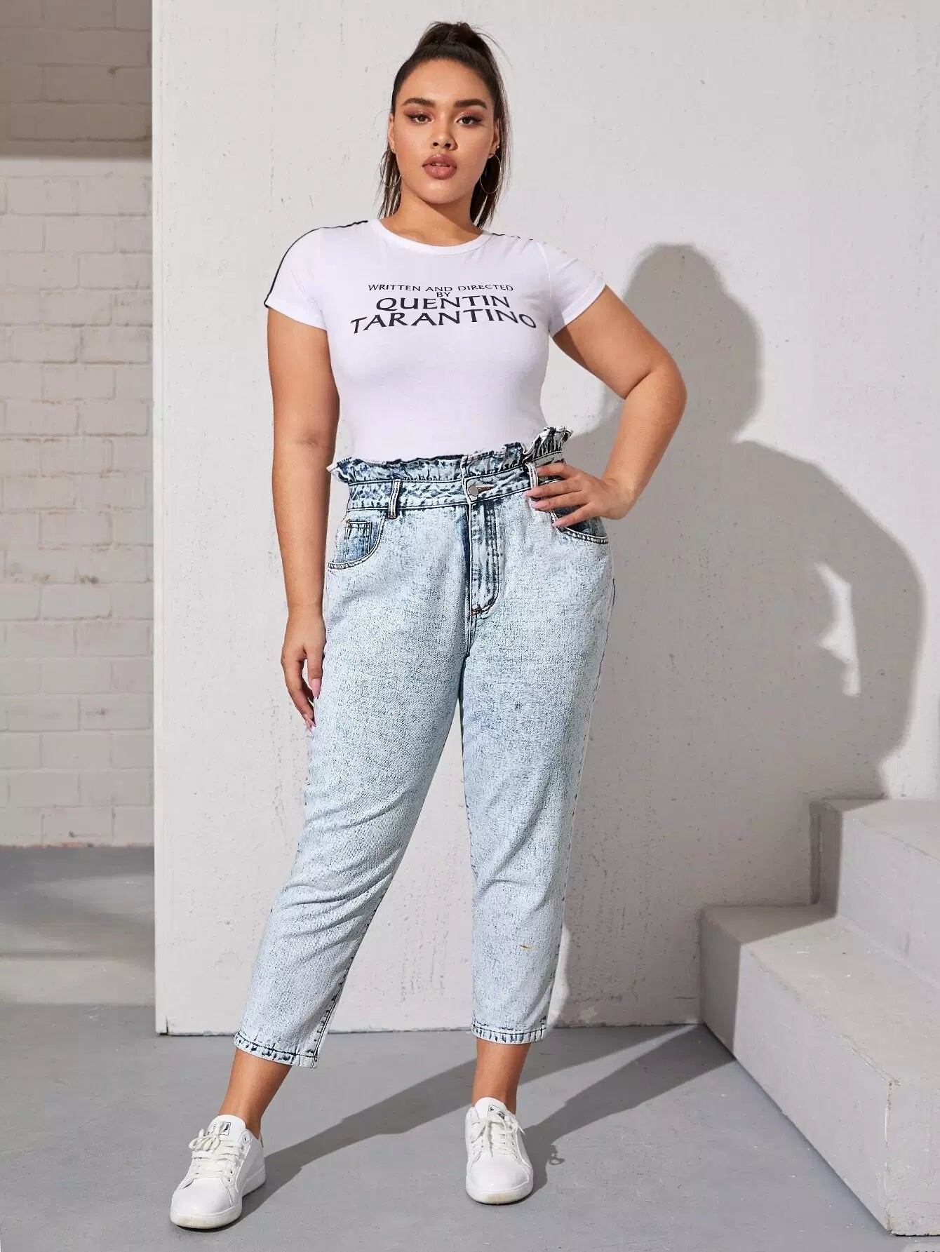 بنطلون جينز جينز قصير مقصوص الخصر بكيس ورقي زائد