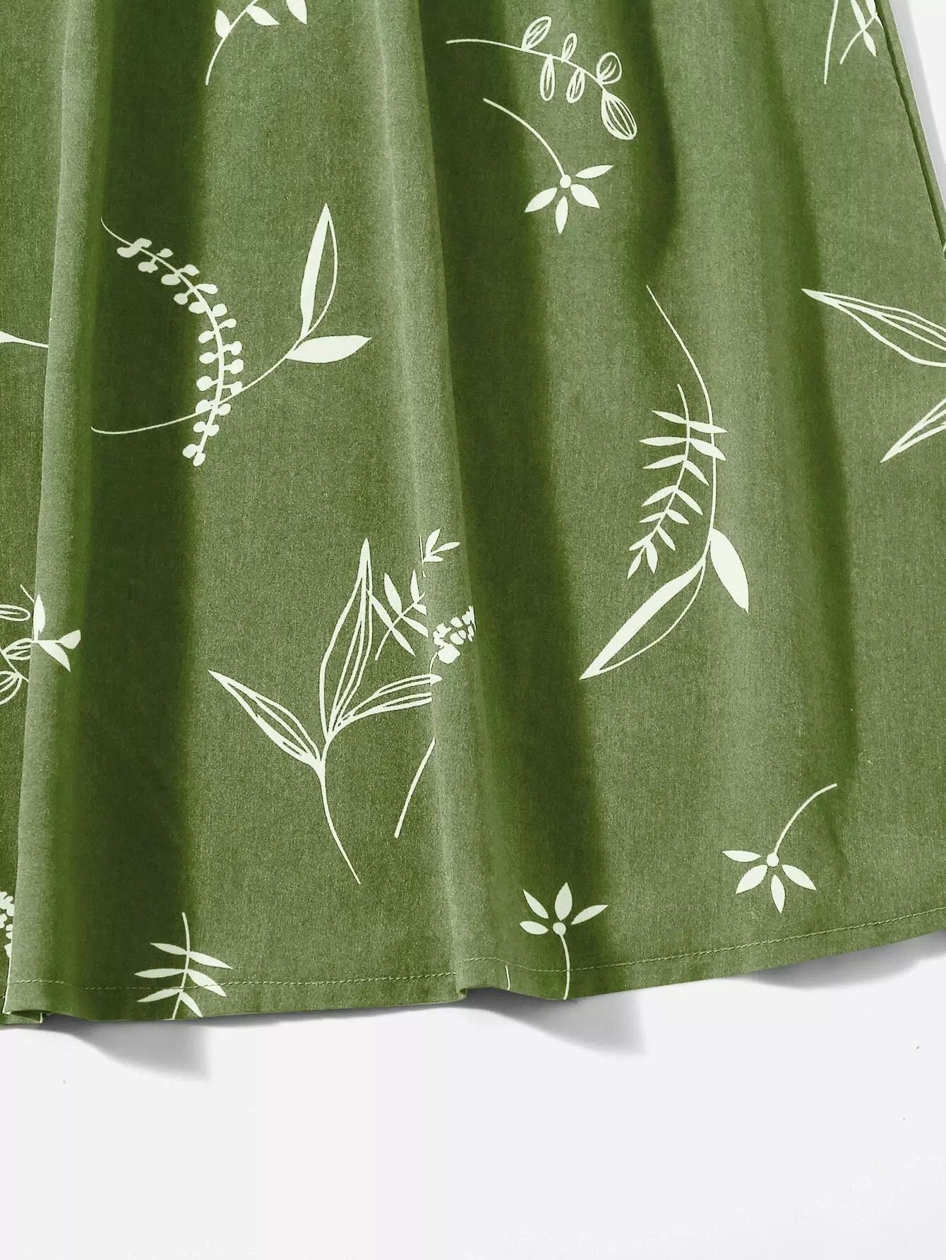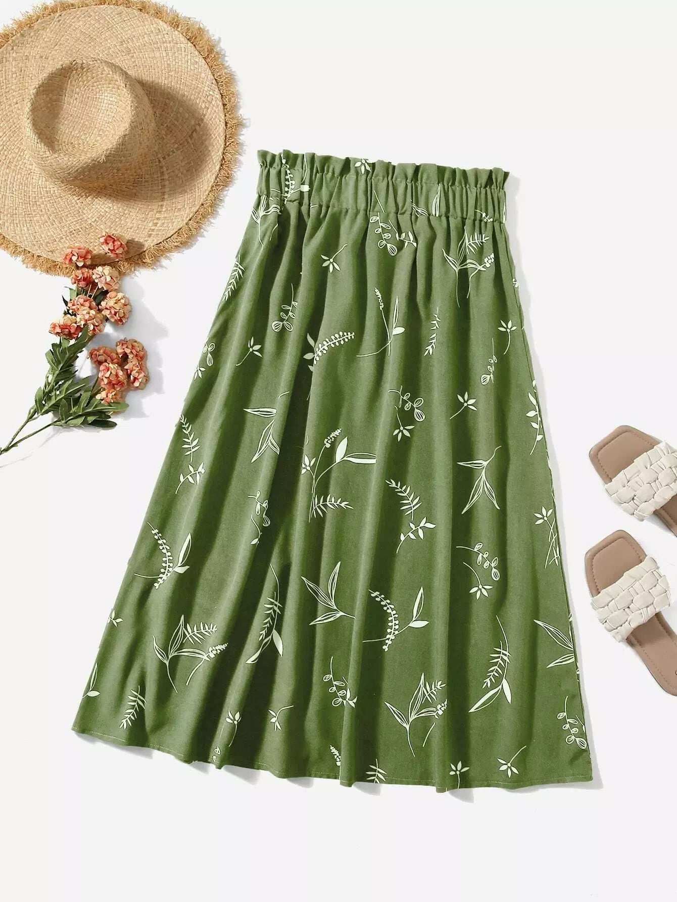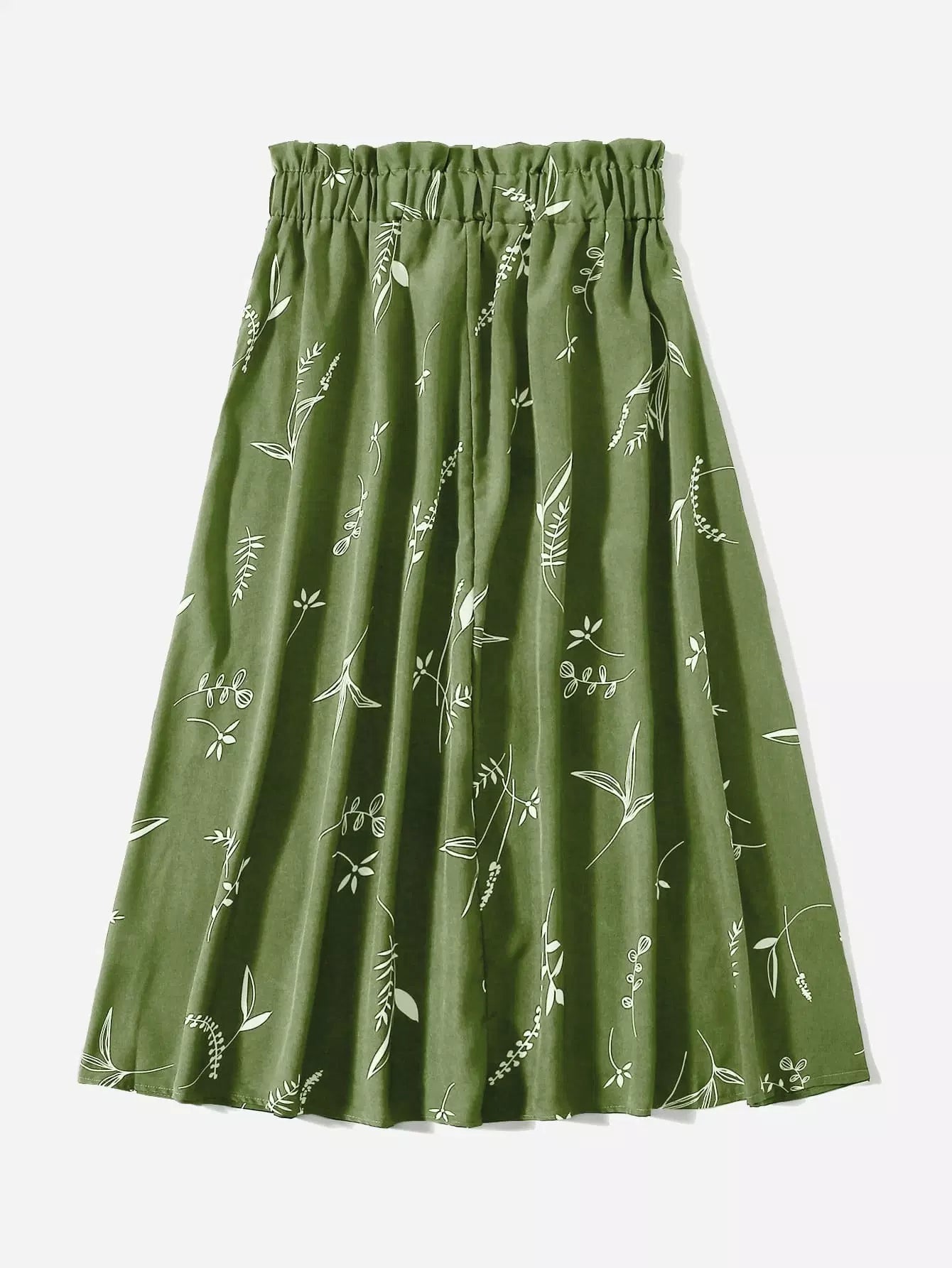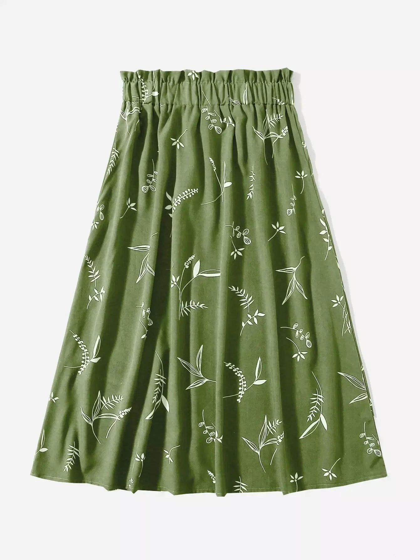 تنورة مطبوع عليها نباتات مطبوع عليها خصر ورقي زائد