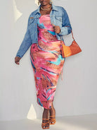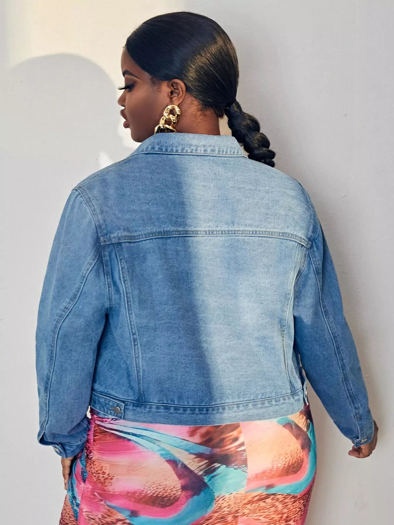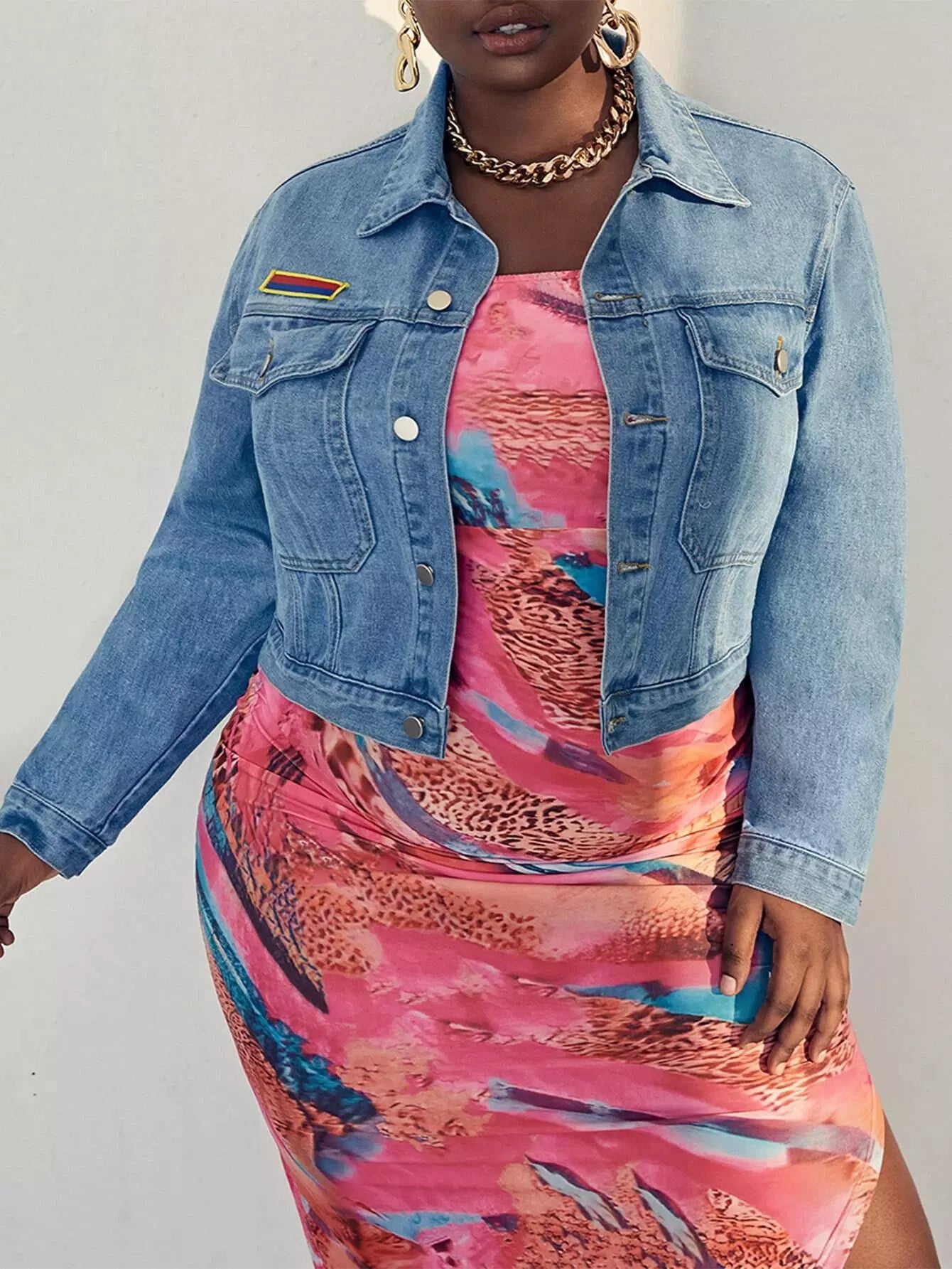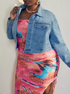 جاكيت دنيم مزين بغطاء جينز بفتحة جيب برقعة زائد