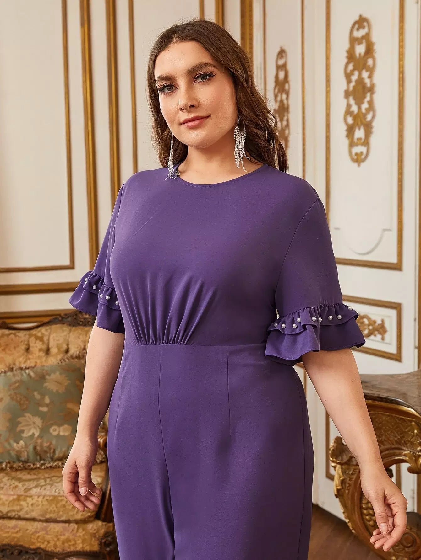 جمبسوت بأكمام من اللؤلؤ مطرز بالخرز الزائد