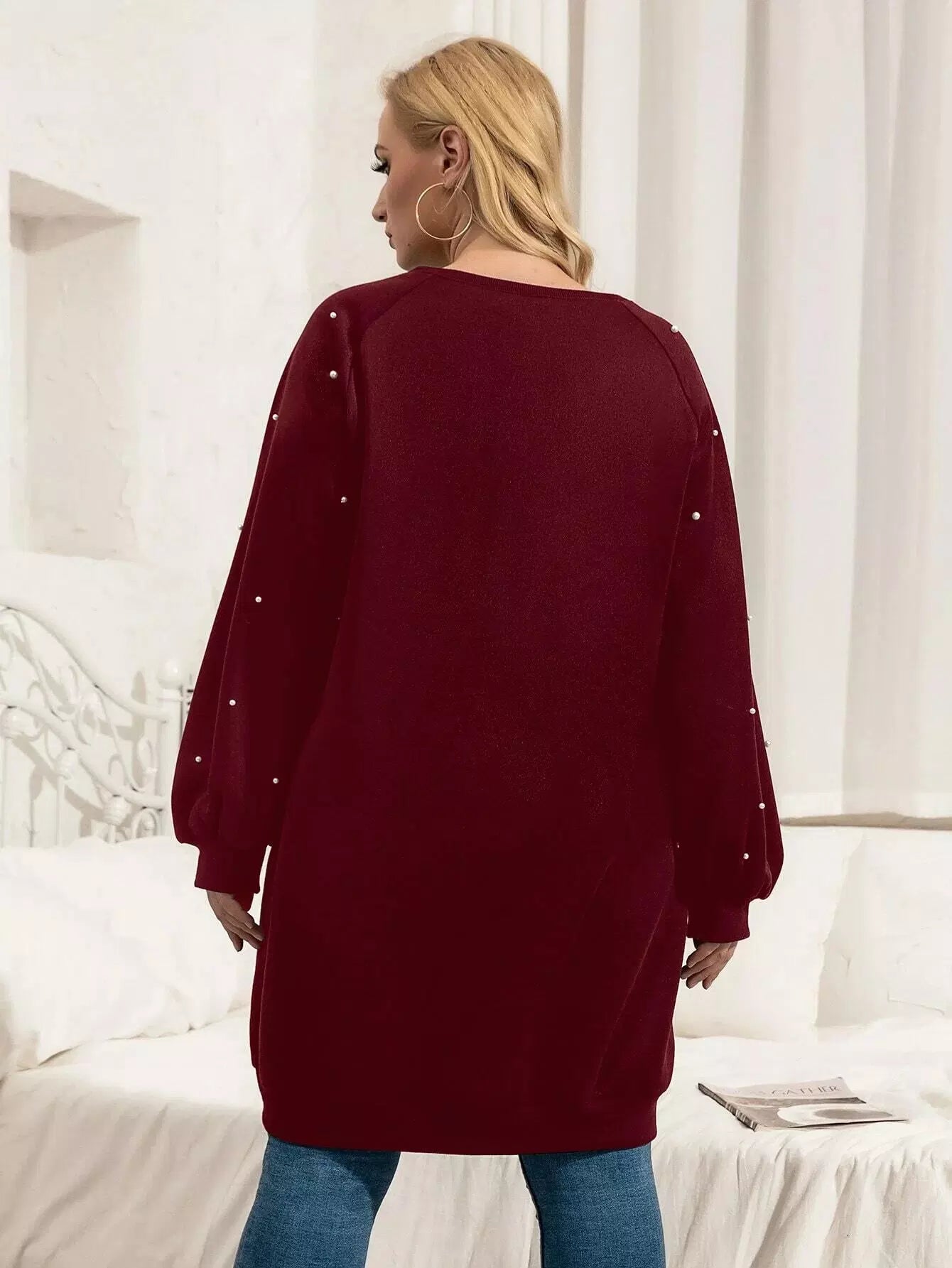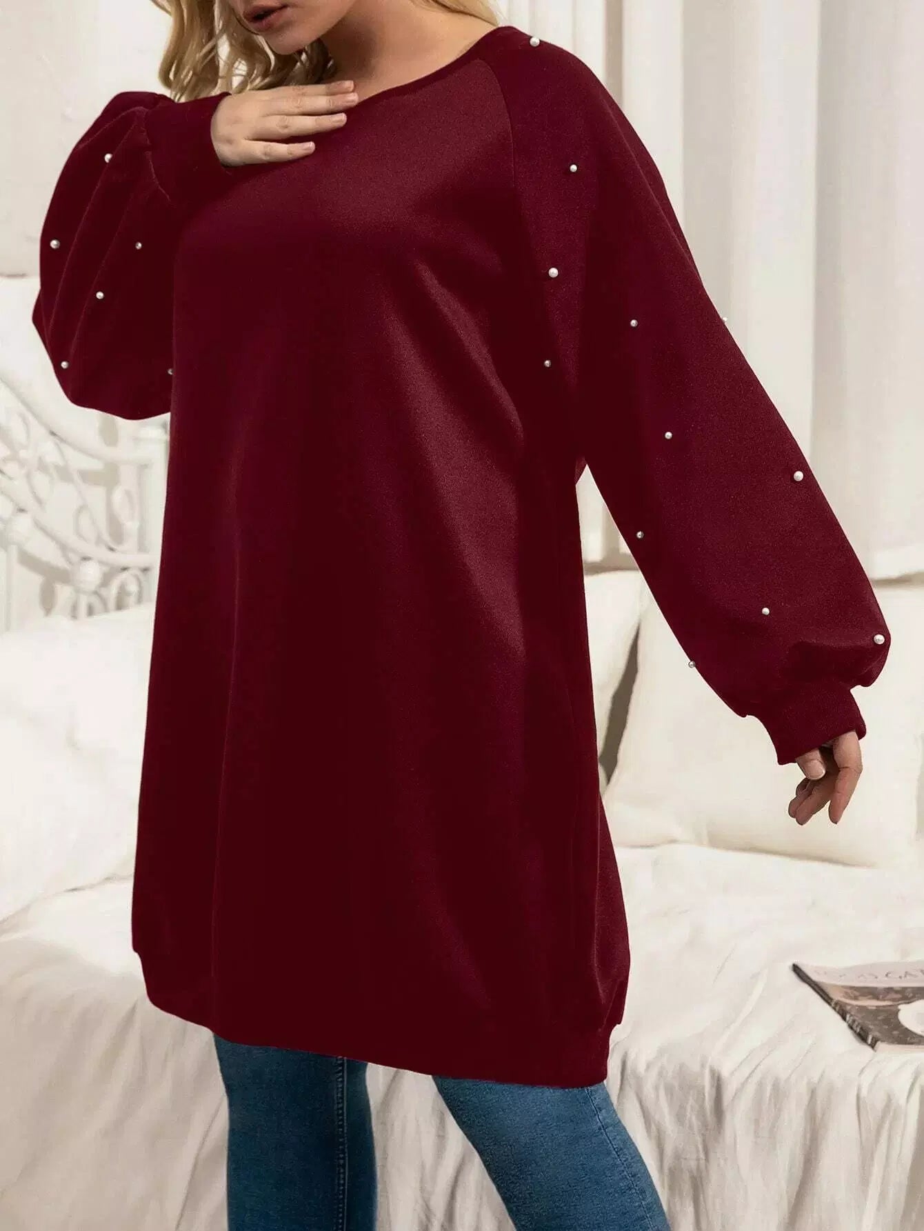 فستان سويت شيرت مطرز باللآلئ زائد