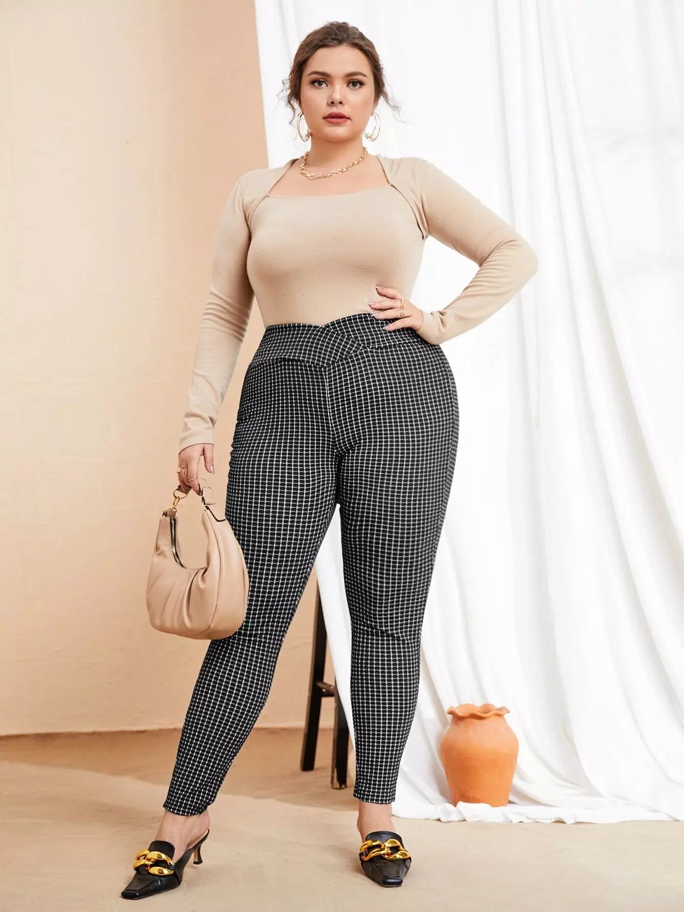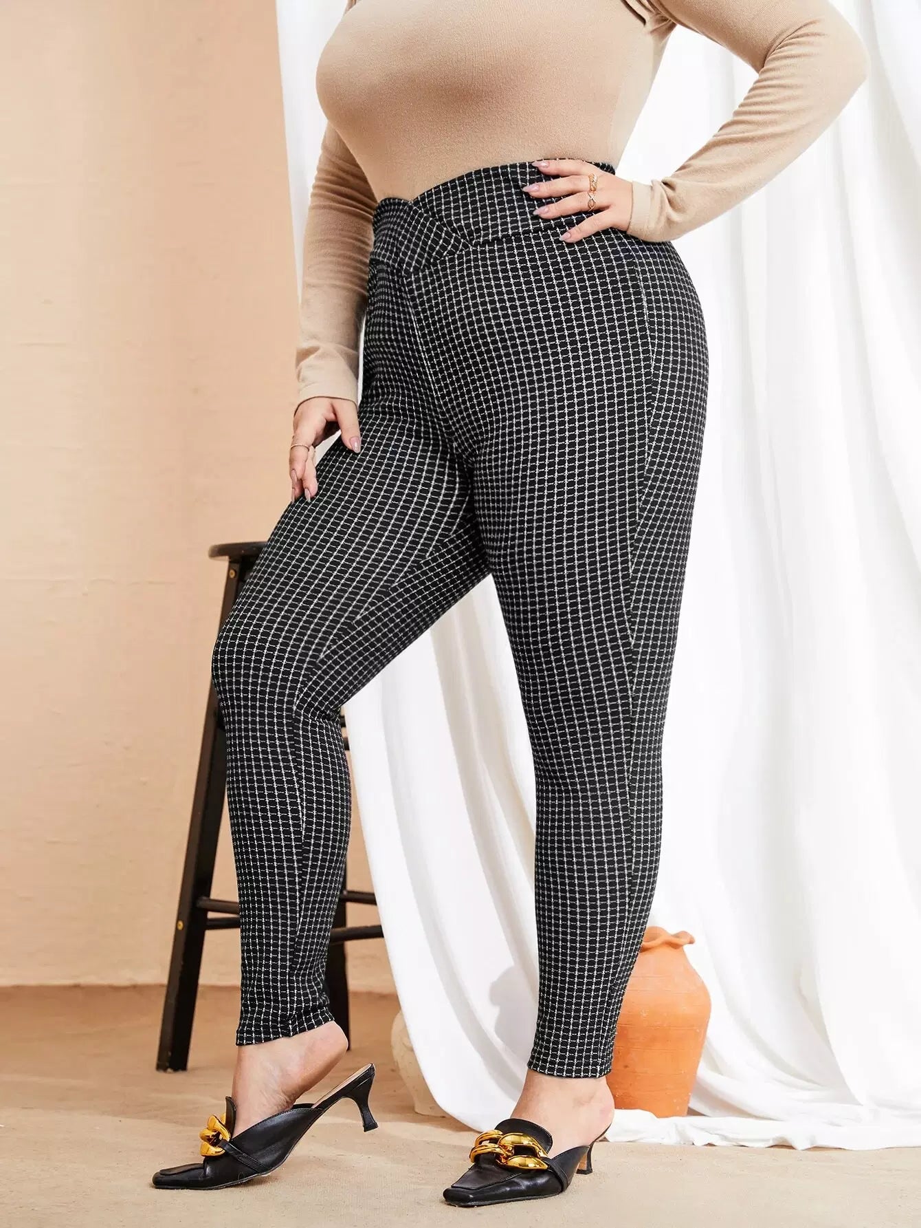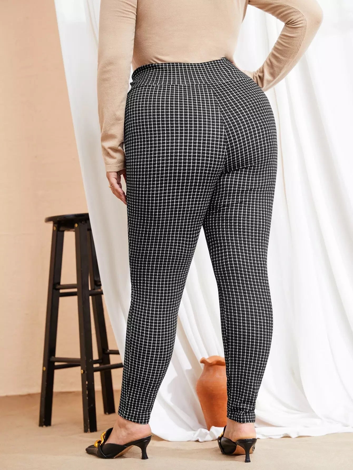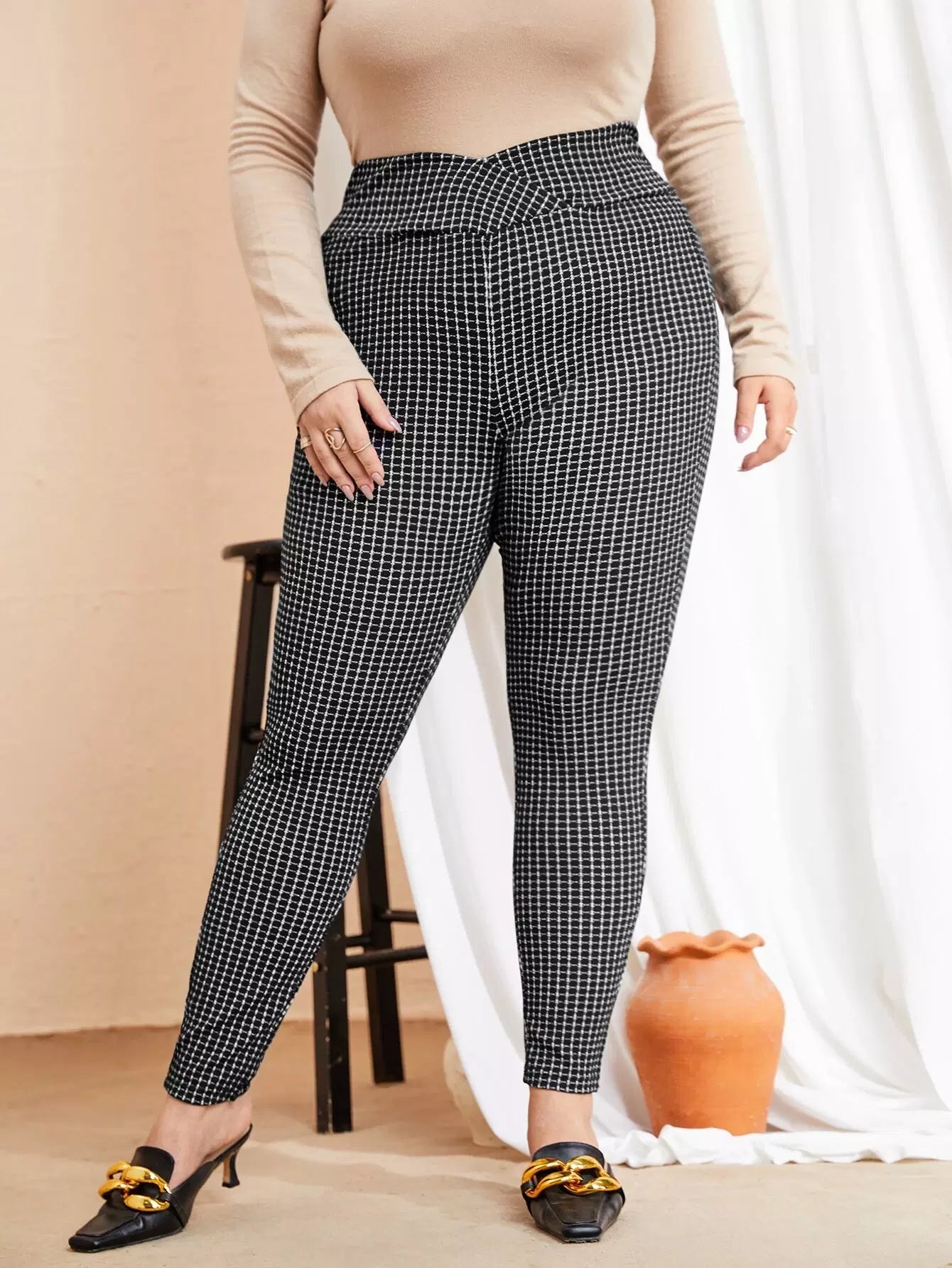بنطلون سكيني بخصر غير متماثل منقوش بنقشة بلس