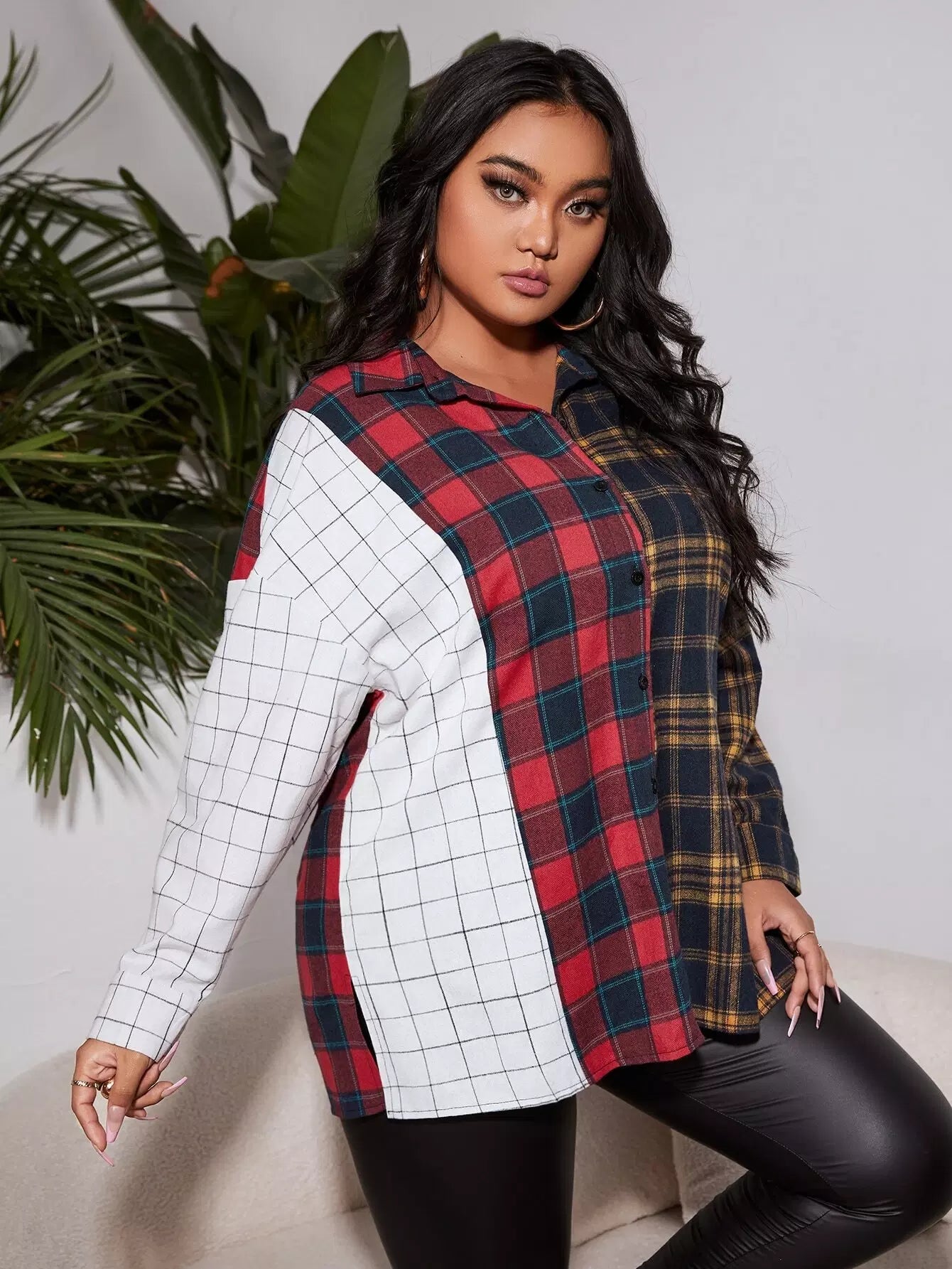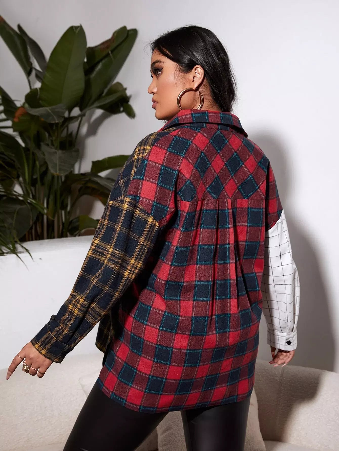 قميص منسدل الكتف بطبعة منقوشة منسدلة الكتف منقوشة زائد