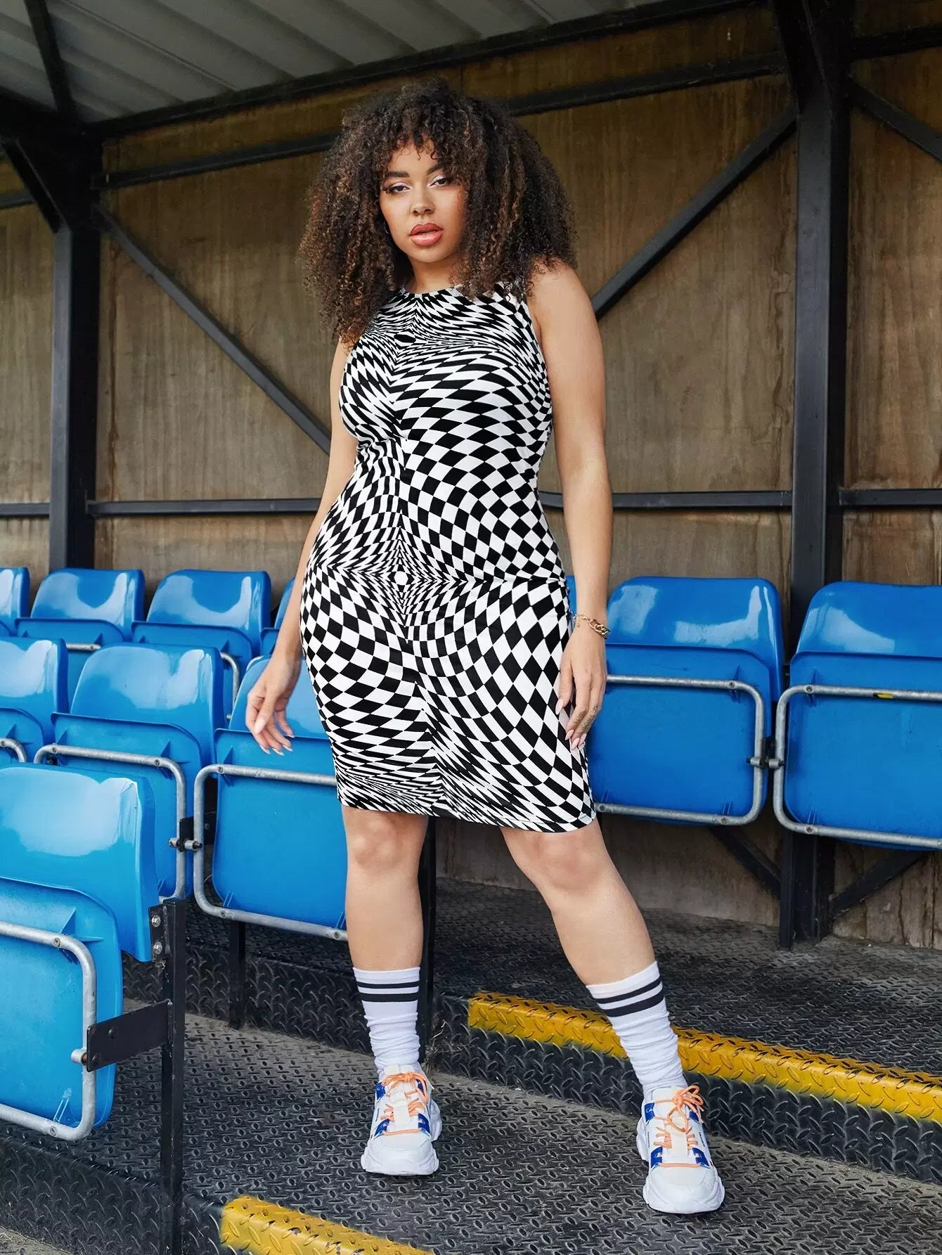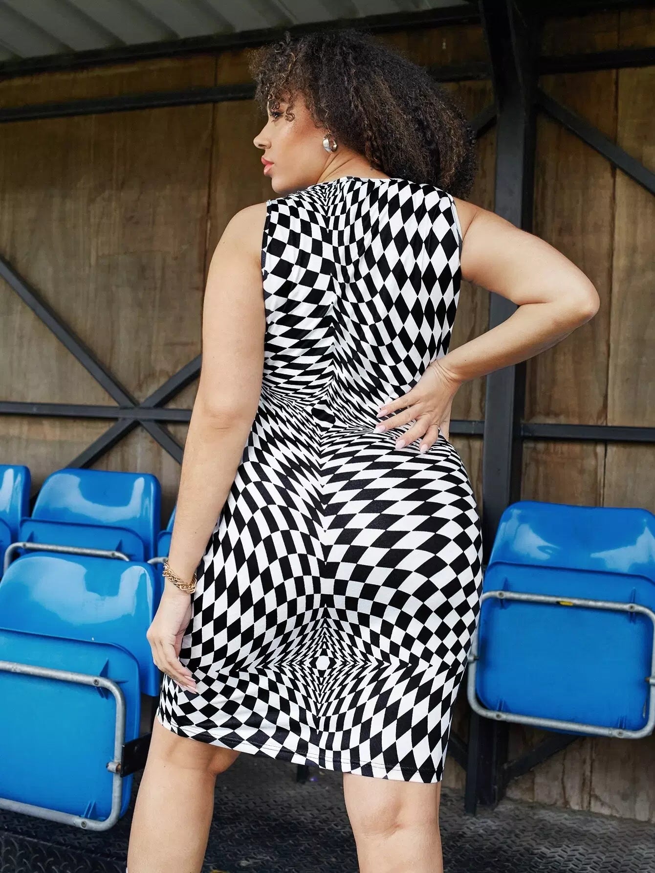 فستان بدون أكمام منقوش بطبعة زائد