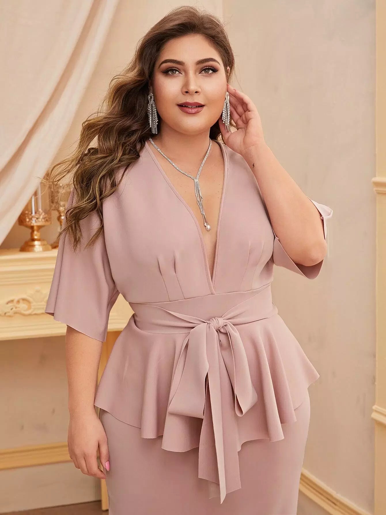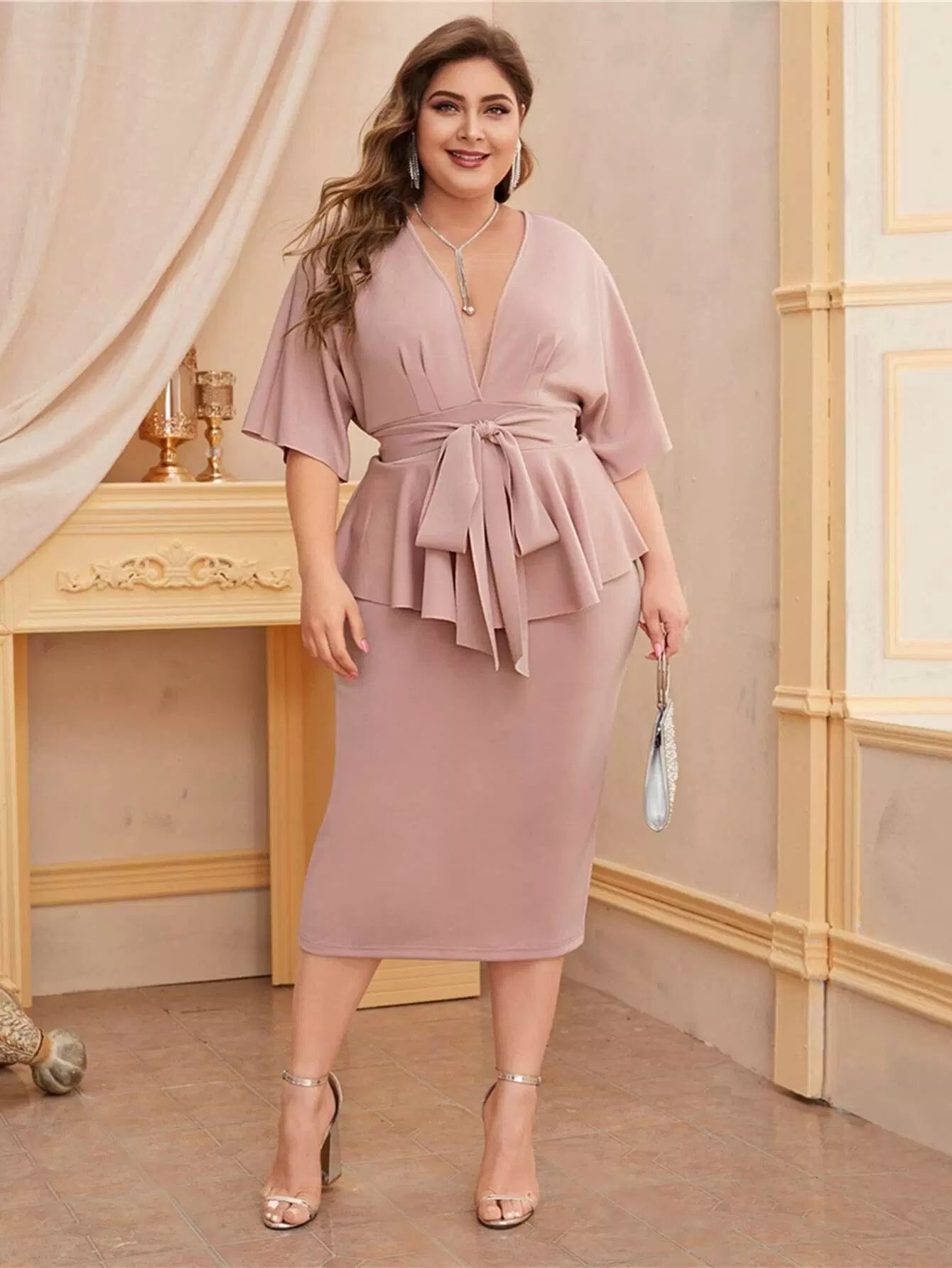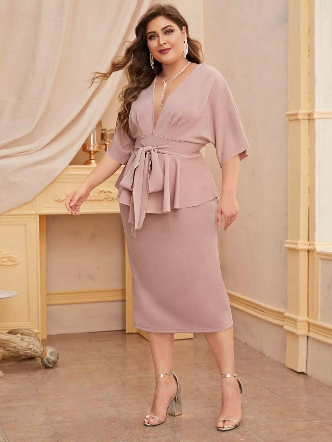 فستان بياقة كبيرة برقبة واسعة بربطة عنق أمامية