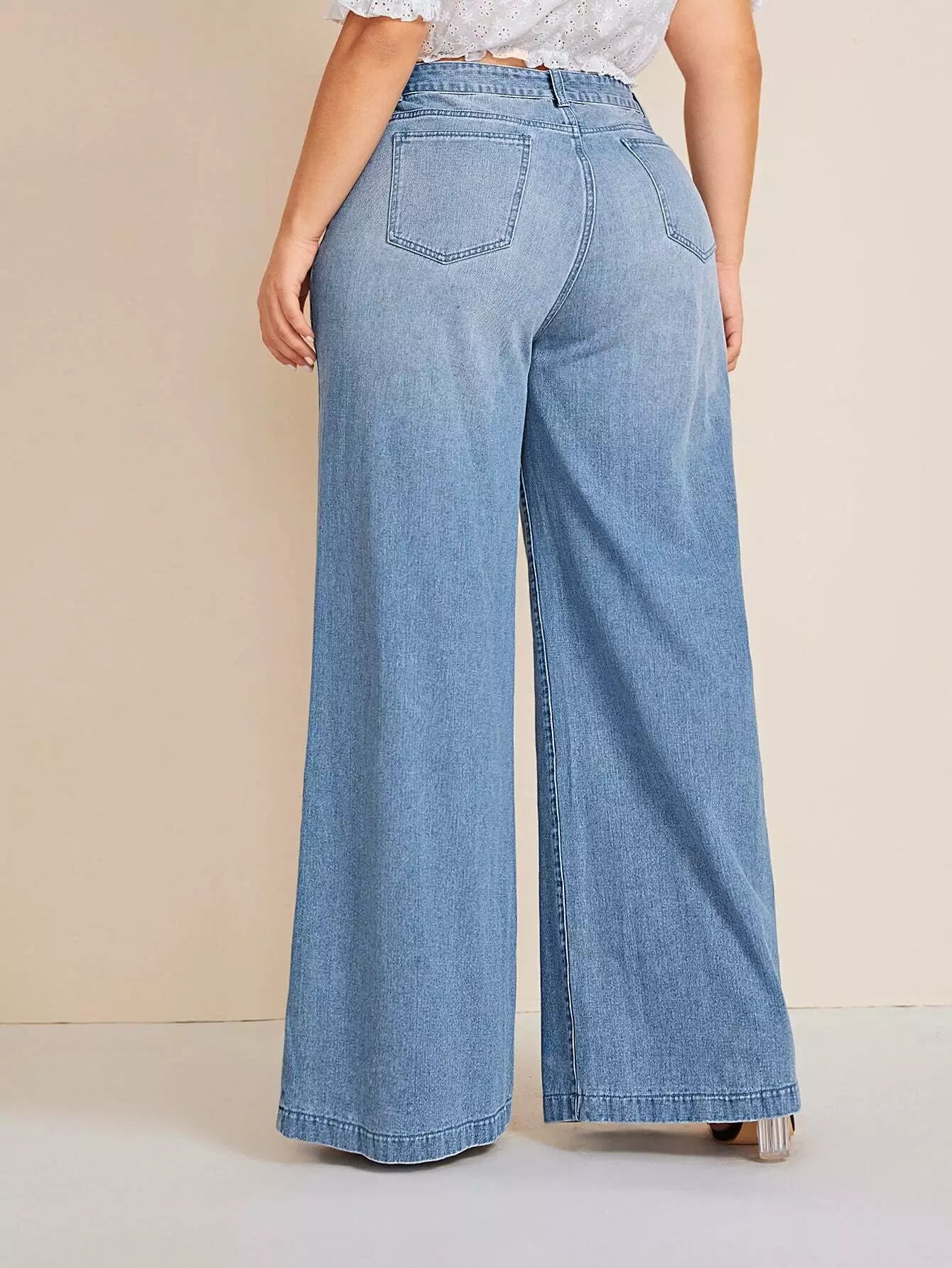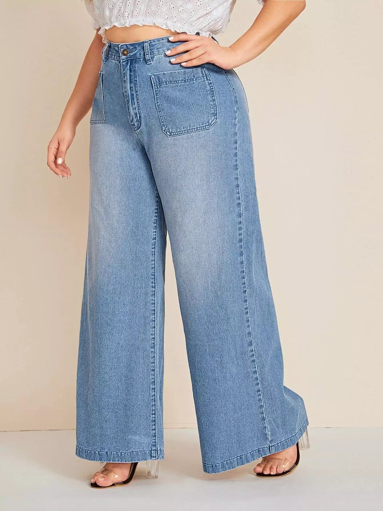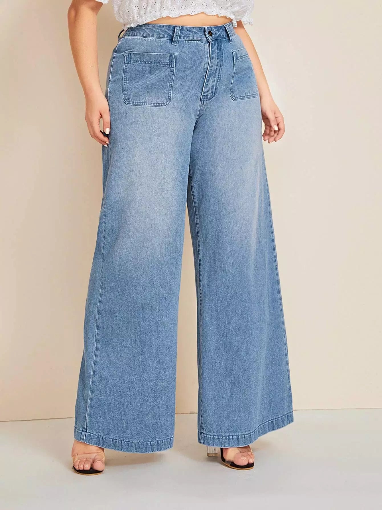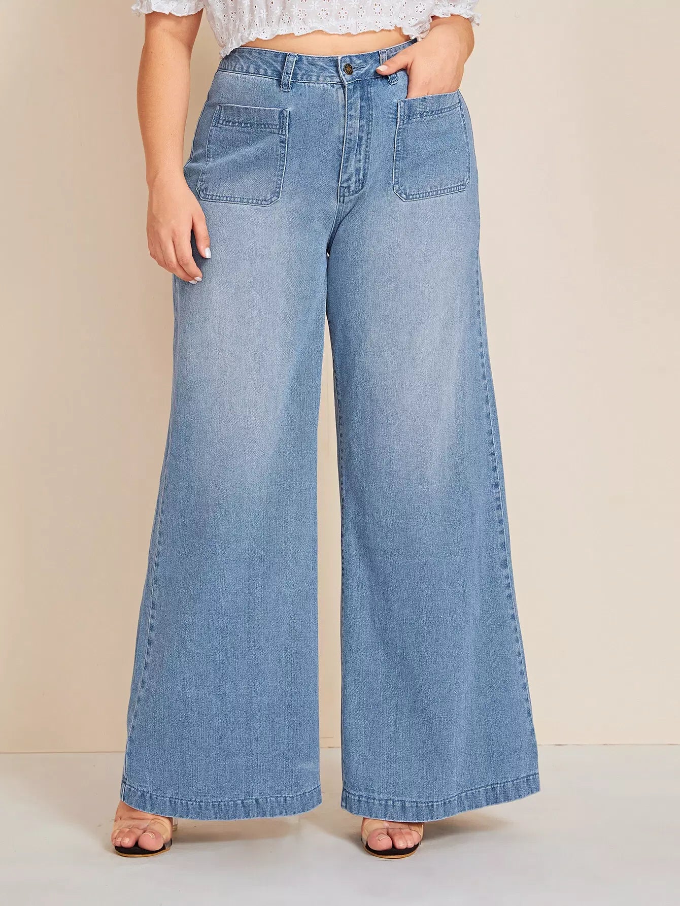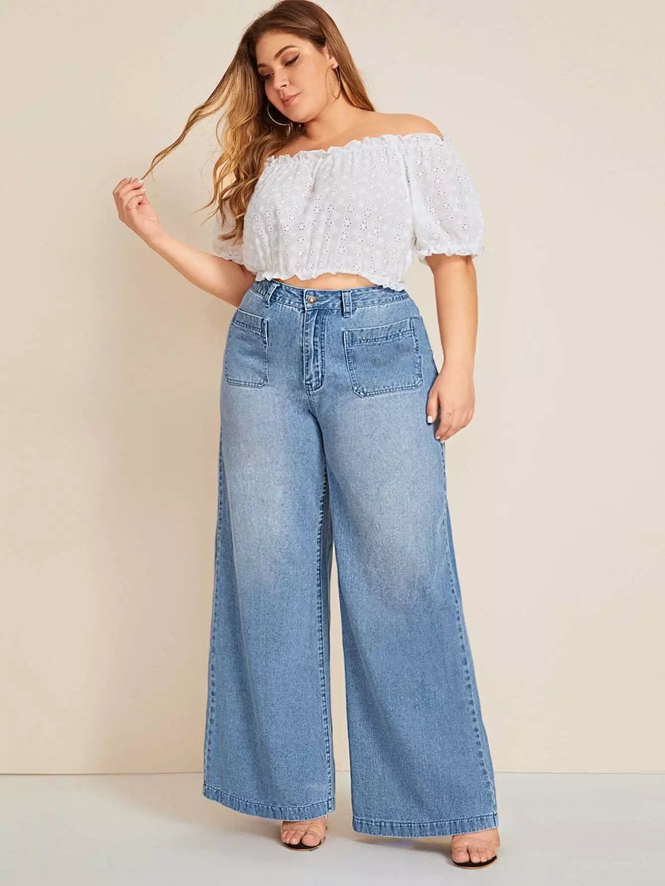 نحيف - مقاس كبير بنطال جينز بجيب أمامي مبيض وواسع الساق