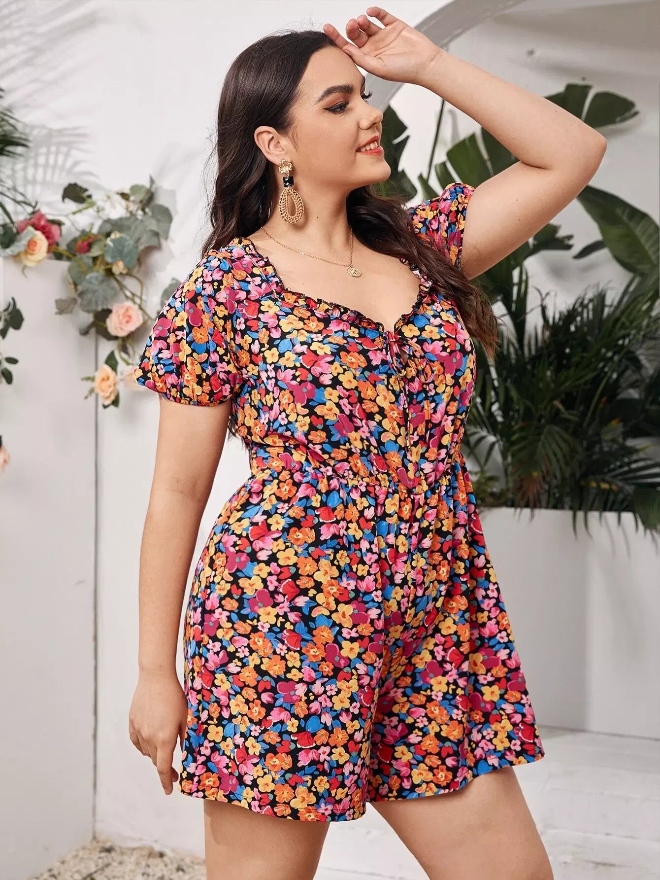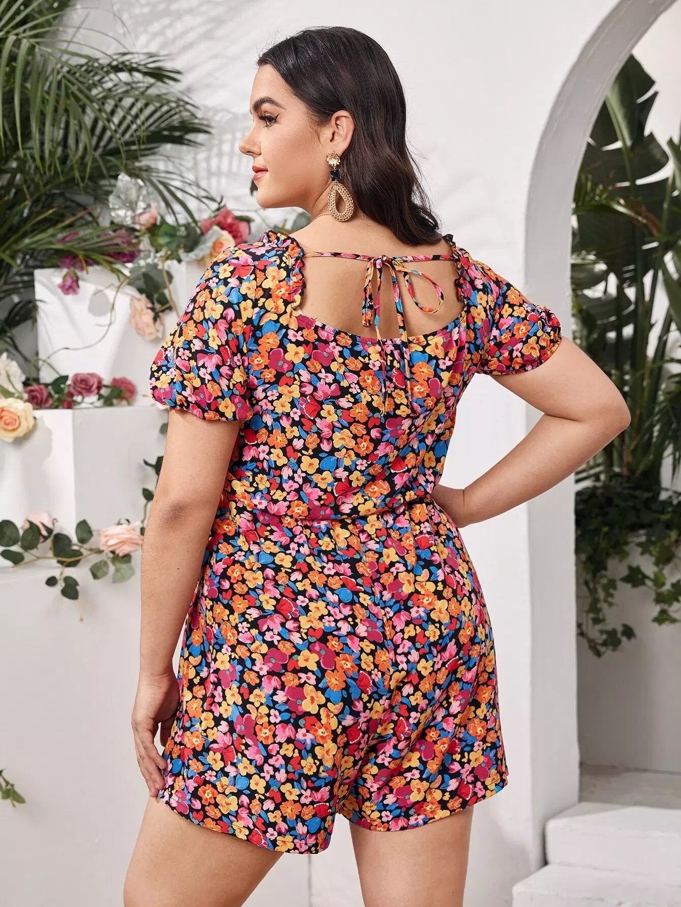 رومبر بأكمام منفوشة بأربطة عنق منفوشة بطبعة زهور