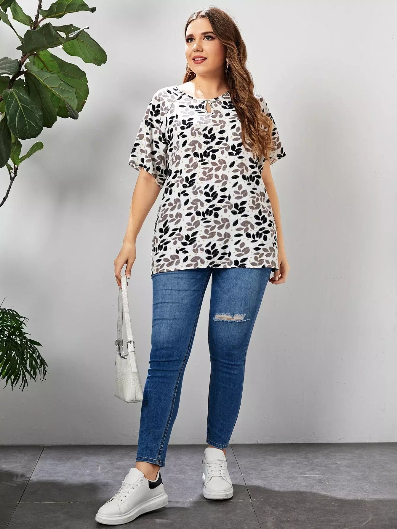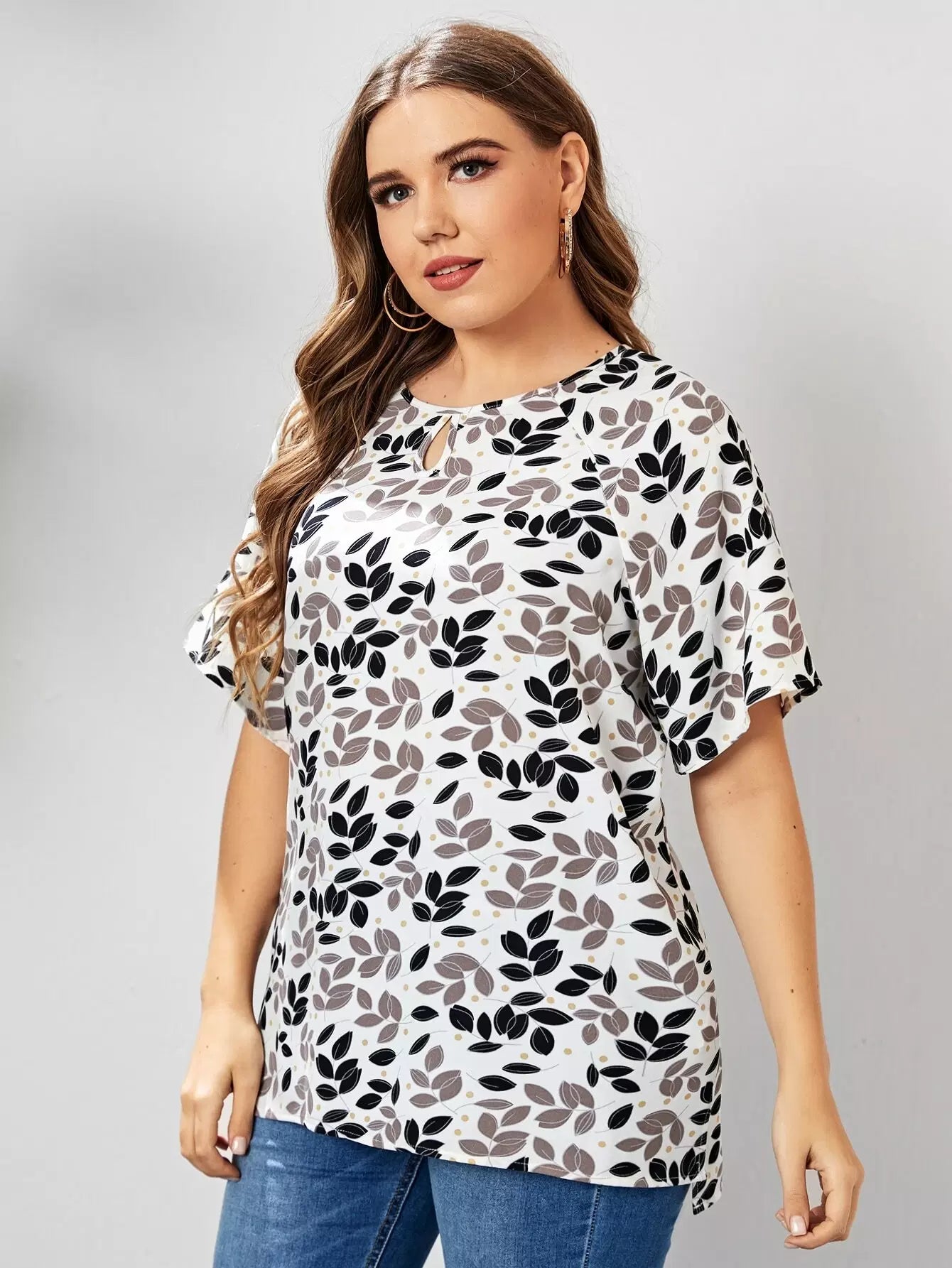 بلوزة بأكمام راجلان مطبوع عليها أوراق الشجر