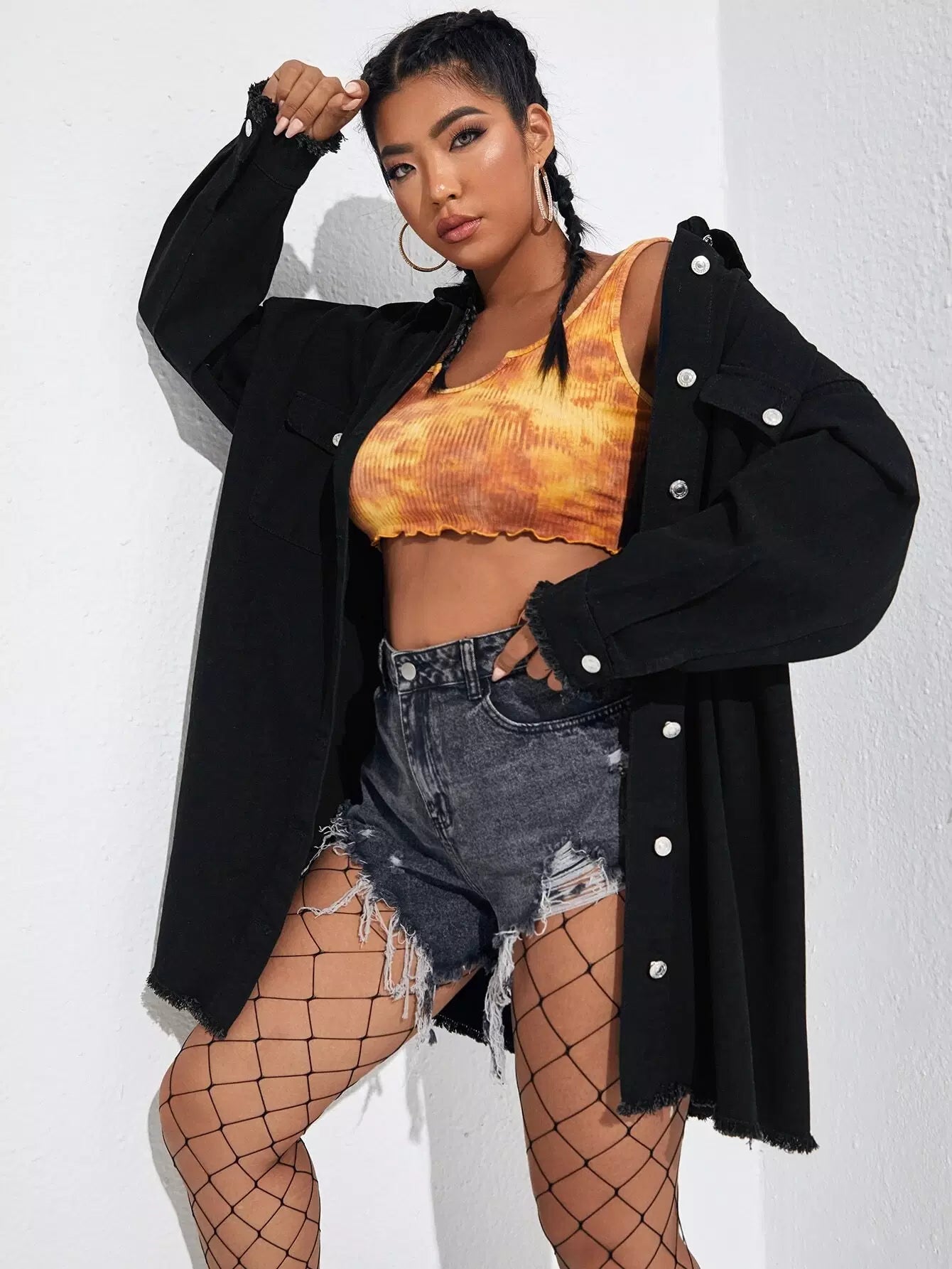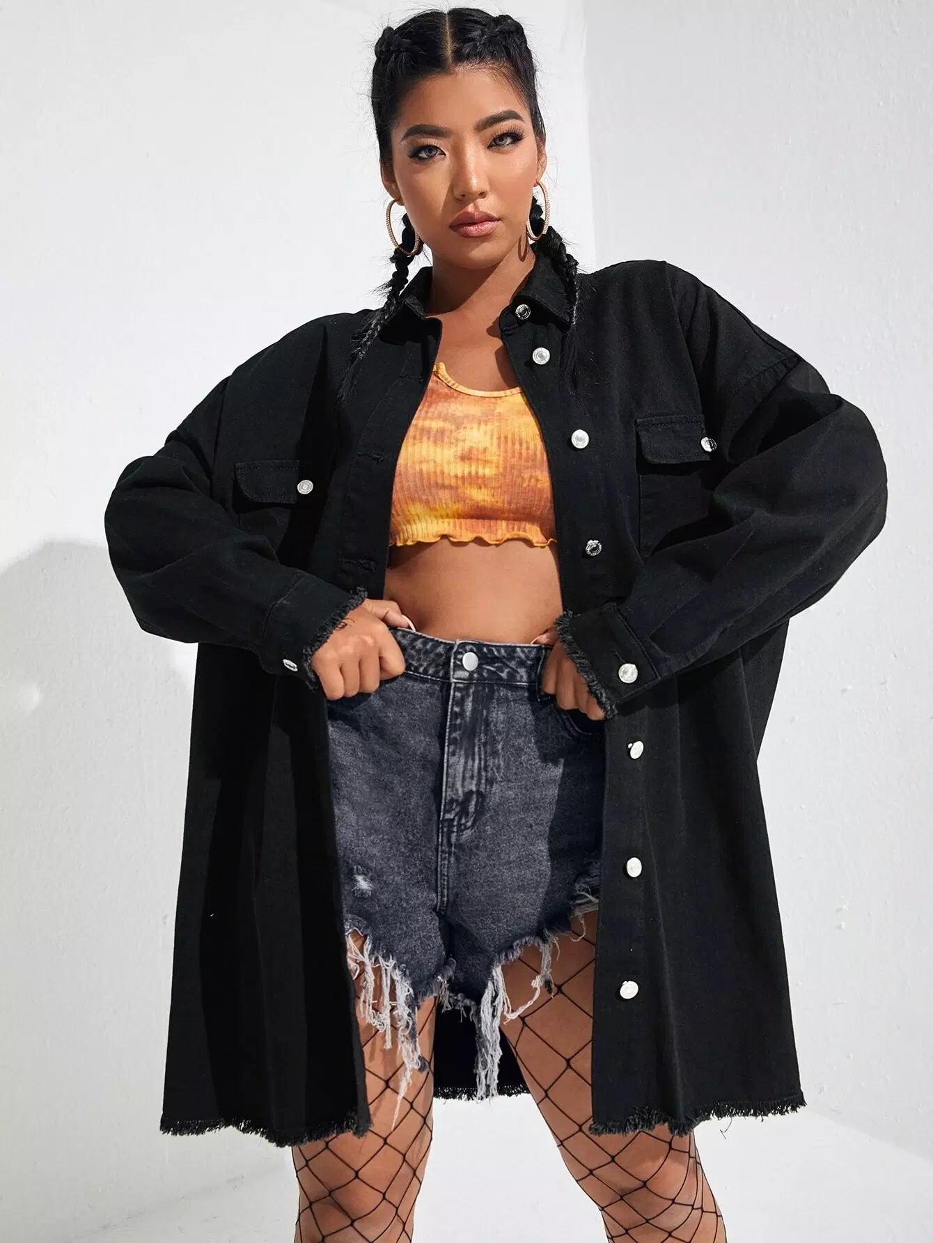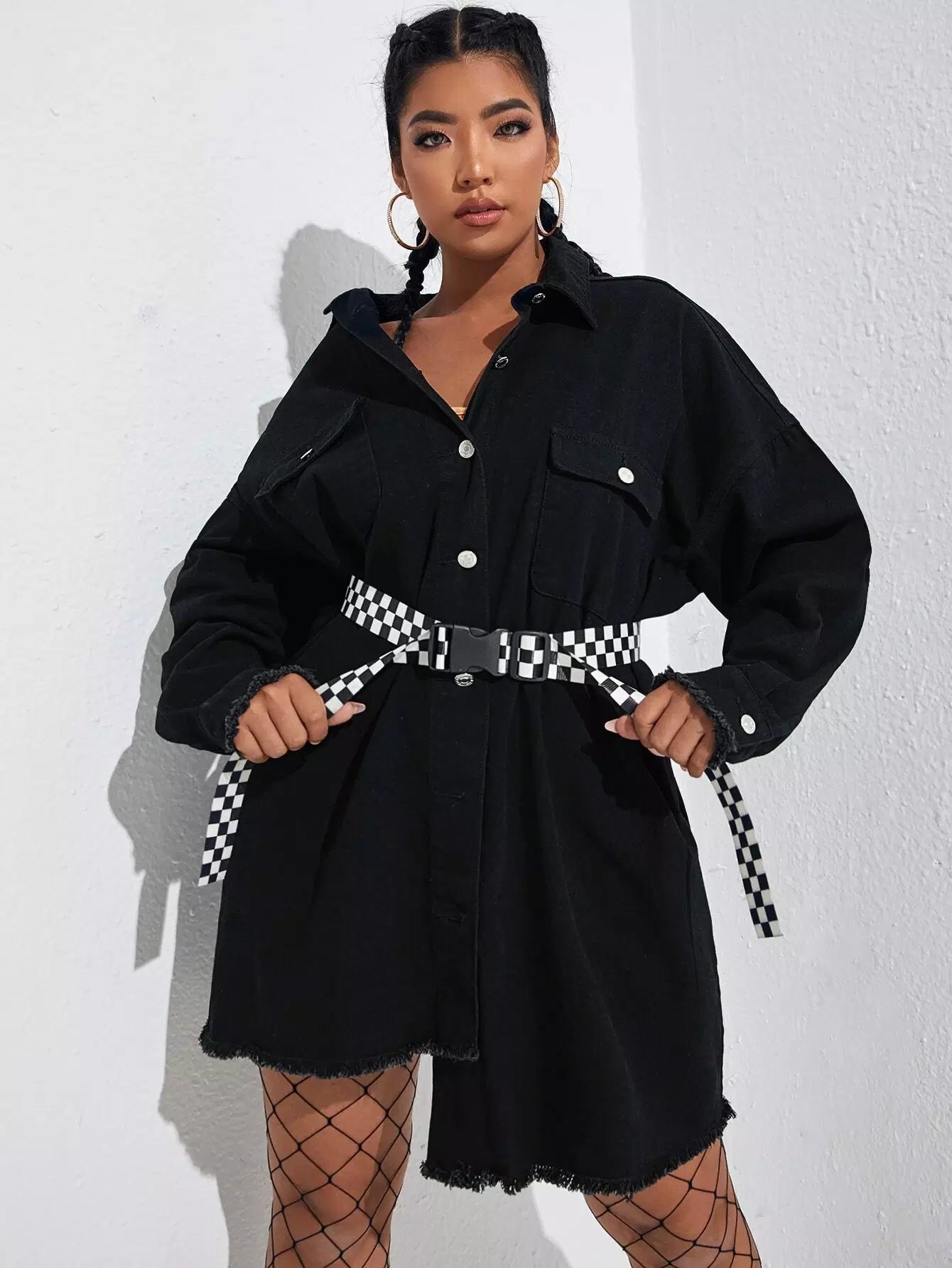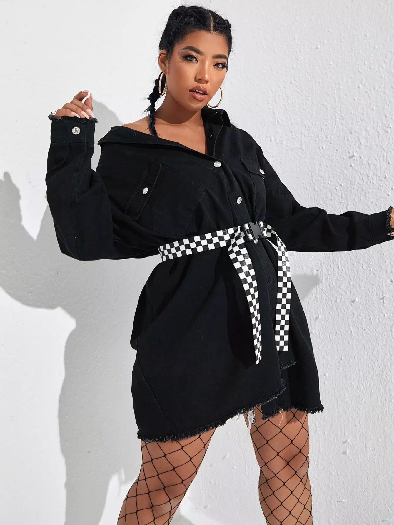 بالإضافة إلى سترة من الدنيم بحاشية خام بدون حزام