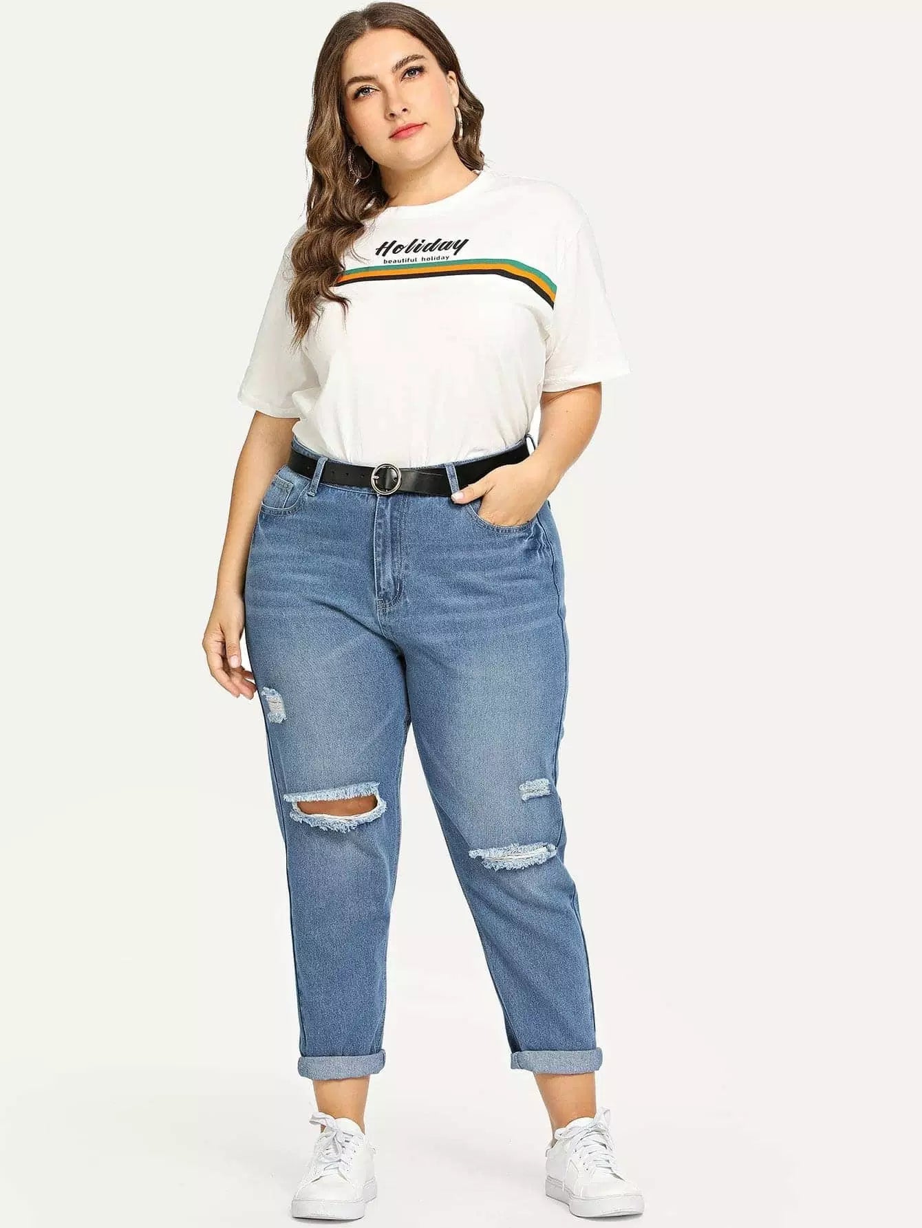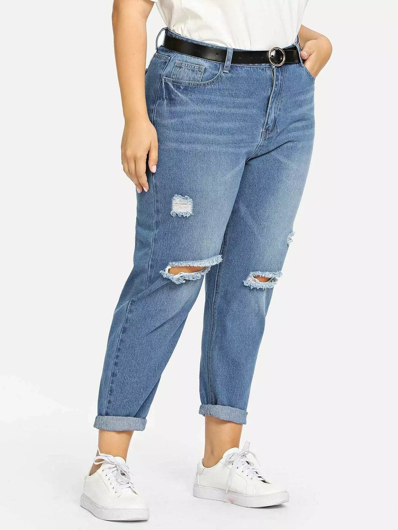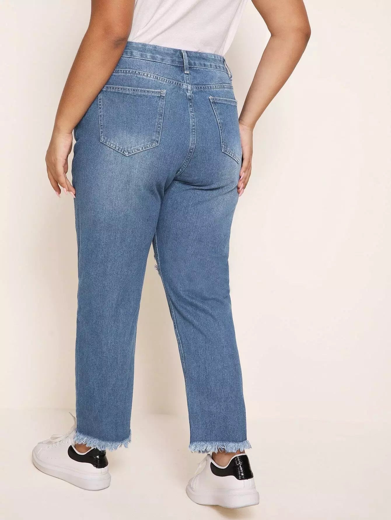 نحيف - مقاس كبير جينز ممزق بحاشية ملفوفة