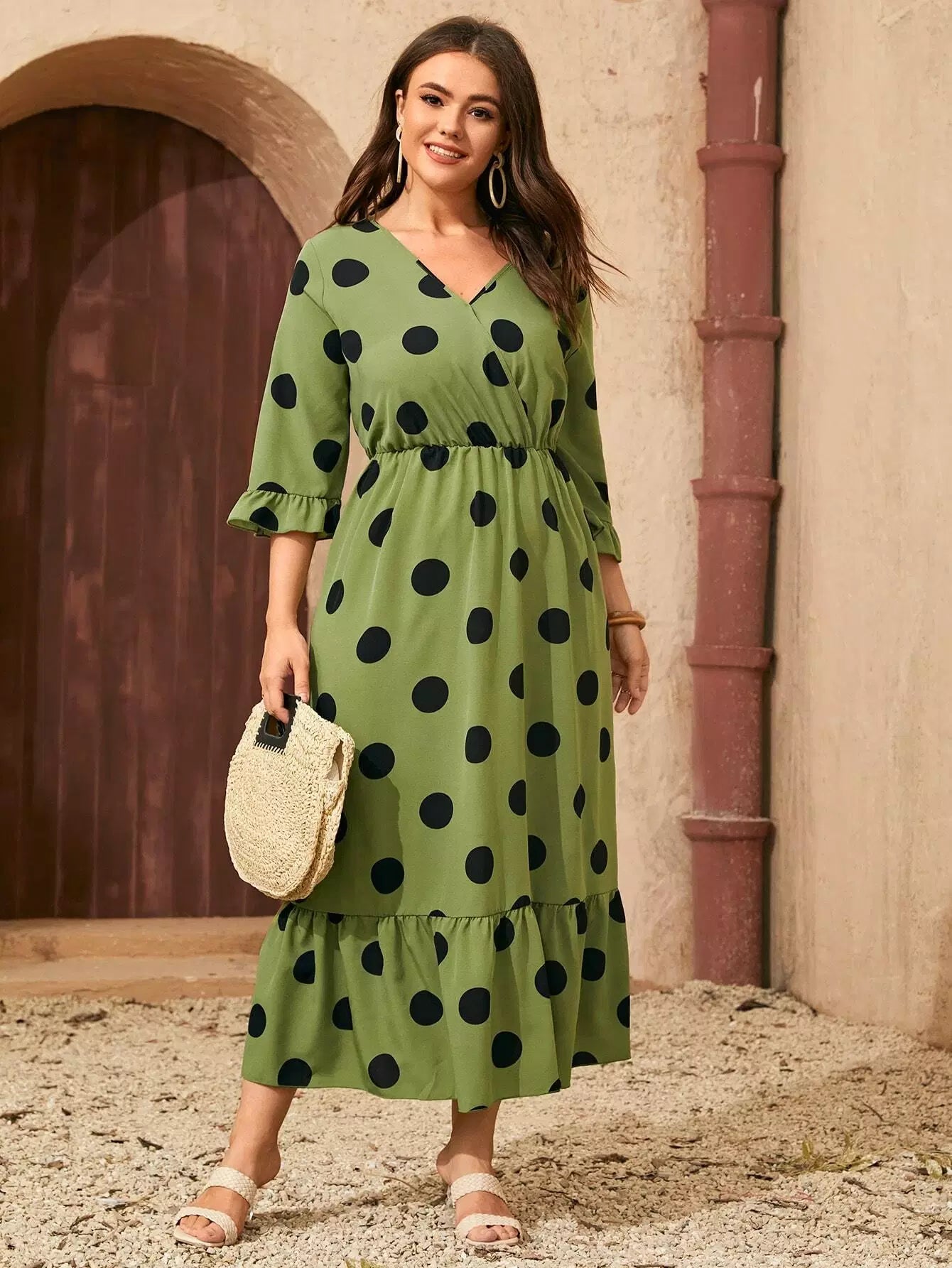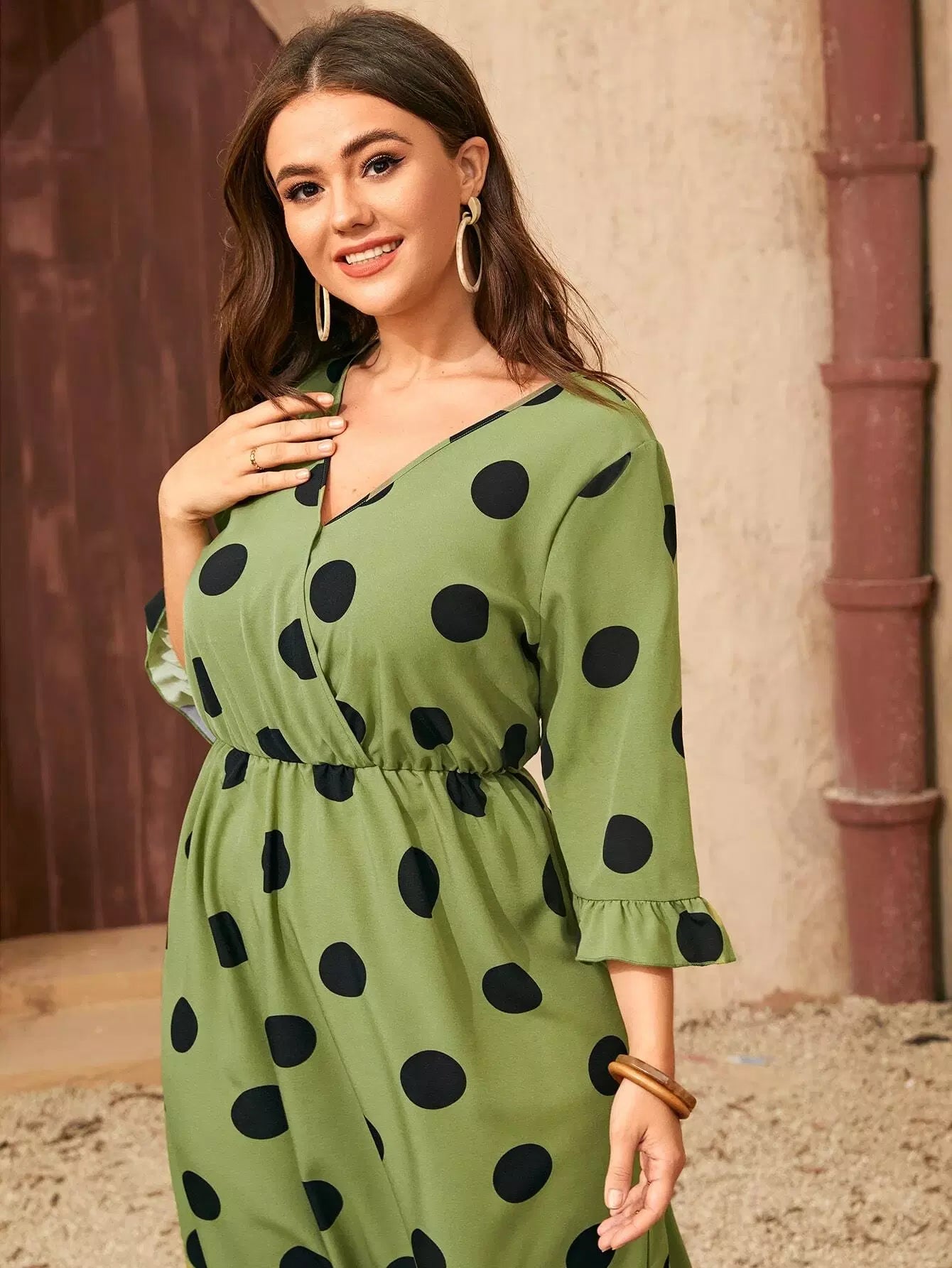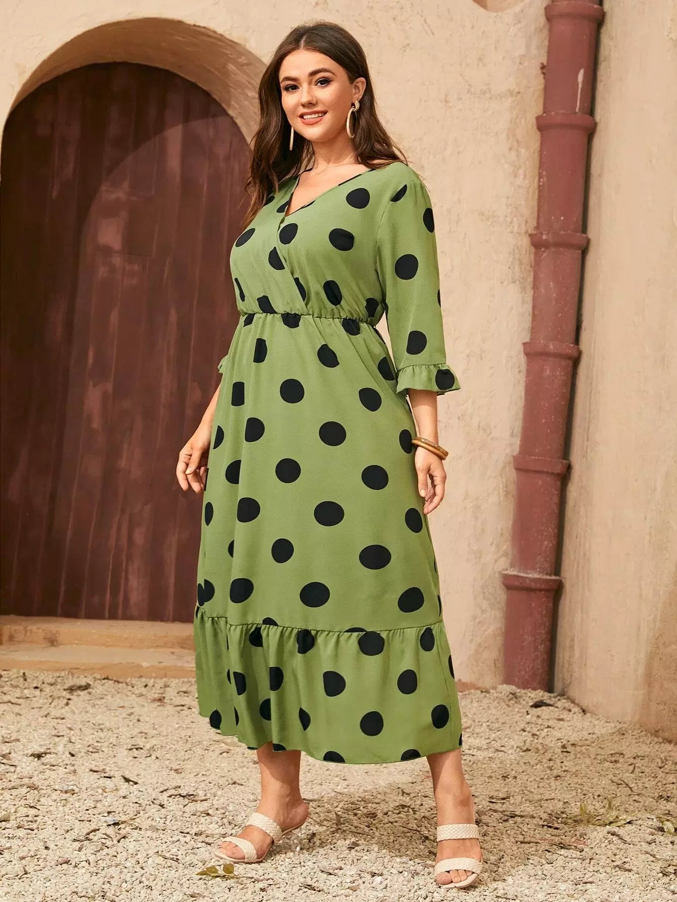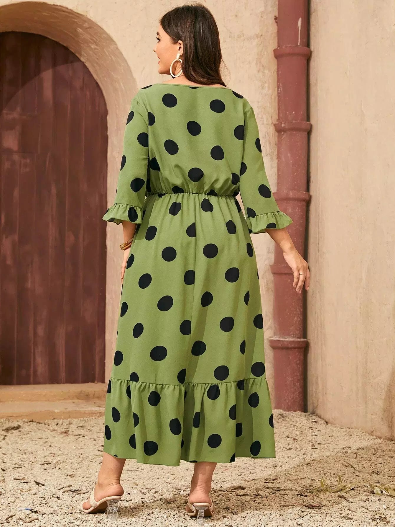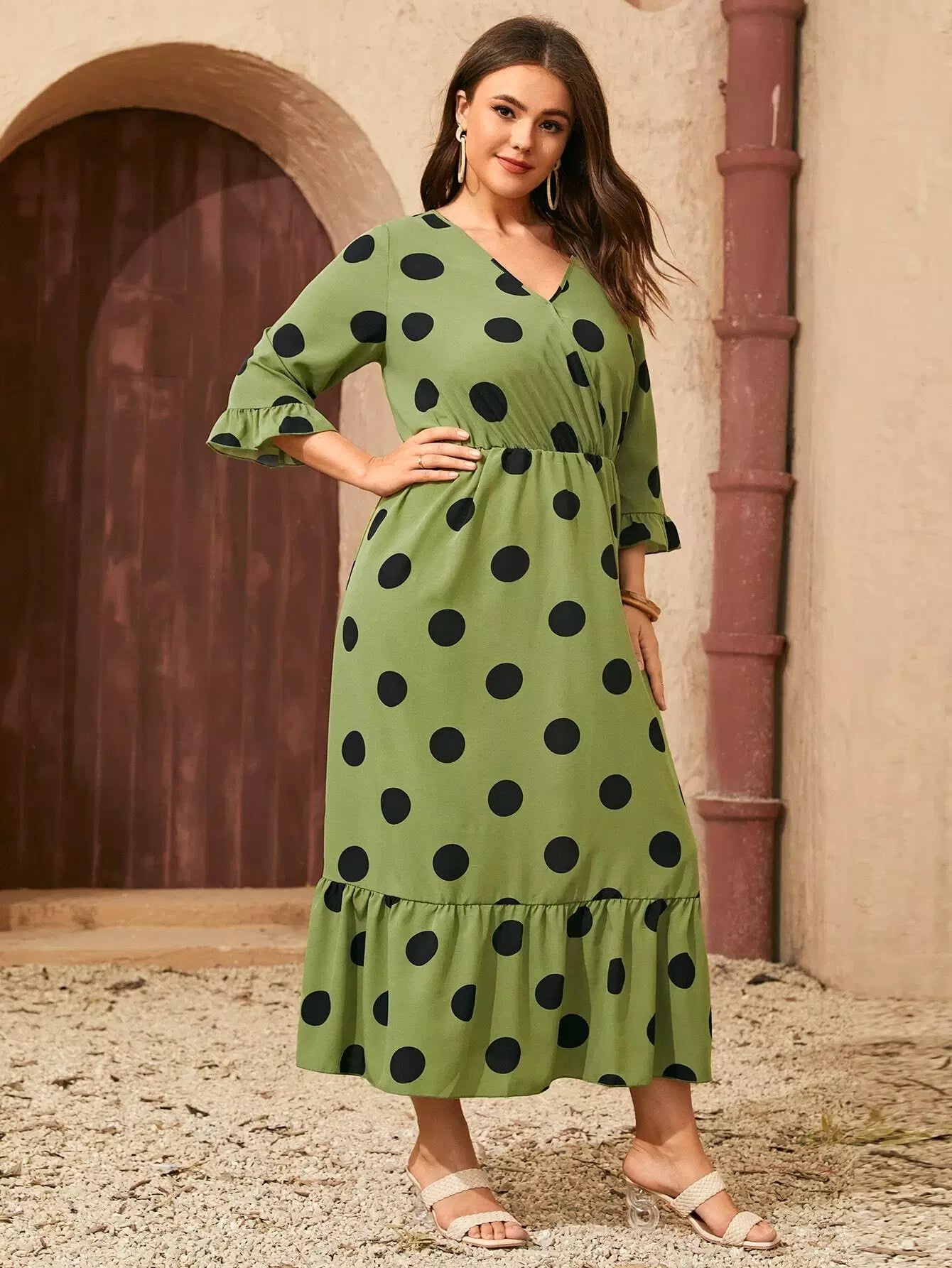 فستان منقّط بحافة مكشكشة زائد كشكش