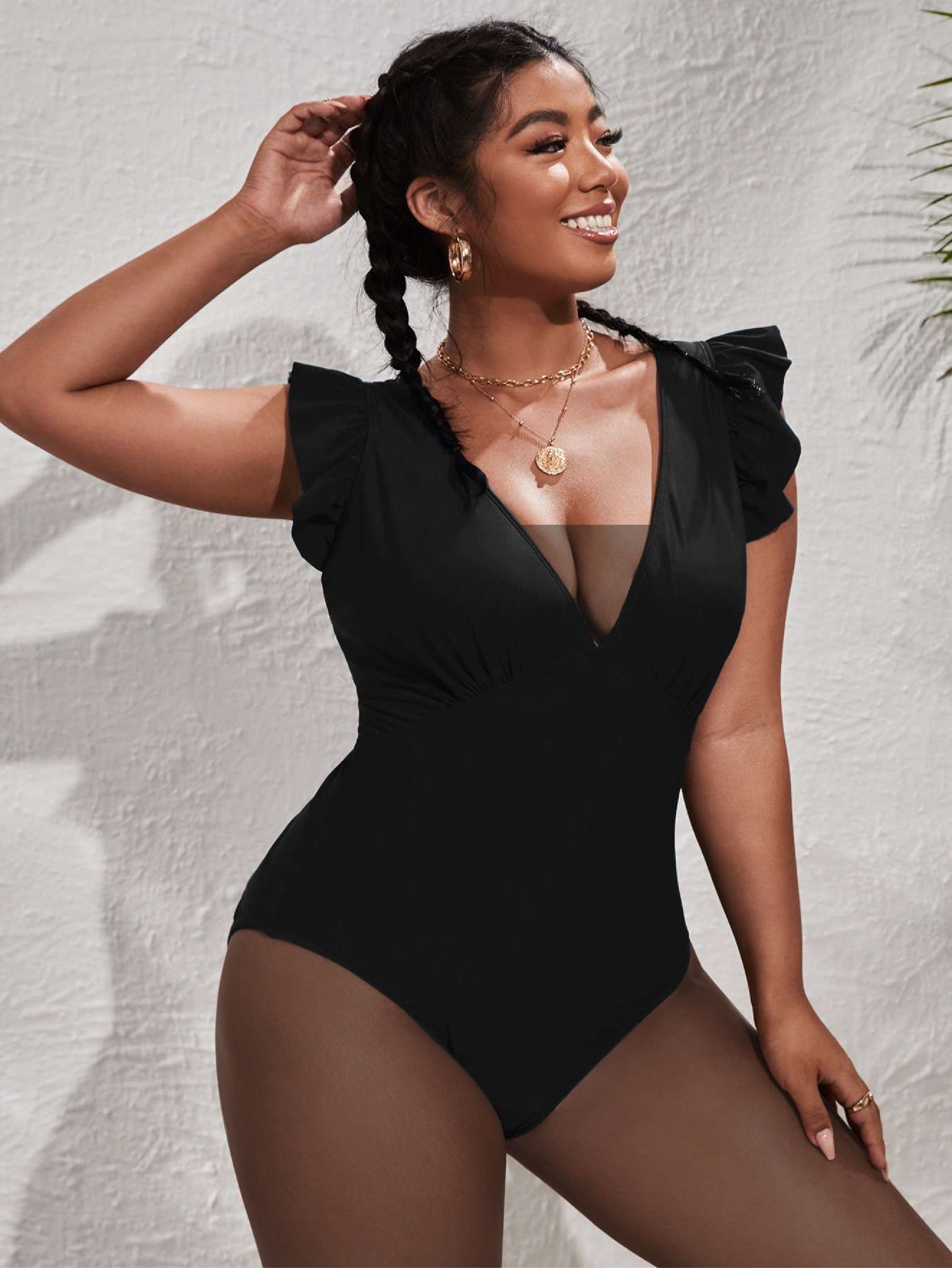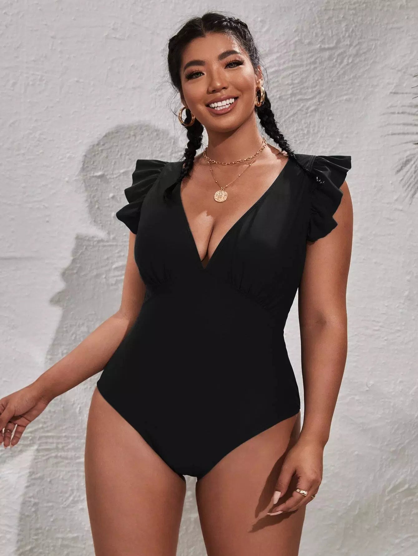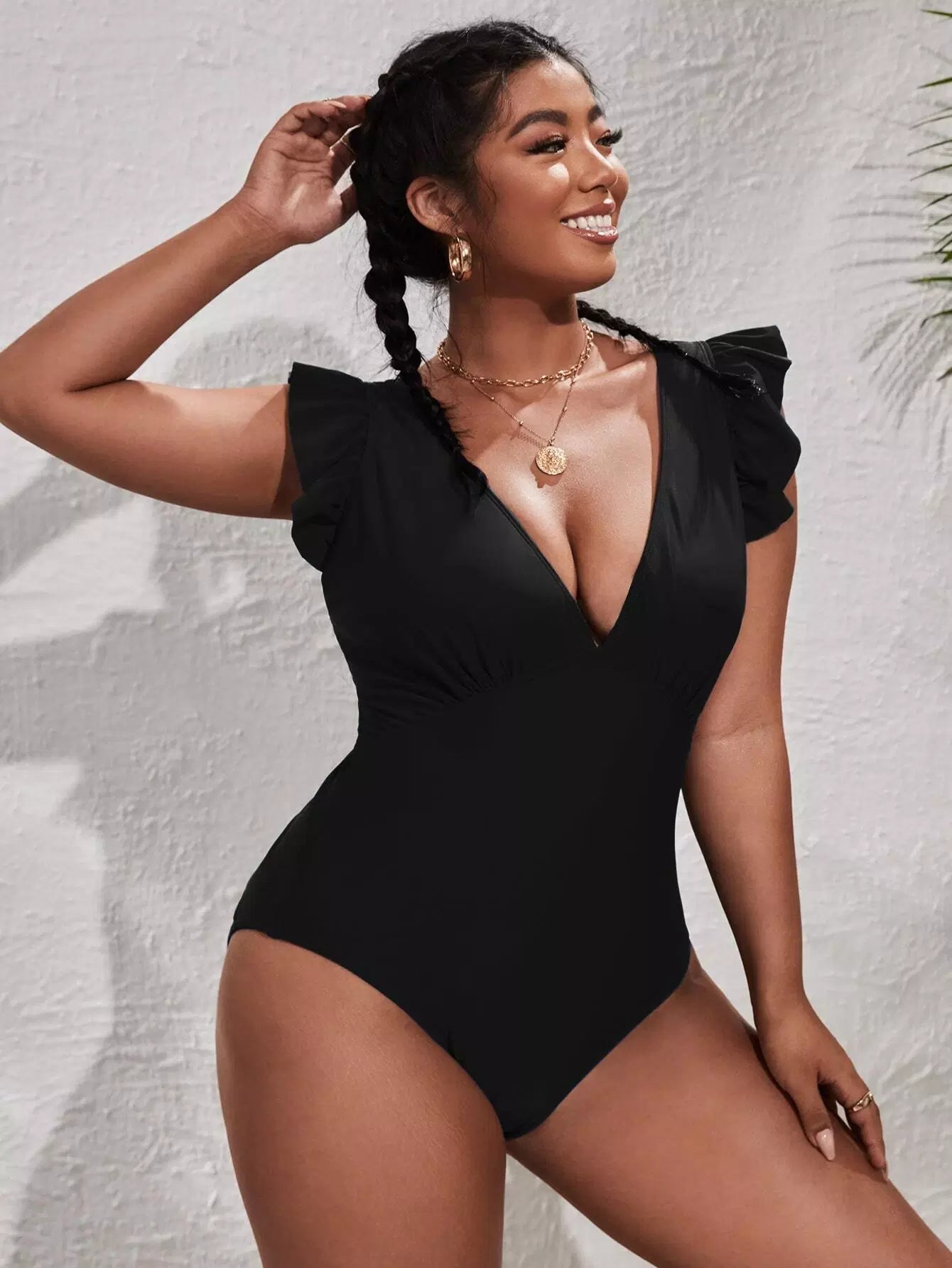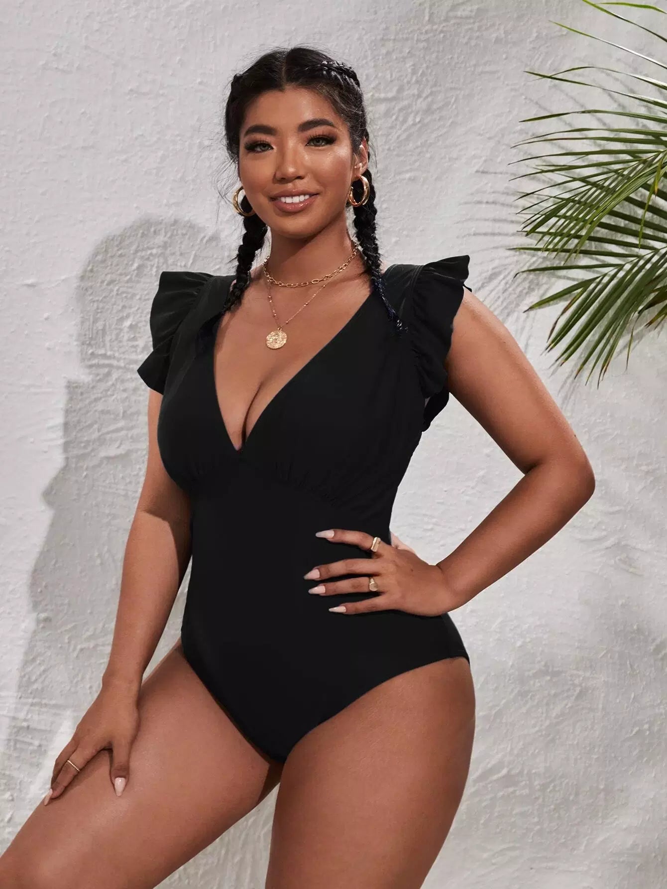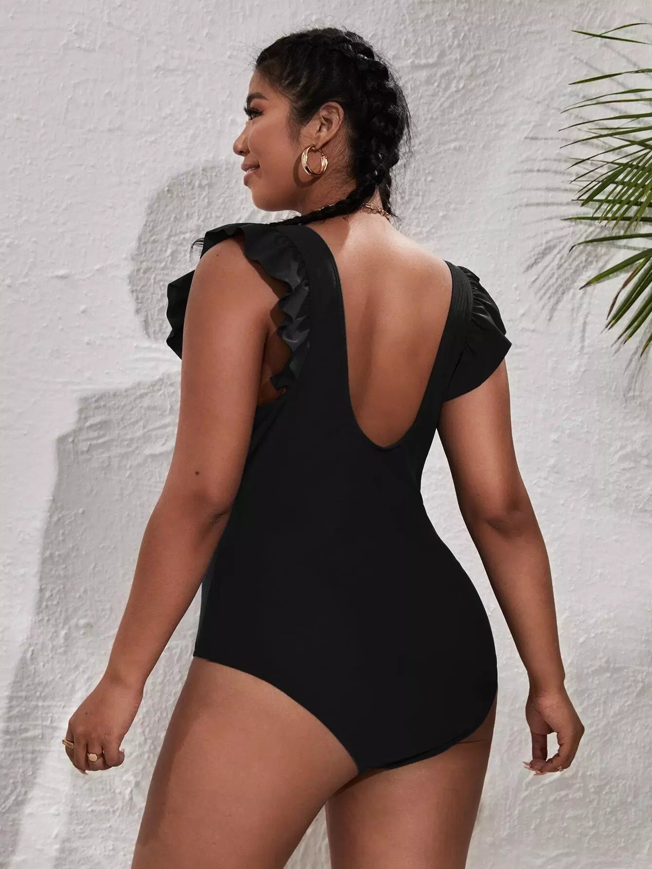 بدلة سباحة بقطعة واحدة مكشكشة ذات حواف مكشكشة زائد