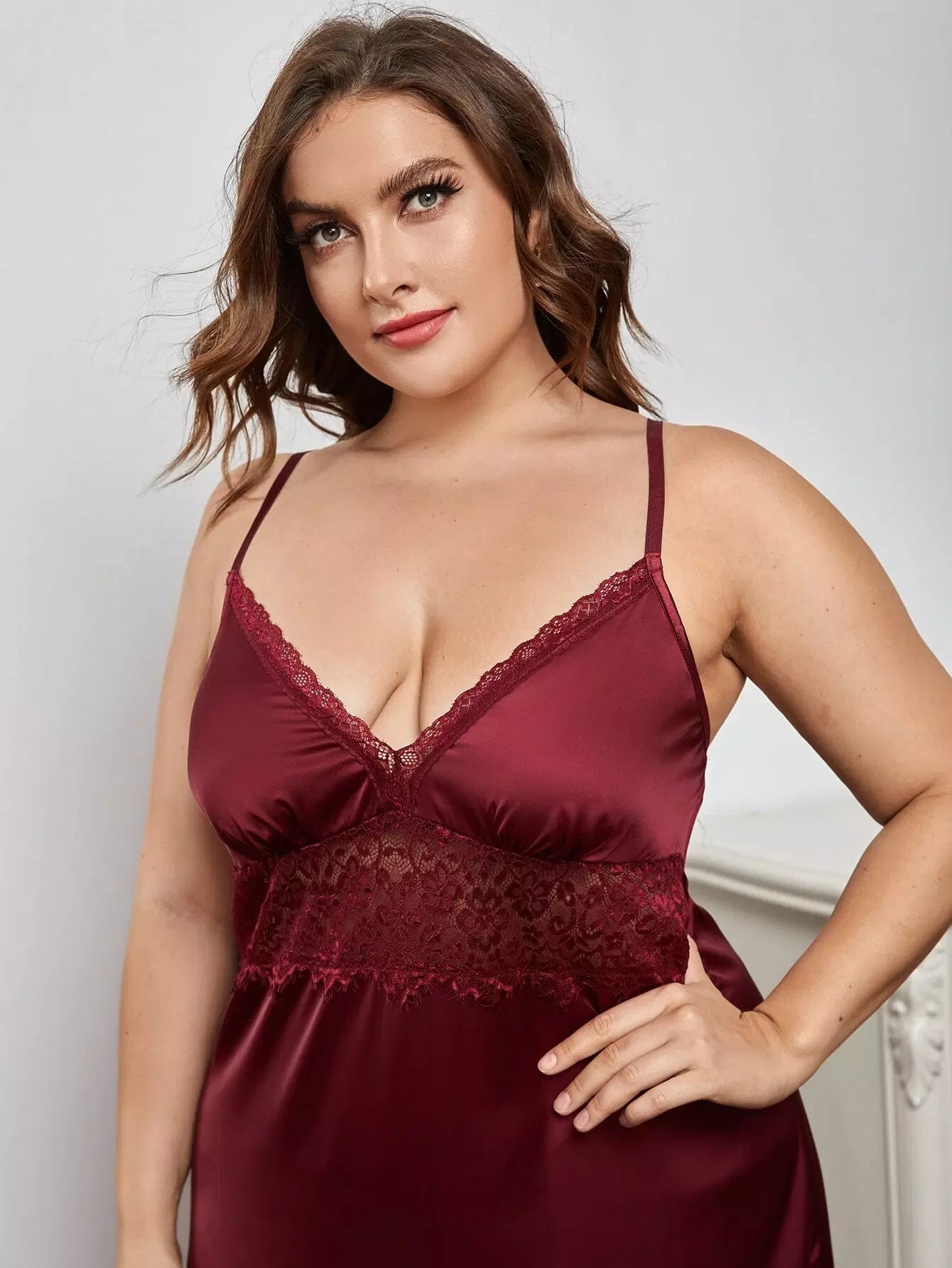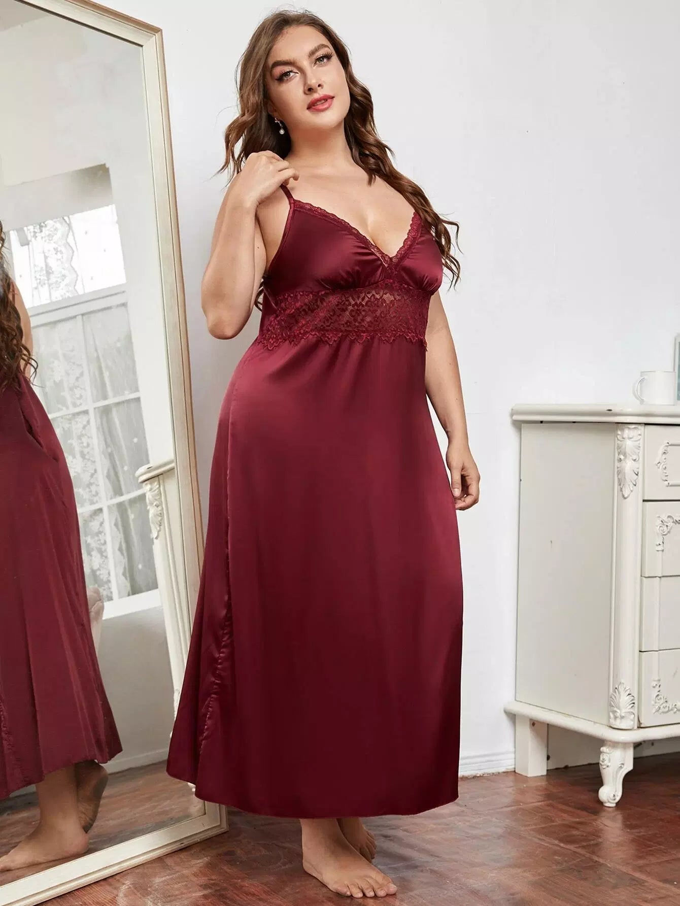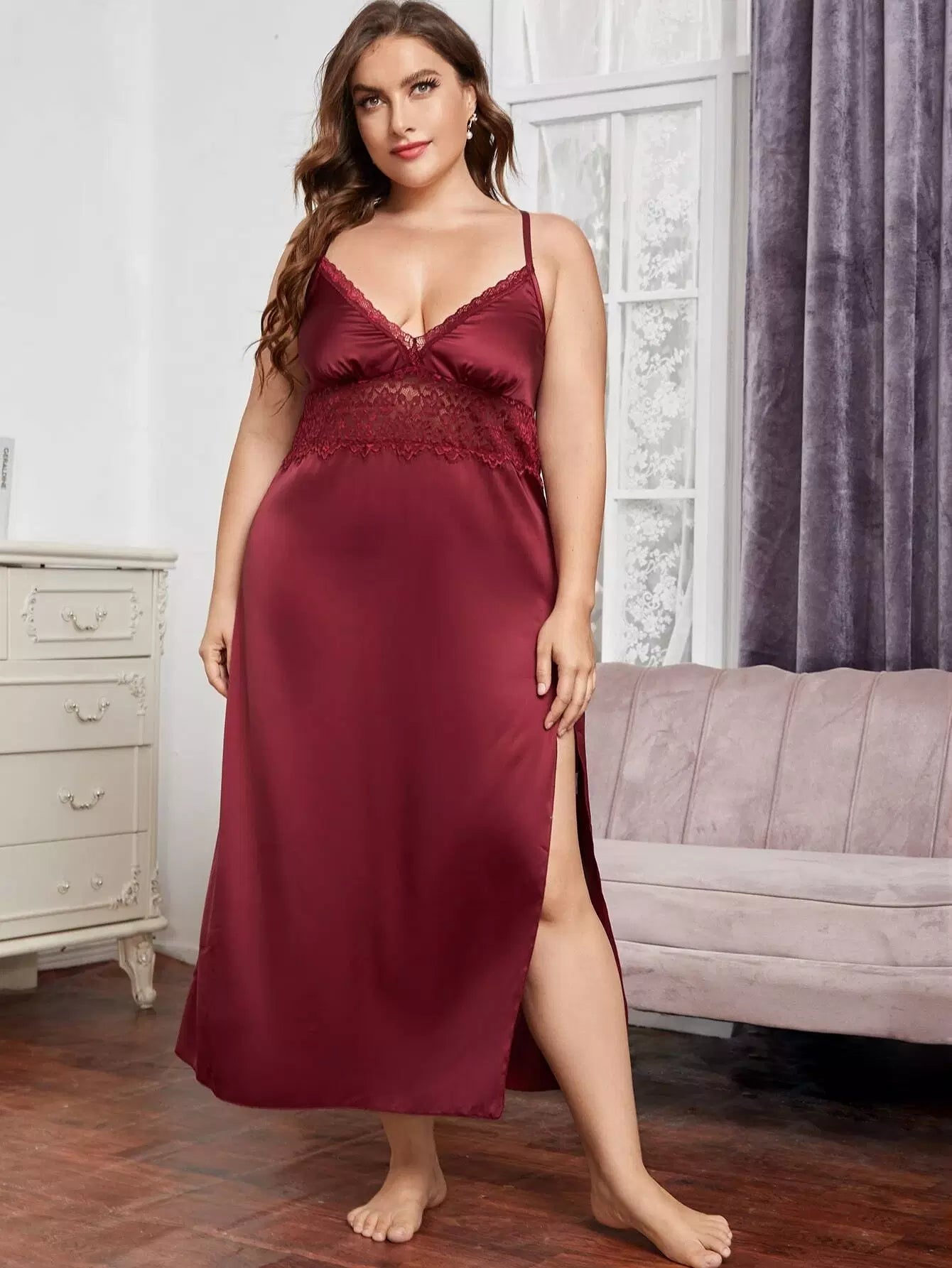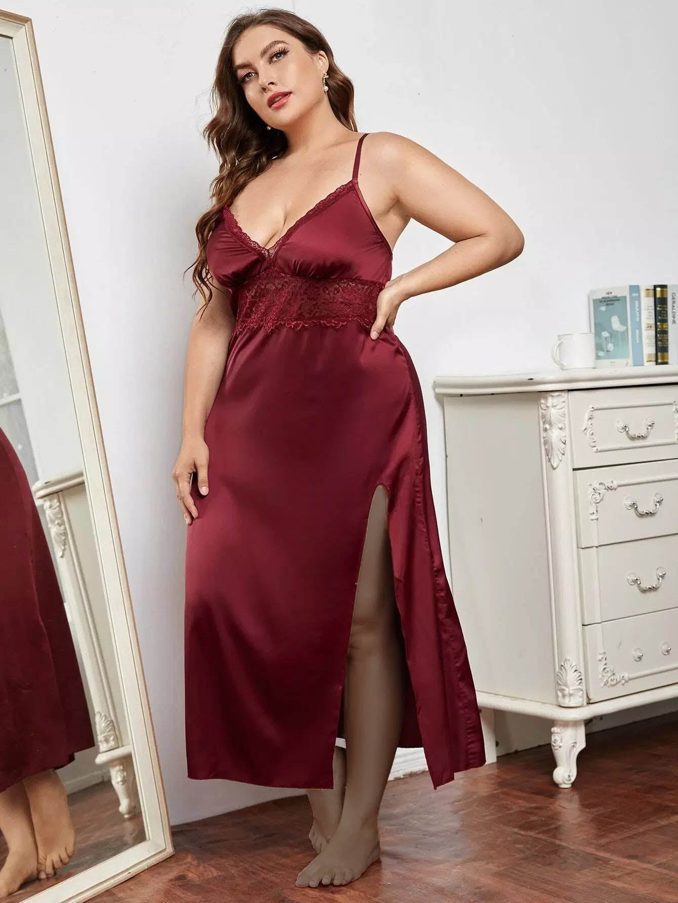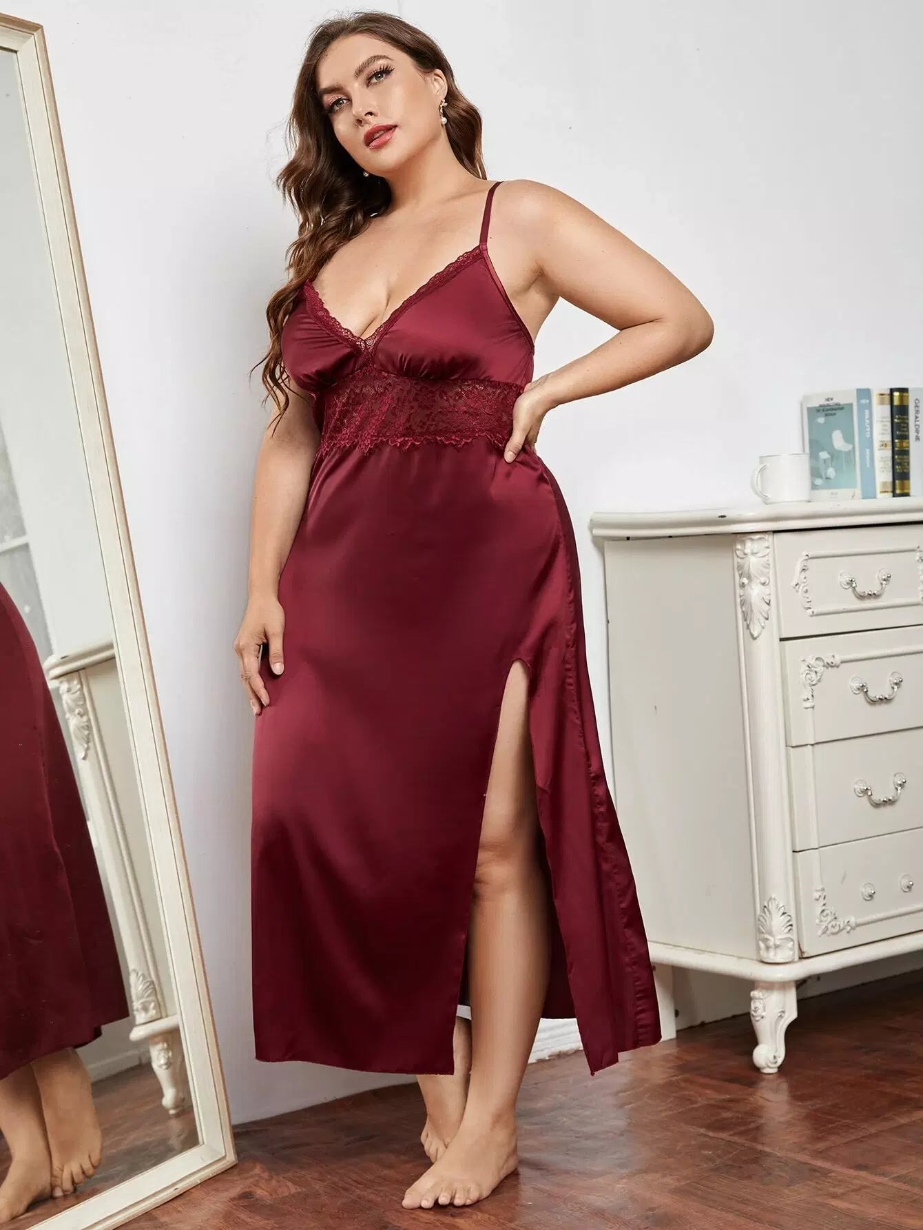 فستان ساتان زائد من الدانتيل المشقوق من الدانتيل على الفخذين