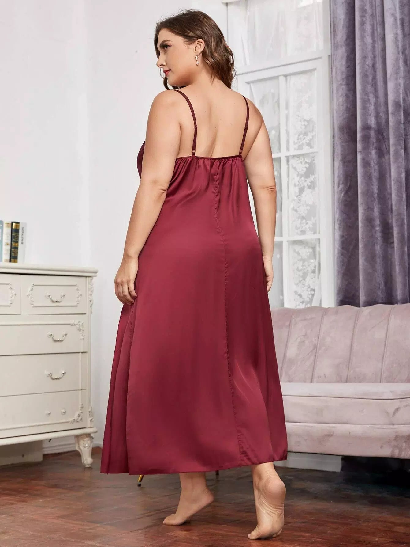 نحيف - مقاس كبير فستان من الدانتيل الساتان بفتحة في الفخذ