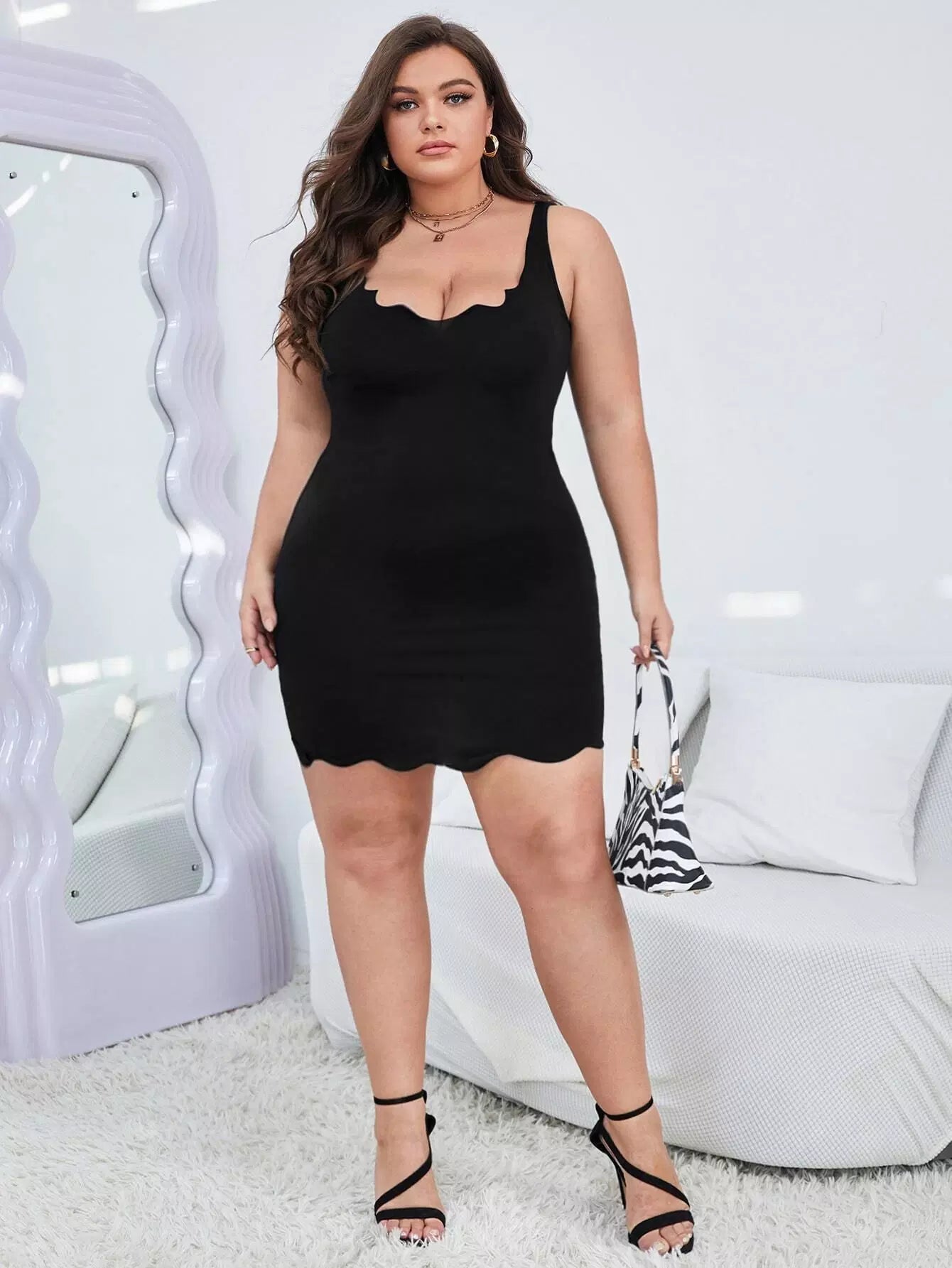 فستان بوديكون برقبة دائرية برقبة دائرية بحافة صدفية زائد
