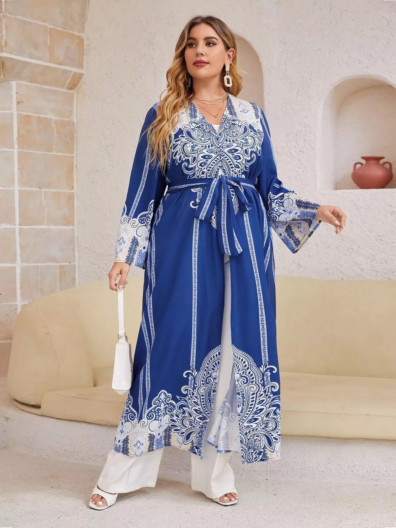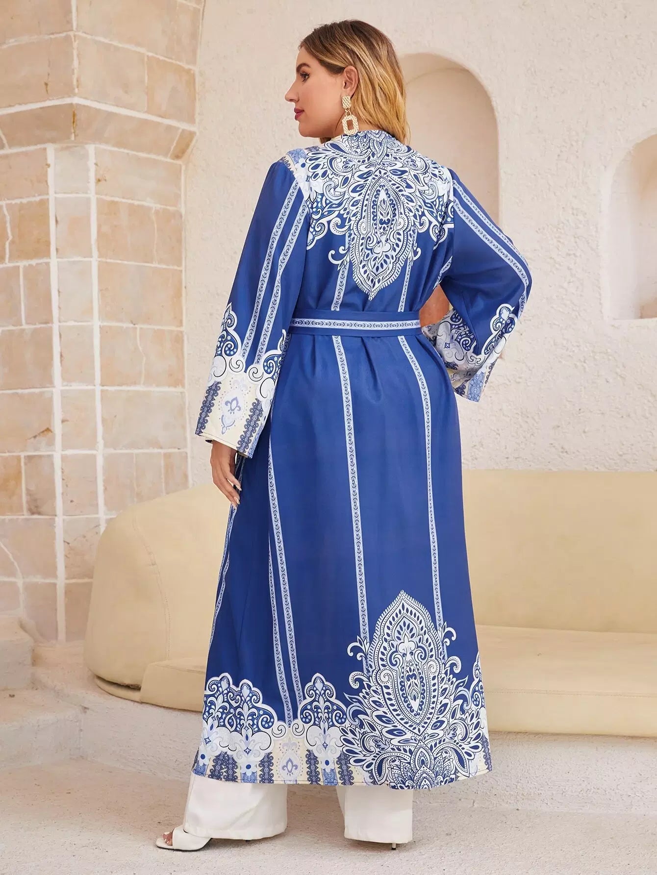 بالإضافة إلى عباية بطبعة التمرير بدون حزام