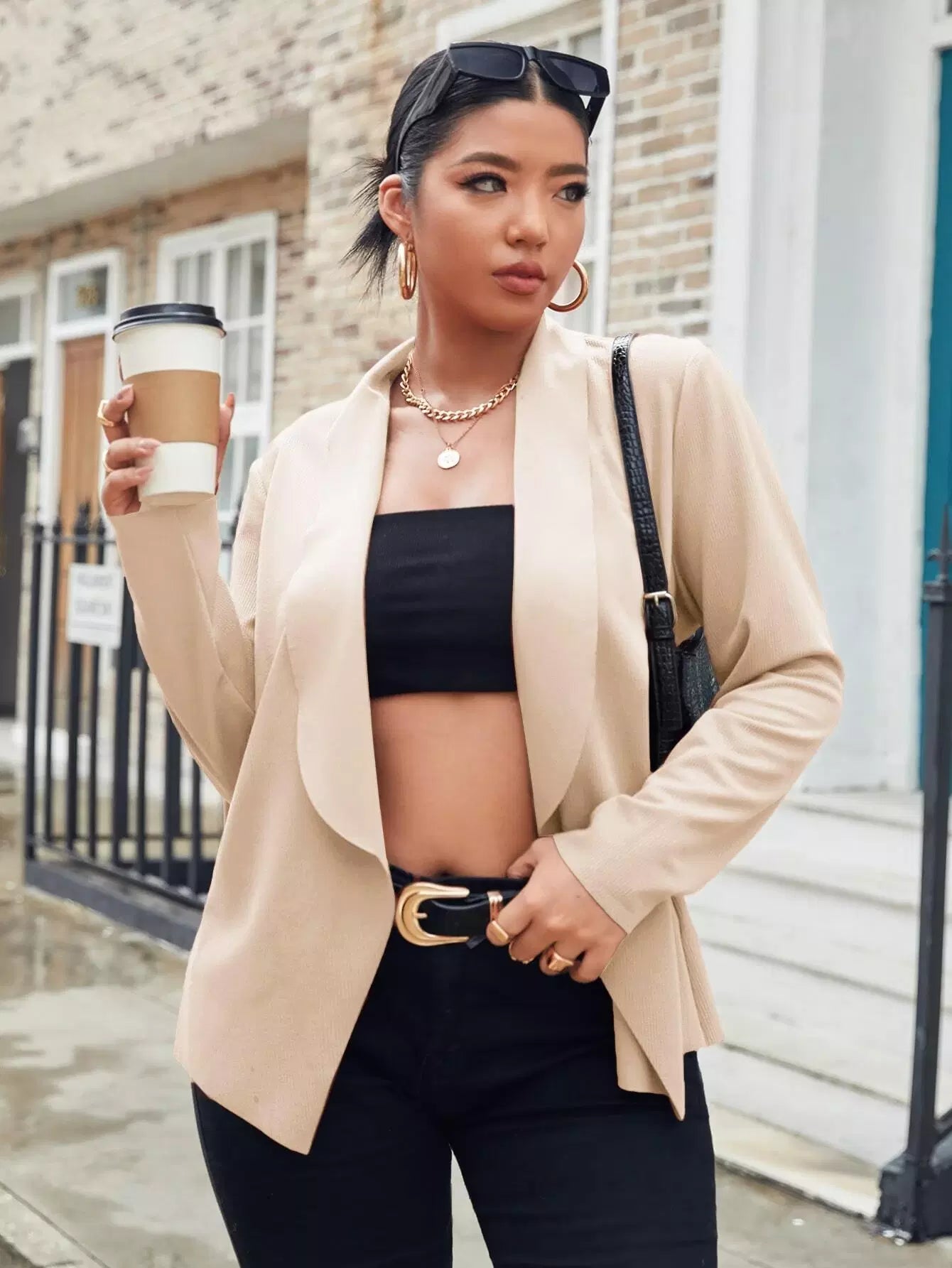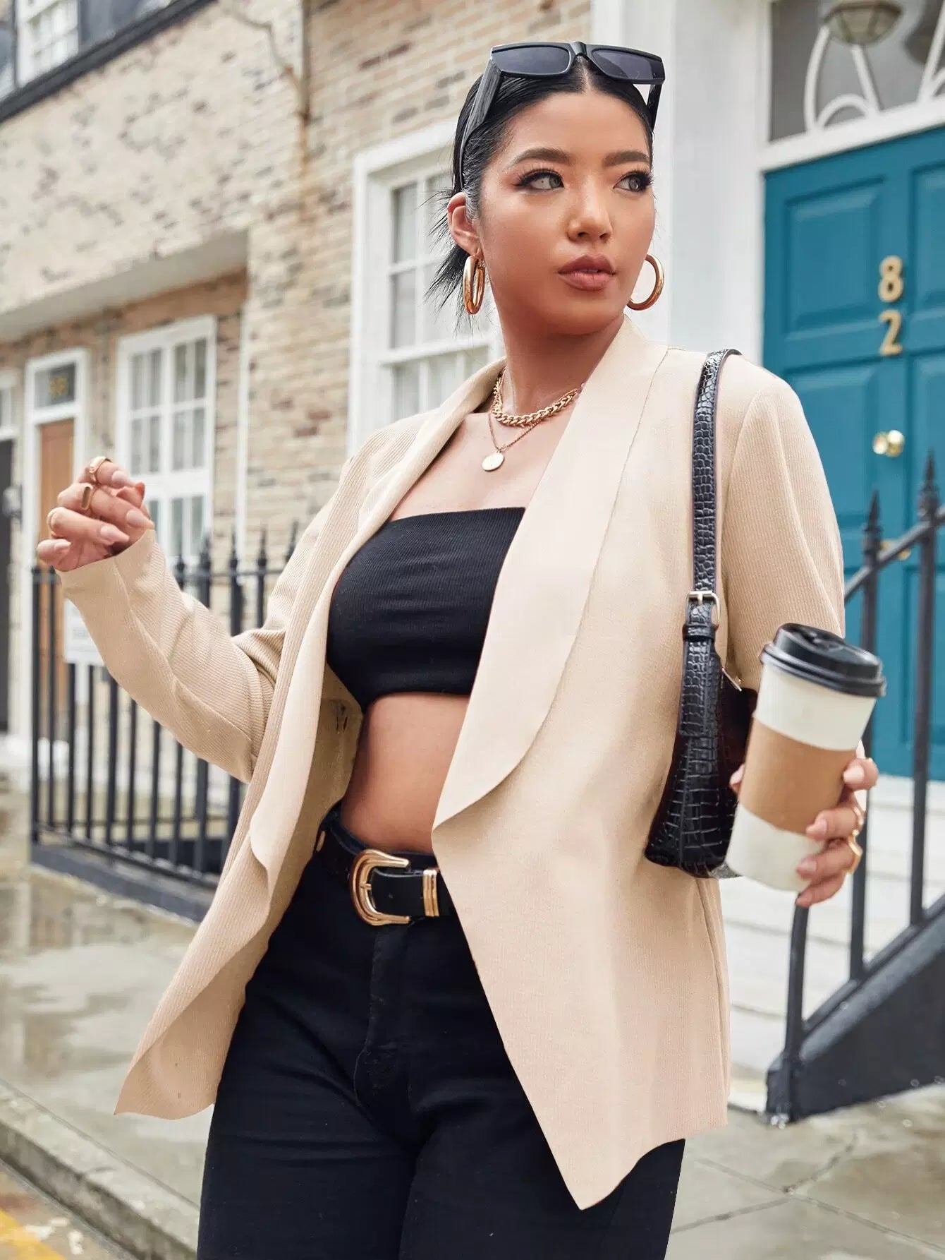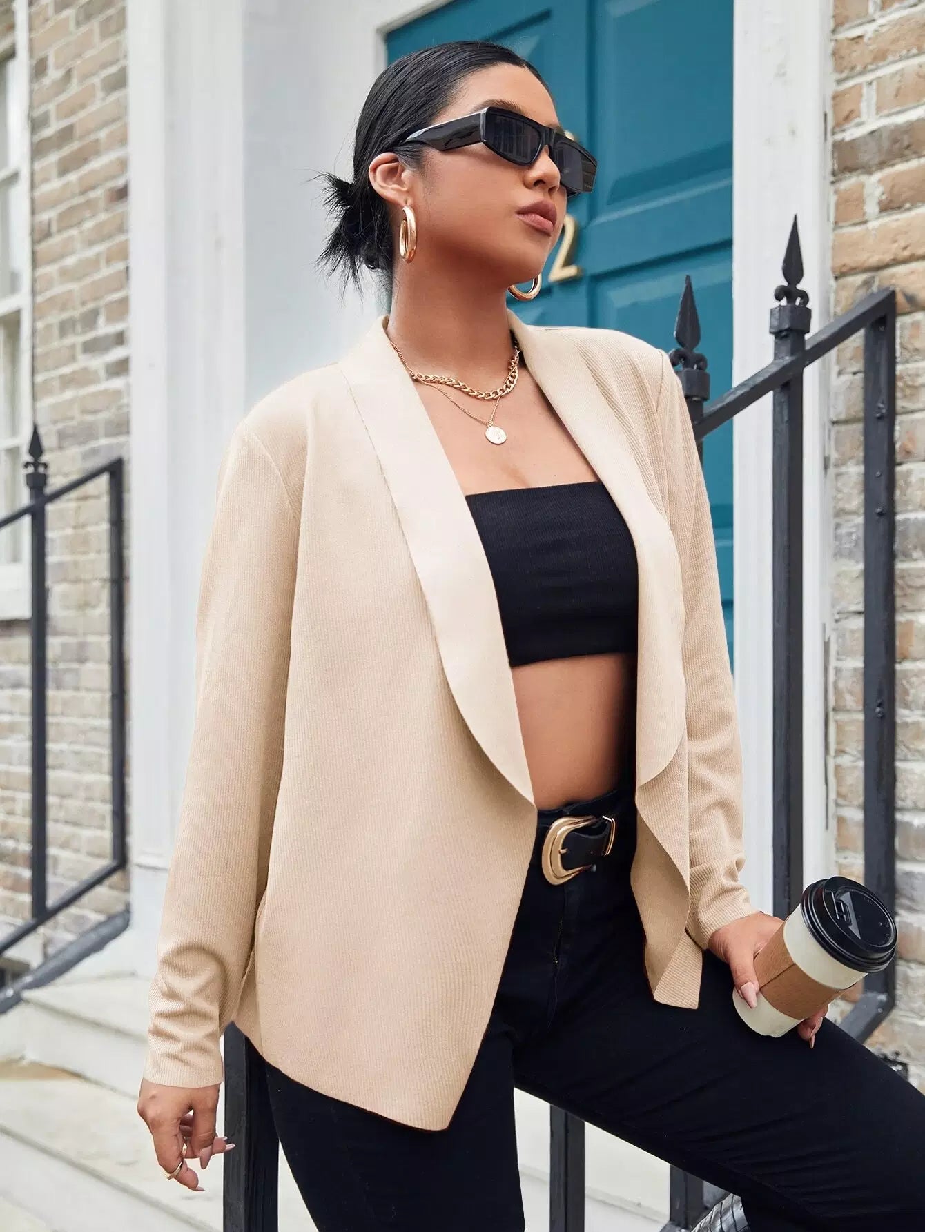 نحيف - مقاس كبير معطف بياقة شال مفتوح من الأمام