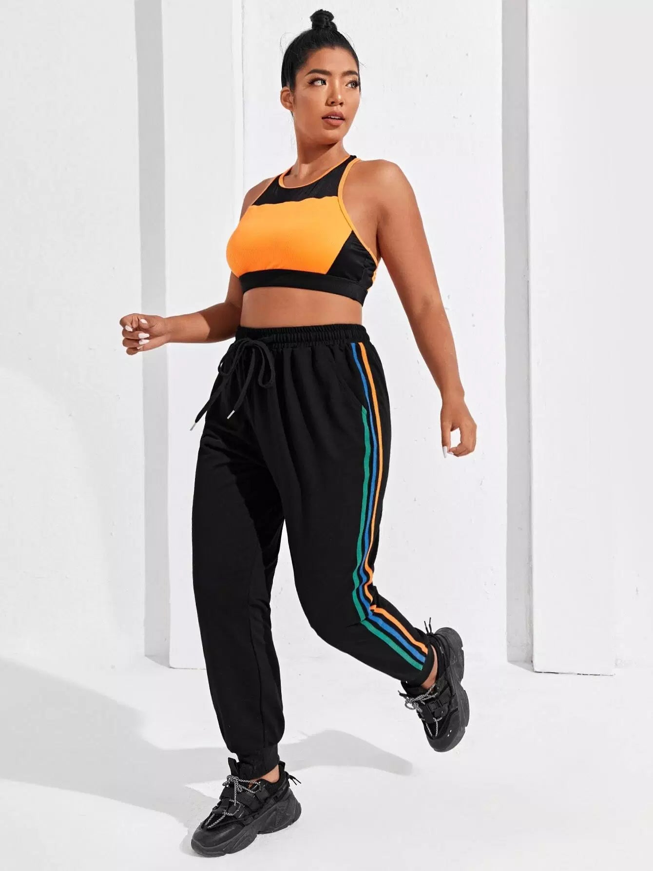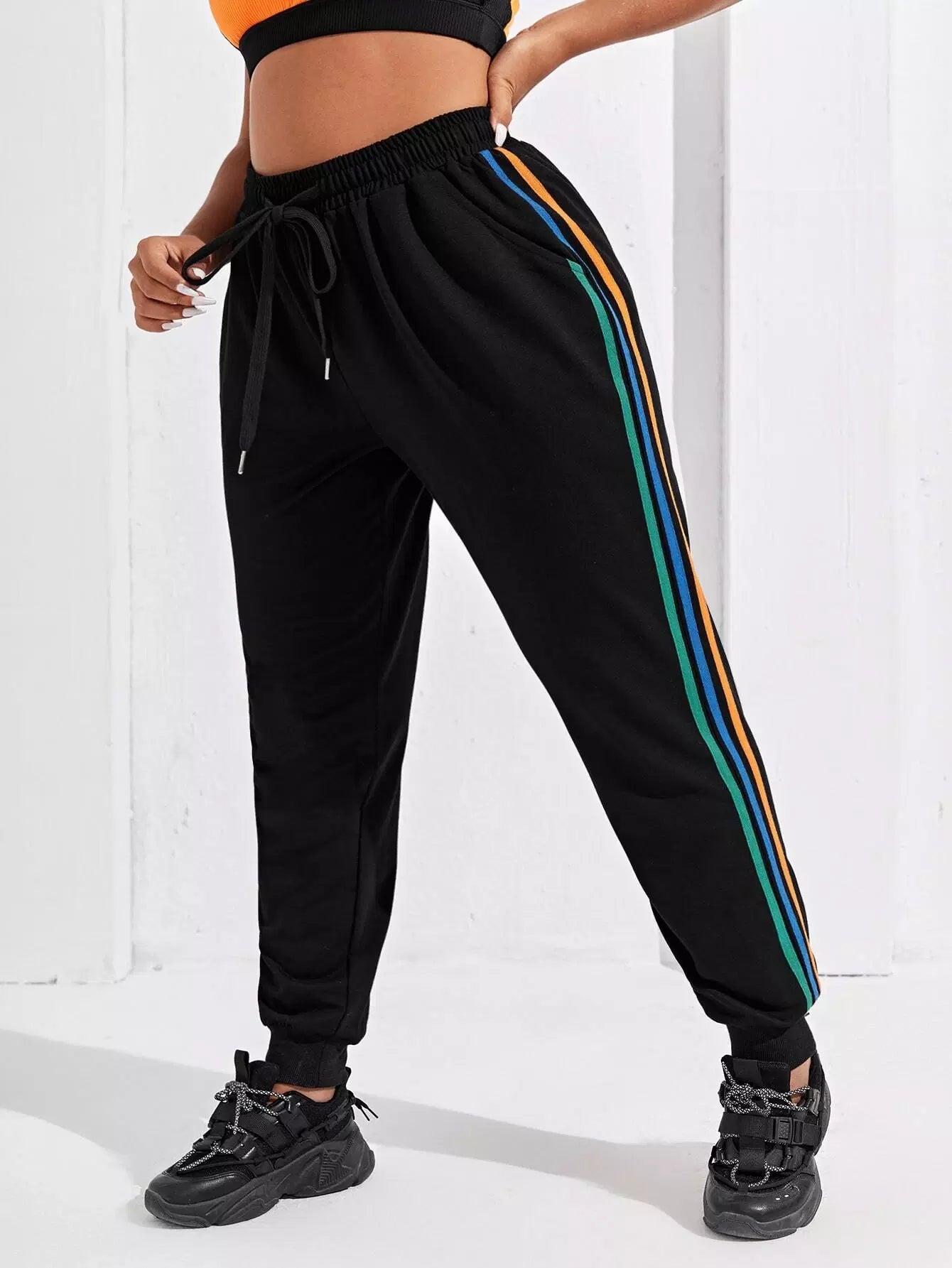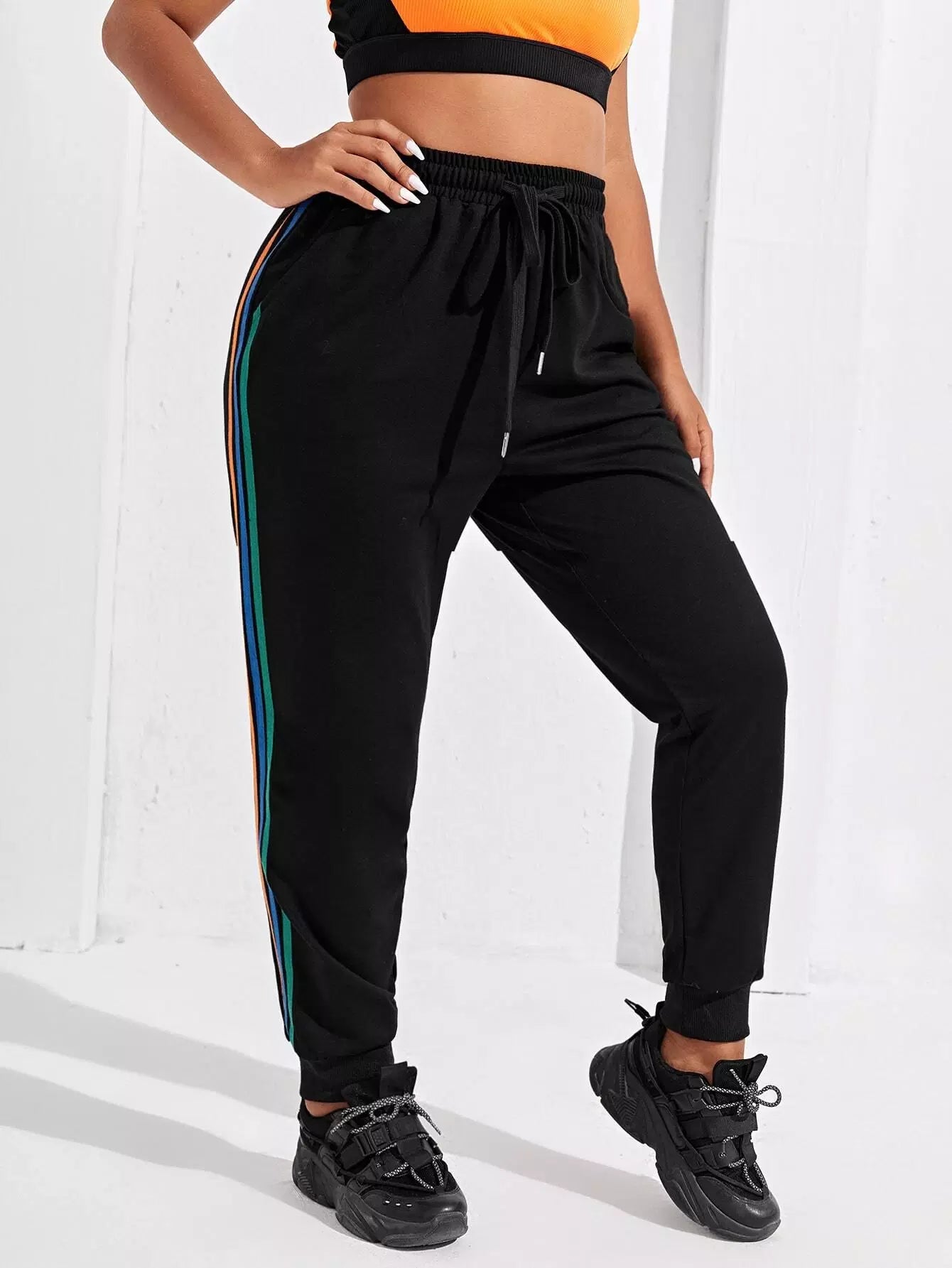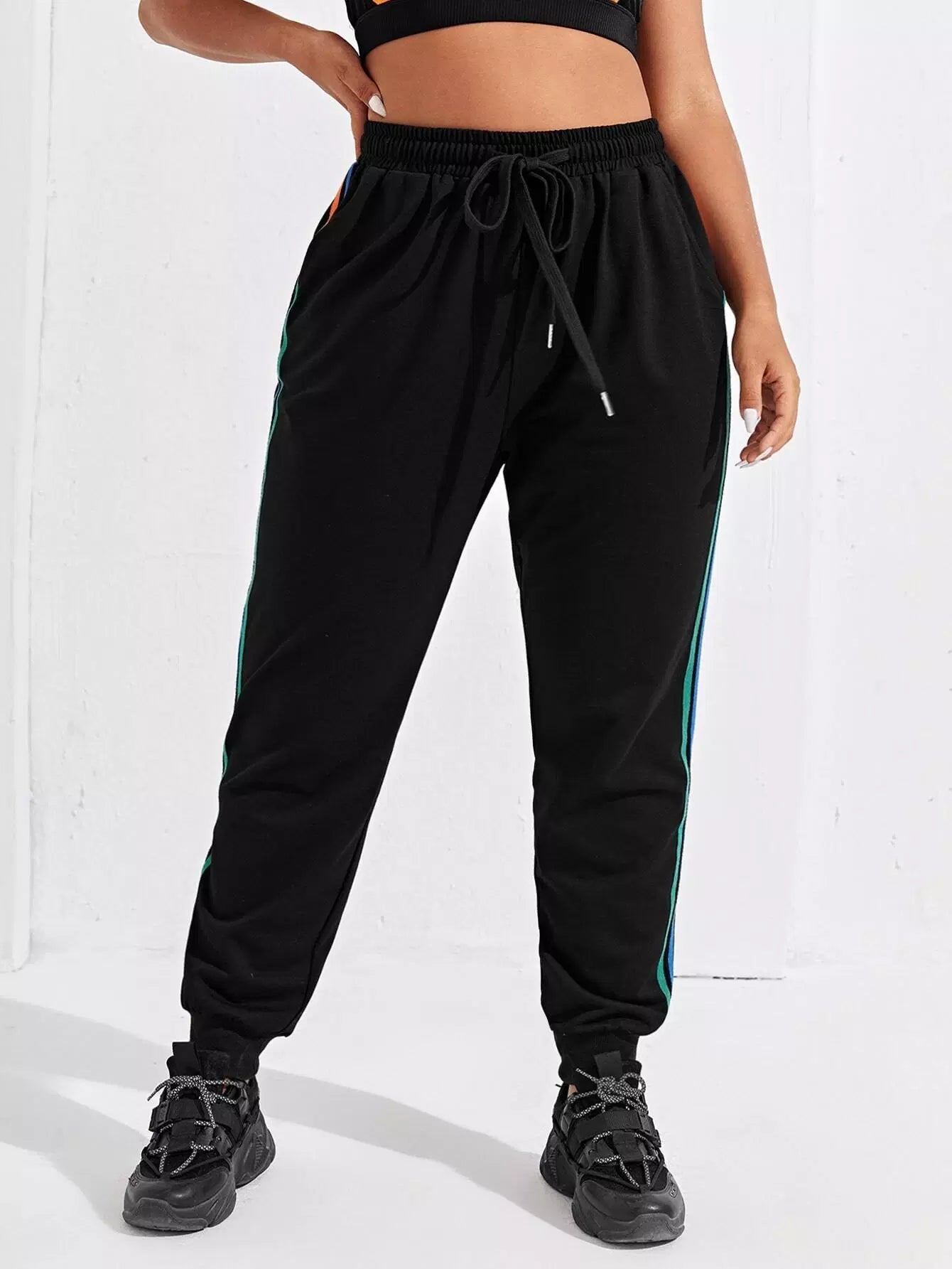 بنطلون رياضي مخطط جانبي زائد برباط رياضي مخطط