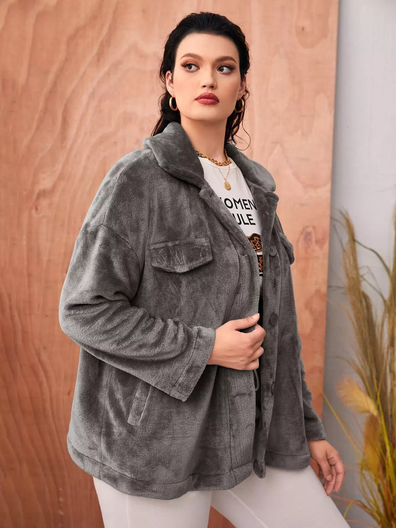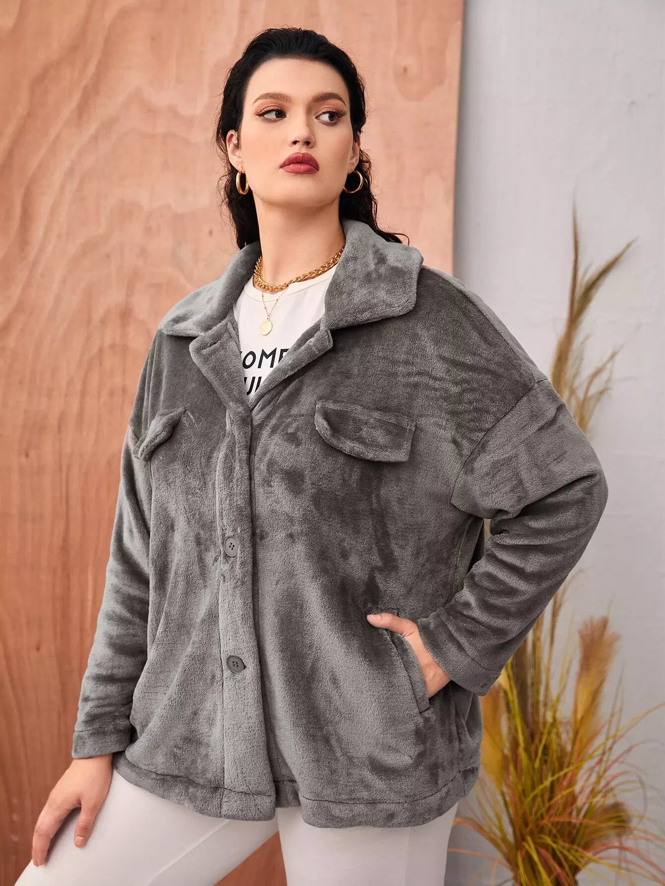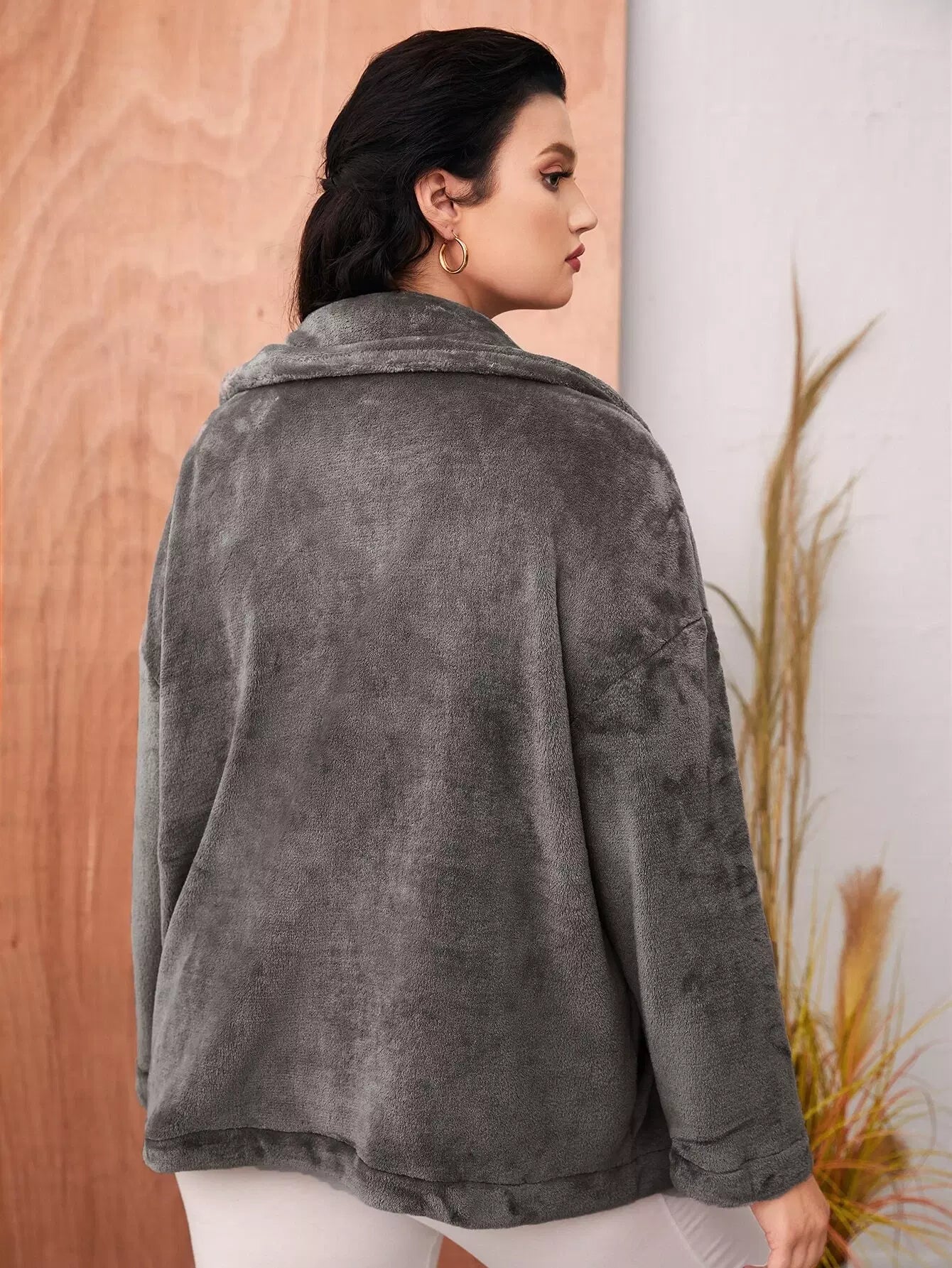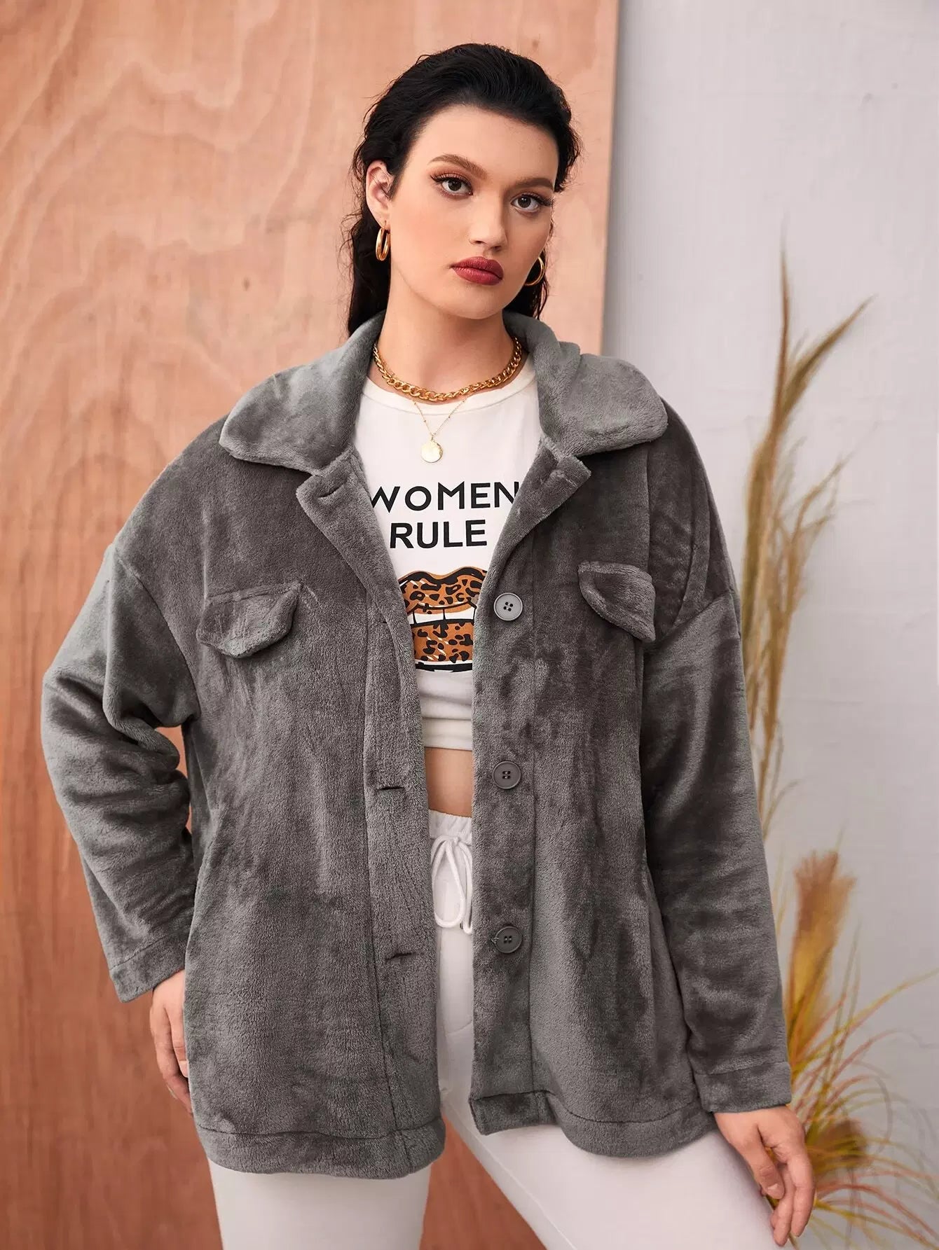 معطف تيدي منسدل الكتف بفتحة صدر واحدة زائد