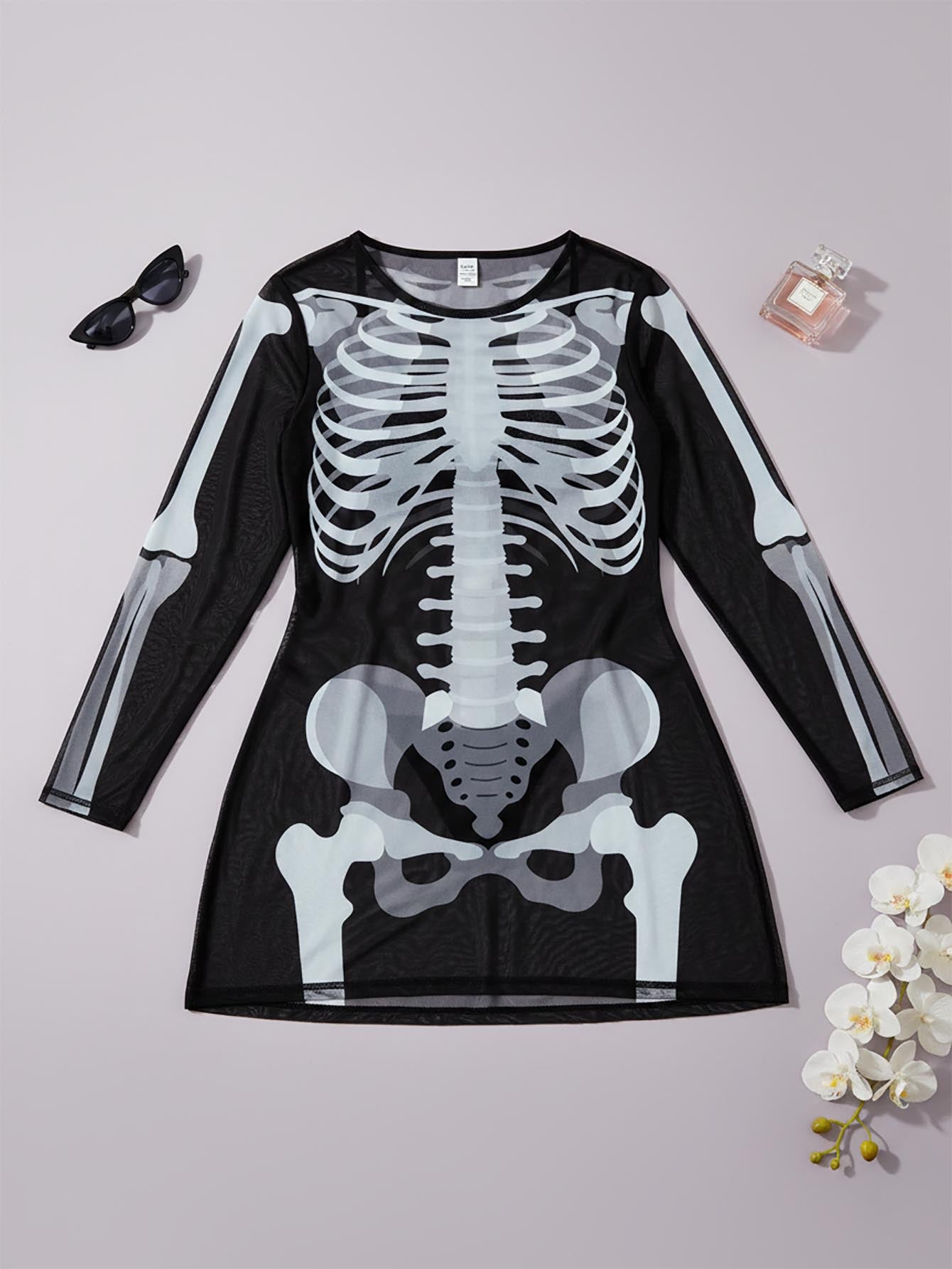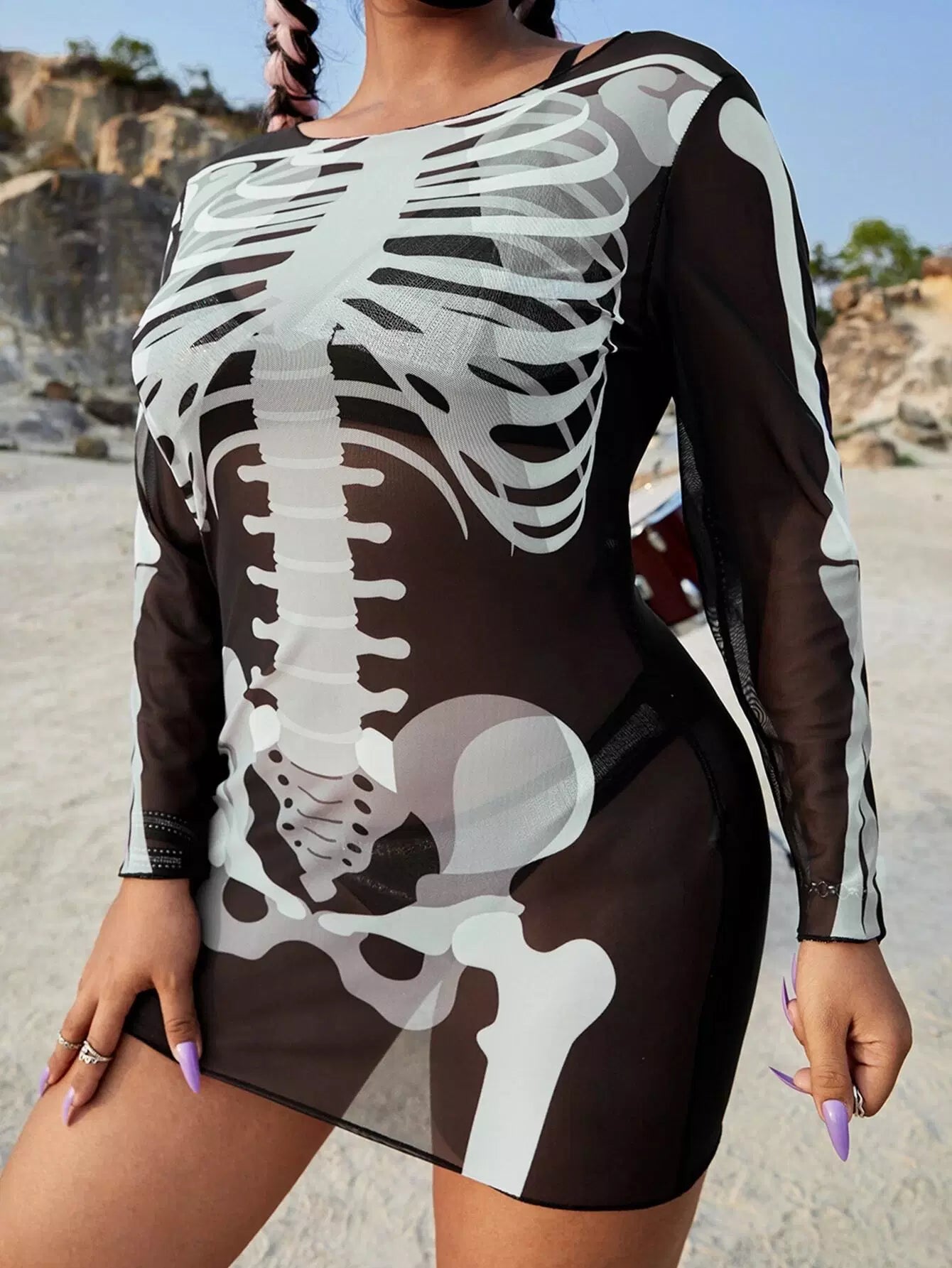 غطاء رأس شبكي بطبعة هيكل عظمي زائد