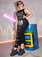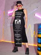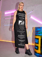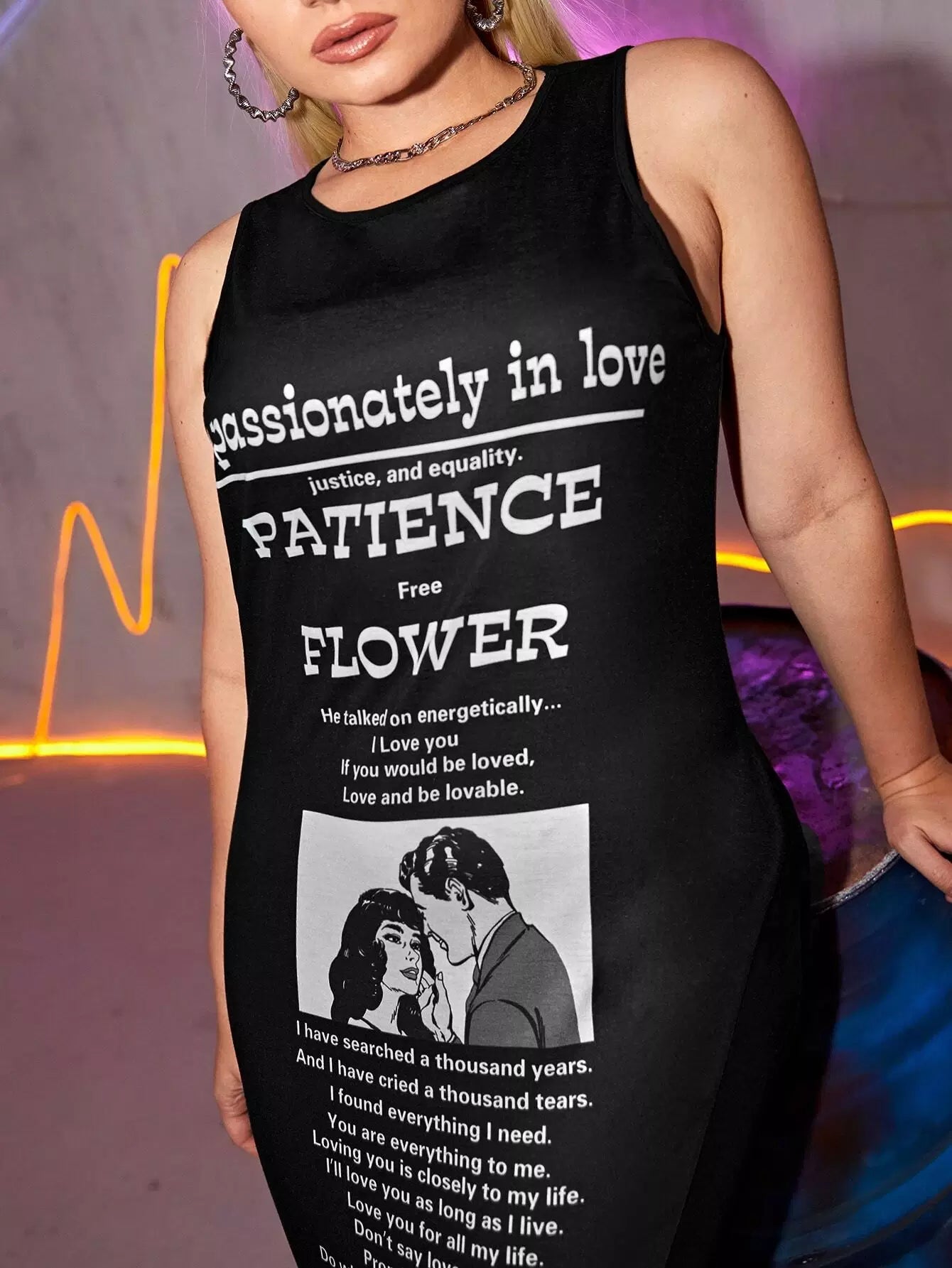 فستان بحاشية غير متناسقة ذات رسومات جرافيك زائد وشعار زائد