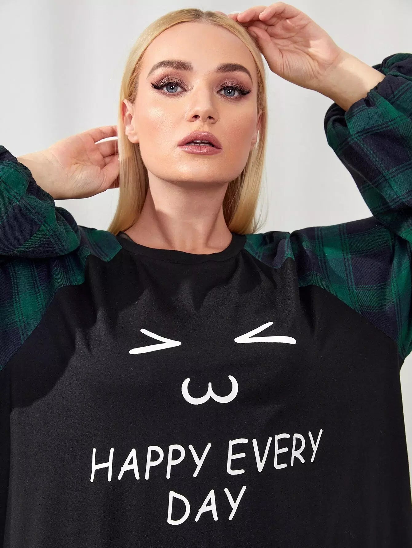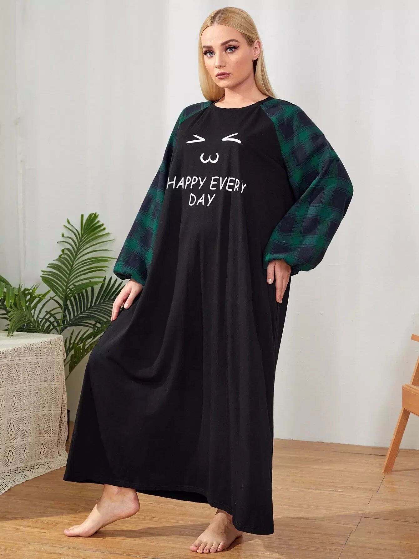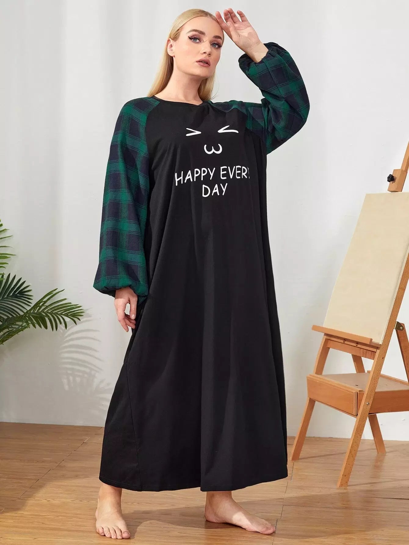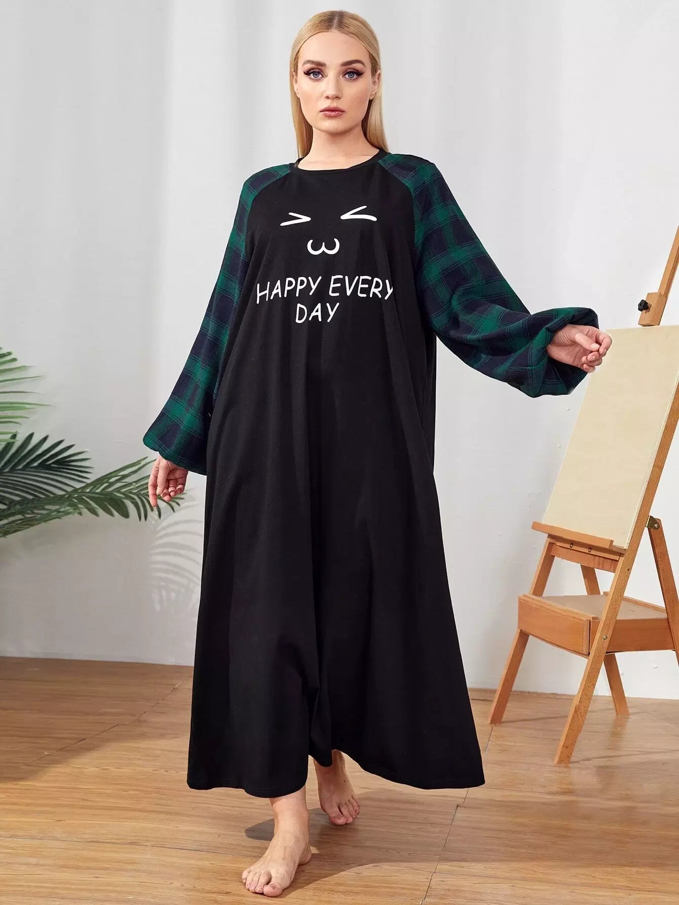 قميص نوم بلس بشعار ورسومات كارتونية جرافيك ترتان