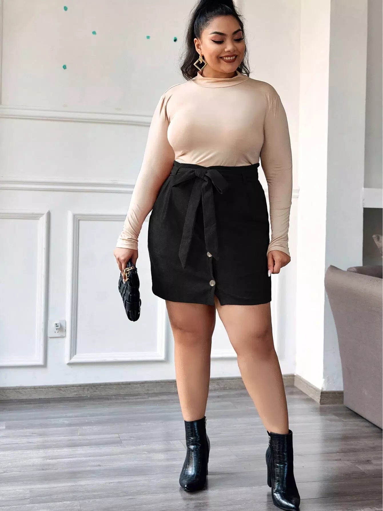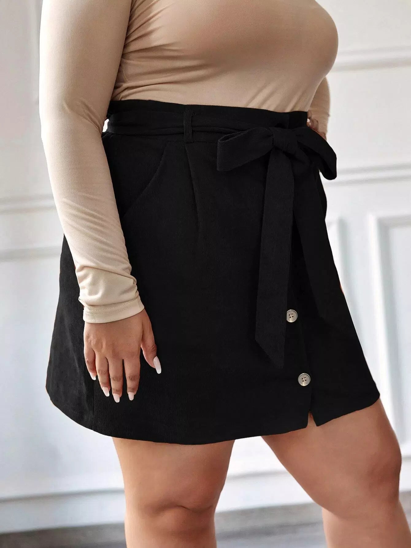 نحيف - مقاس كبير زر مربوط الصلبة من خلال تنورة سروال قصير
