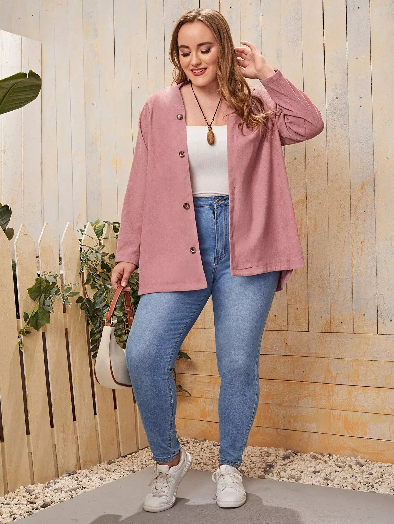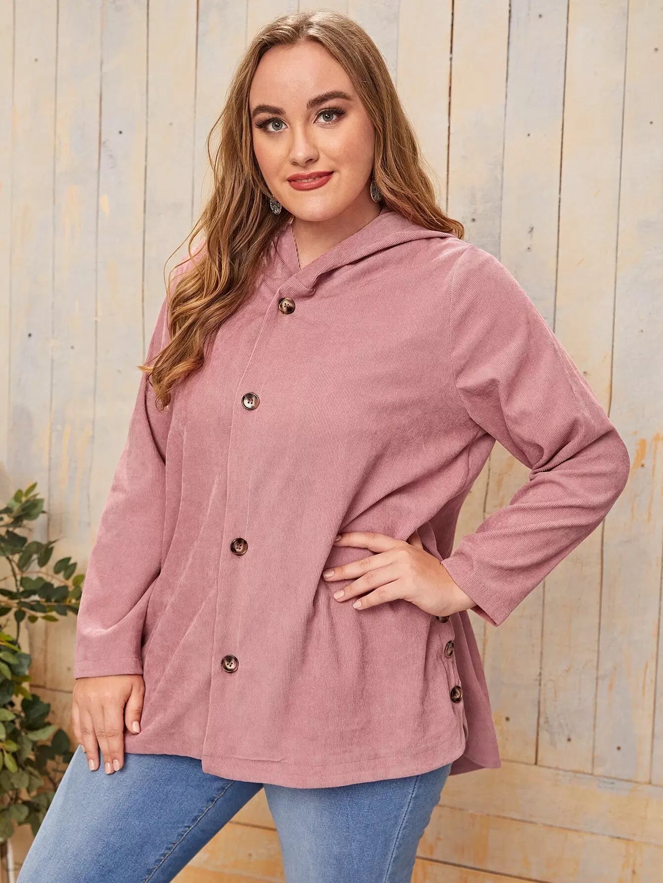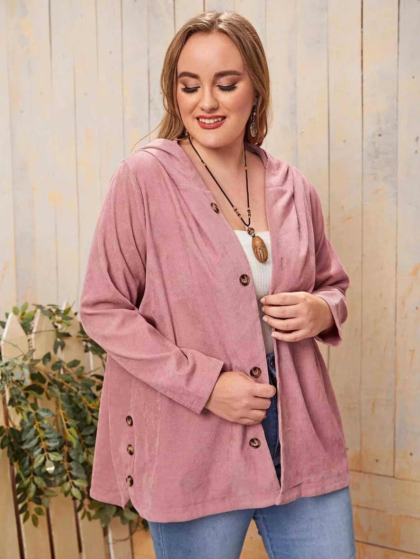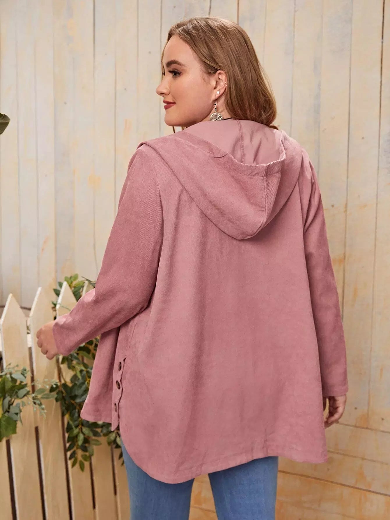 معطف بقبعة بغطاء للرأس بأزرار أمامية سادة بلس