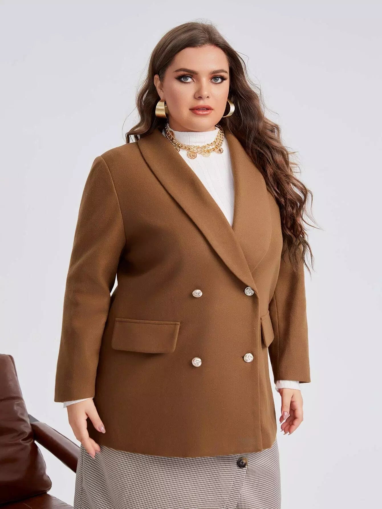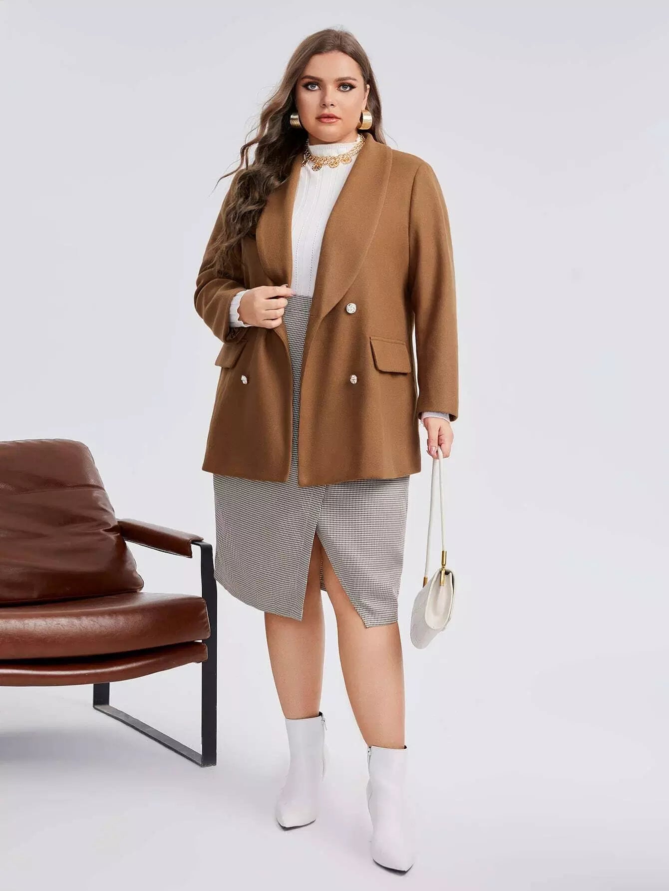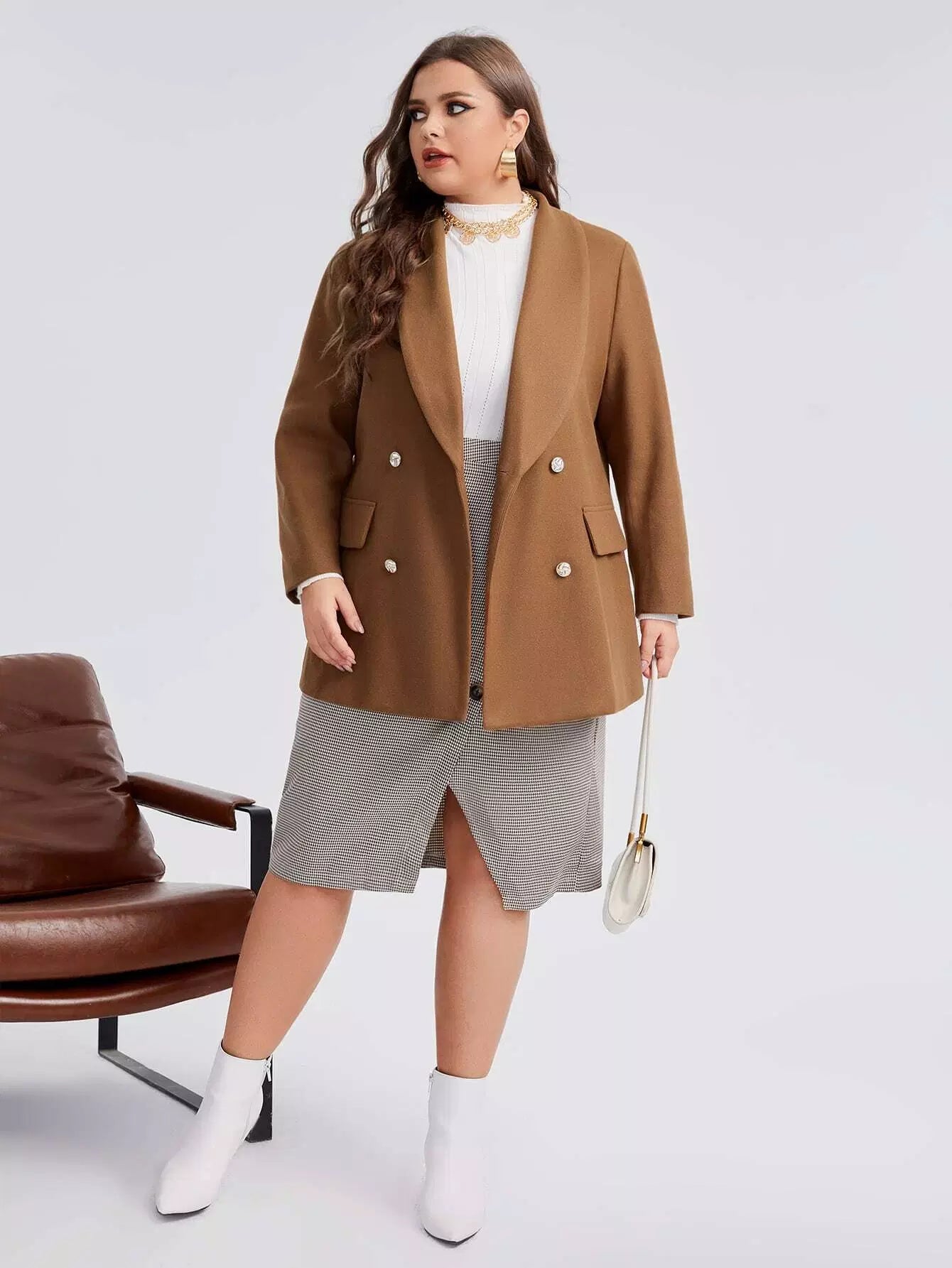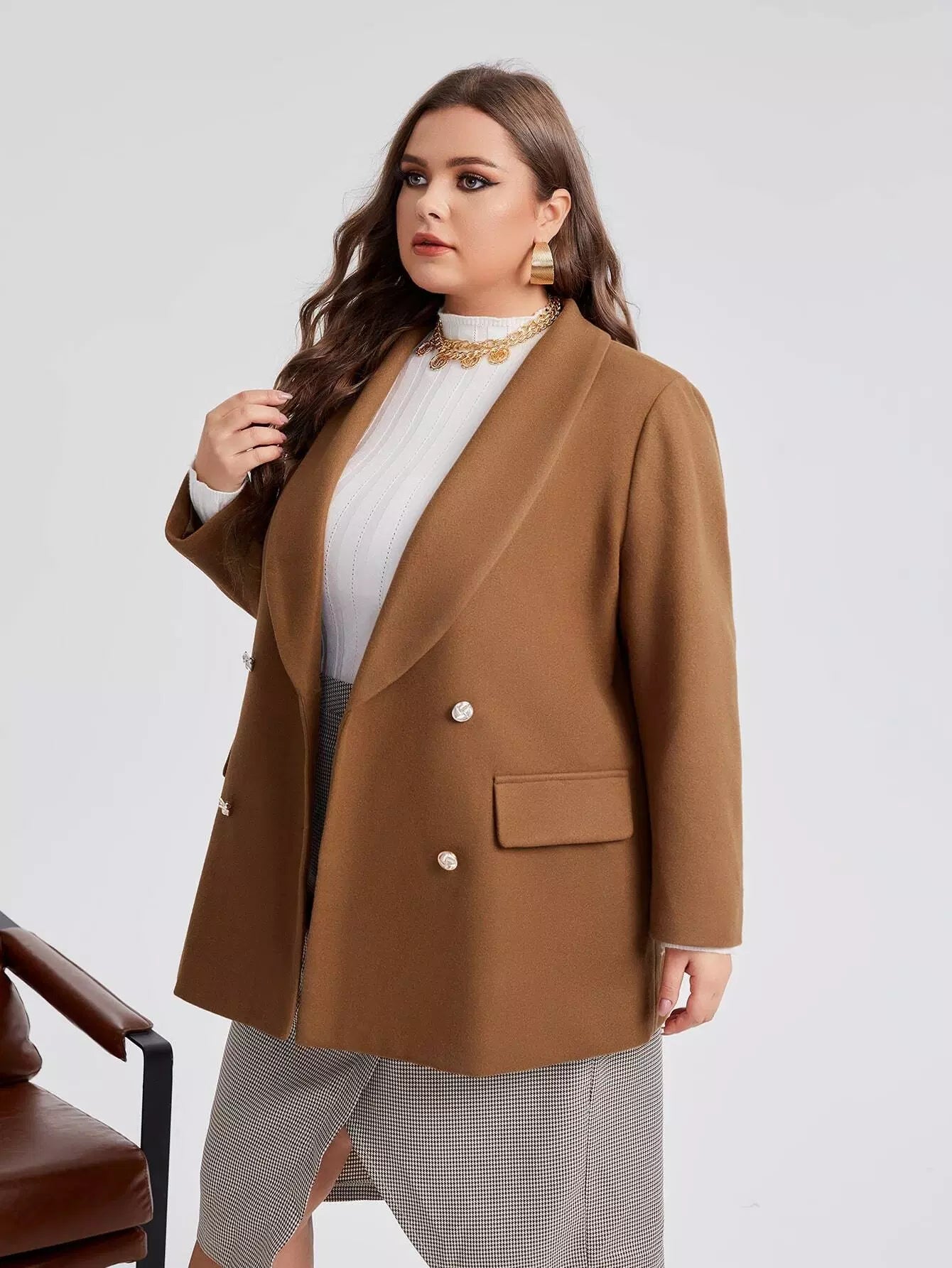 معطف بياقة شال بياقة أمامية بأزرار سادة بلس