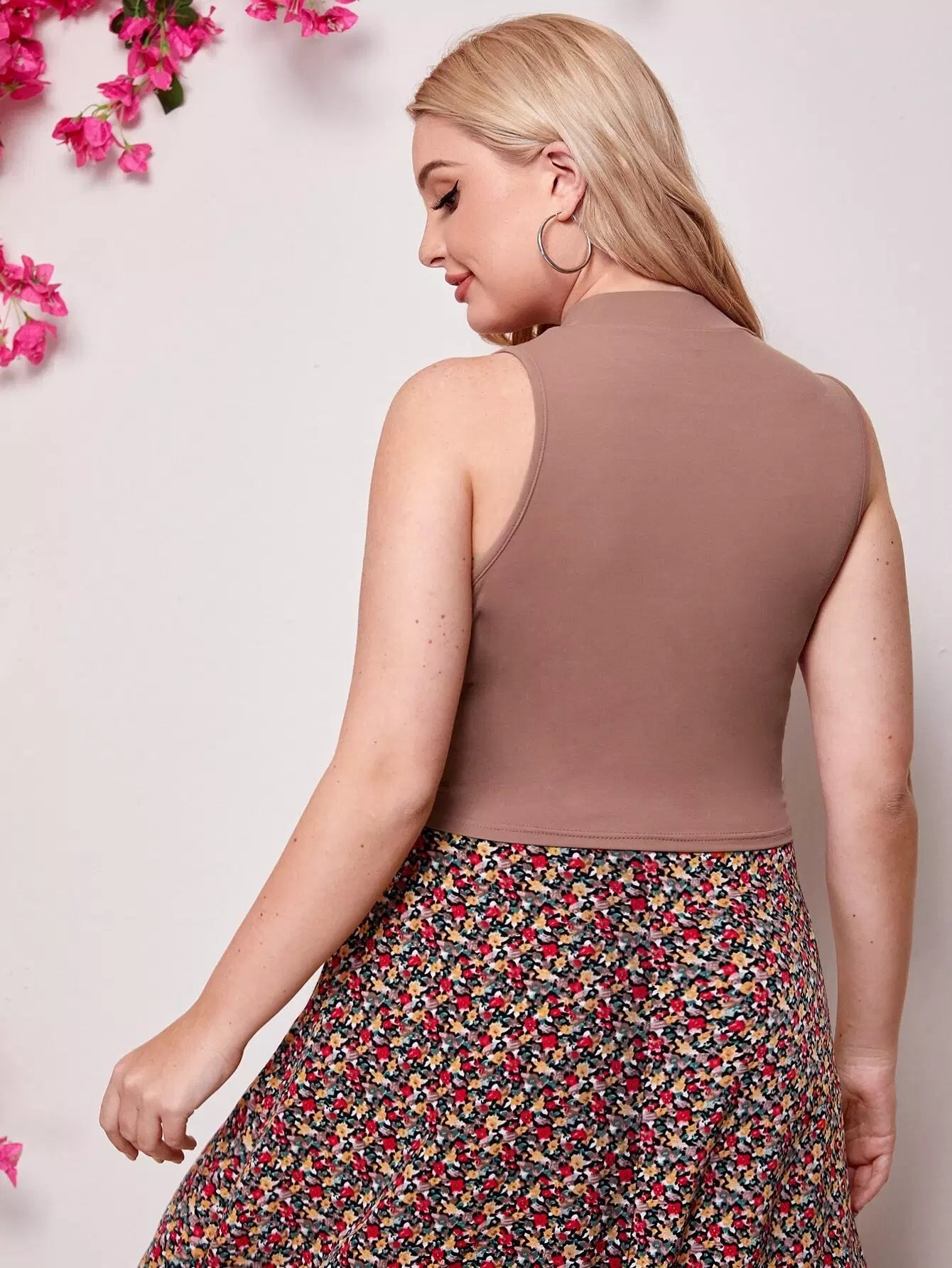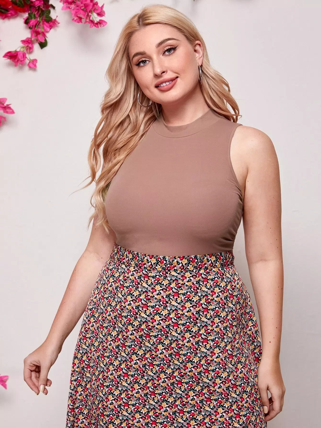 بلوزة بدون أكمام قصيرة بلاس سادة