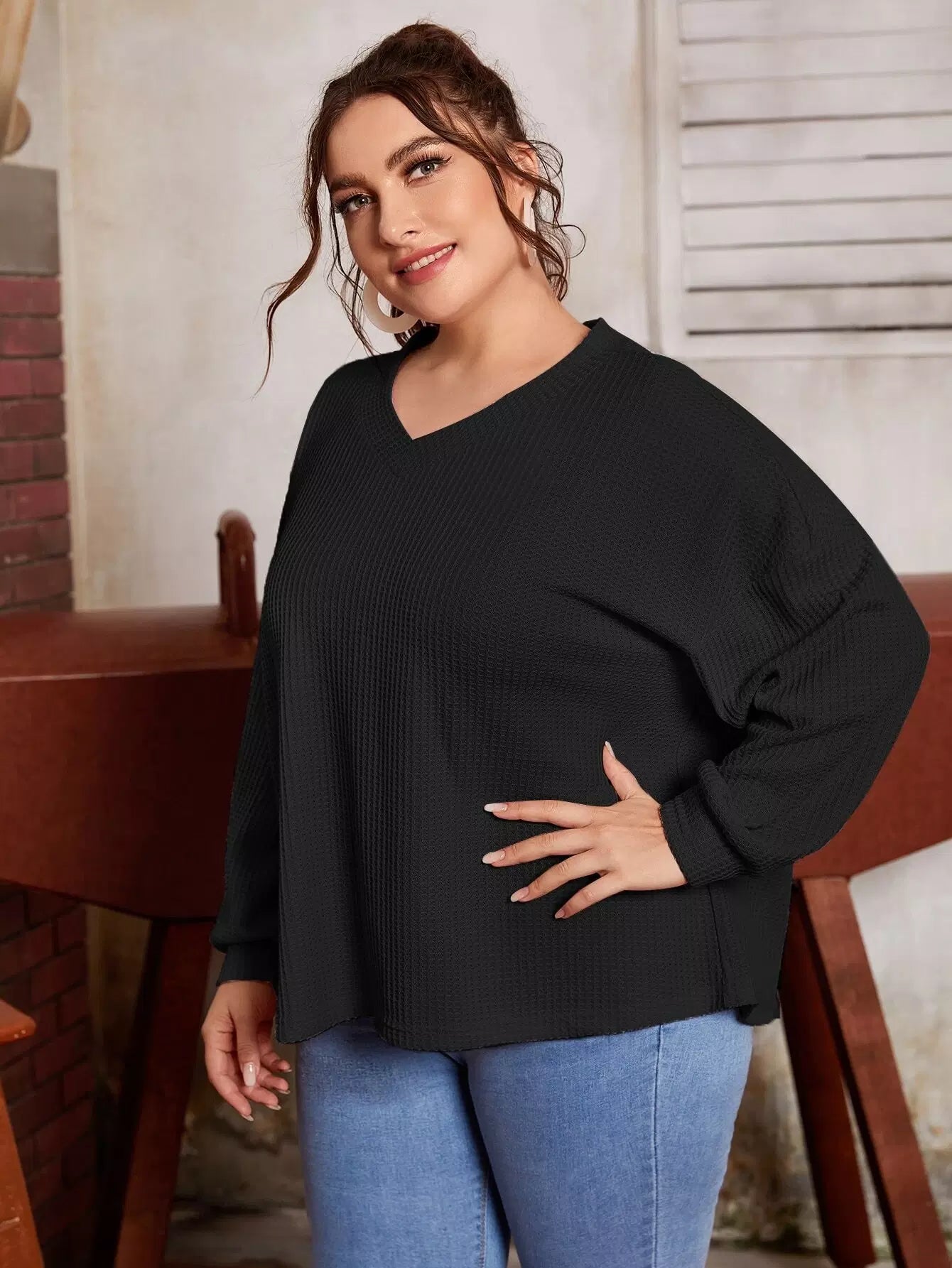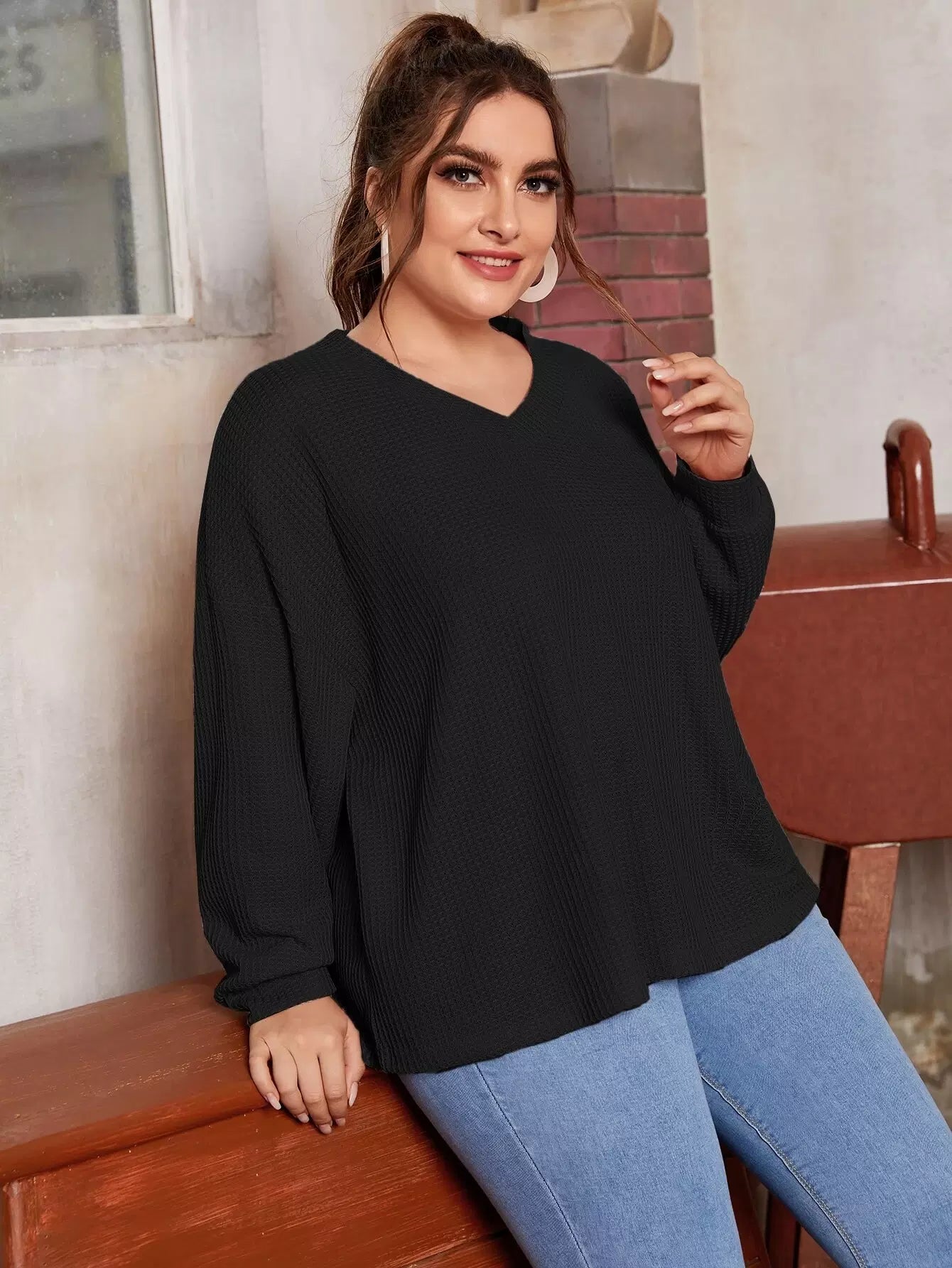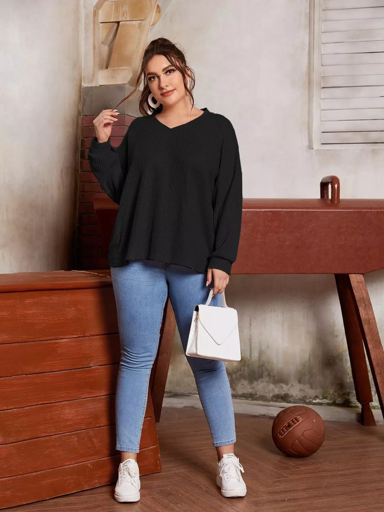 تي شيرت سادة منسدل الأكتاف متماسك منسدل بلاس