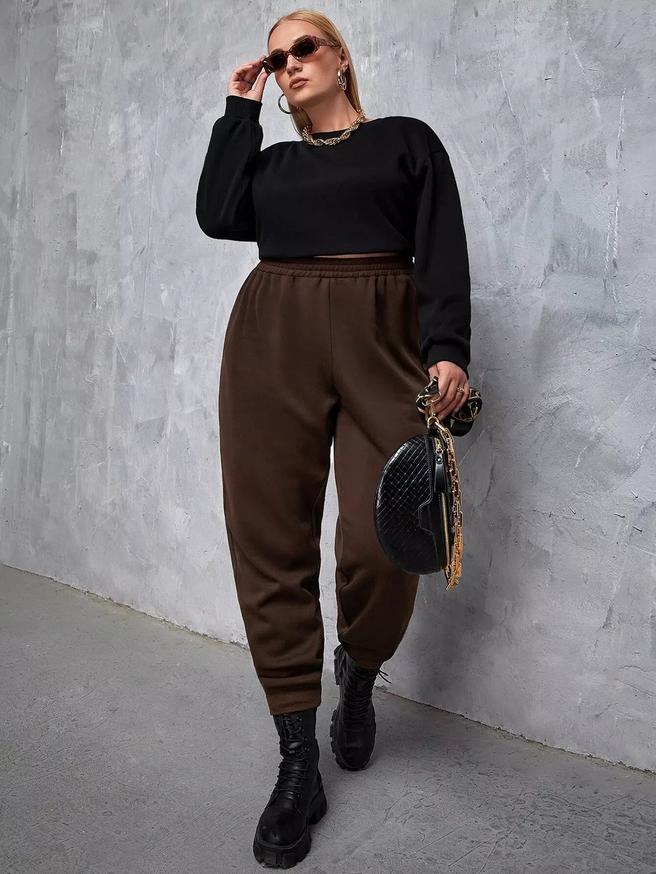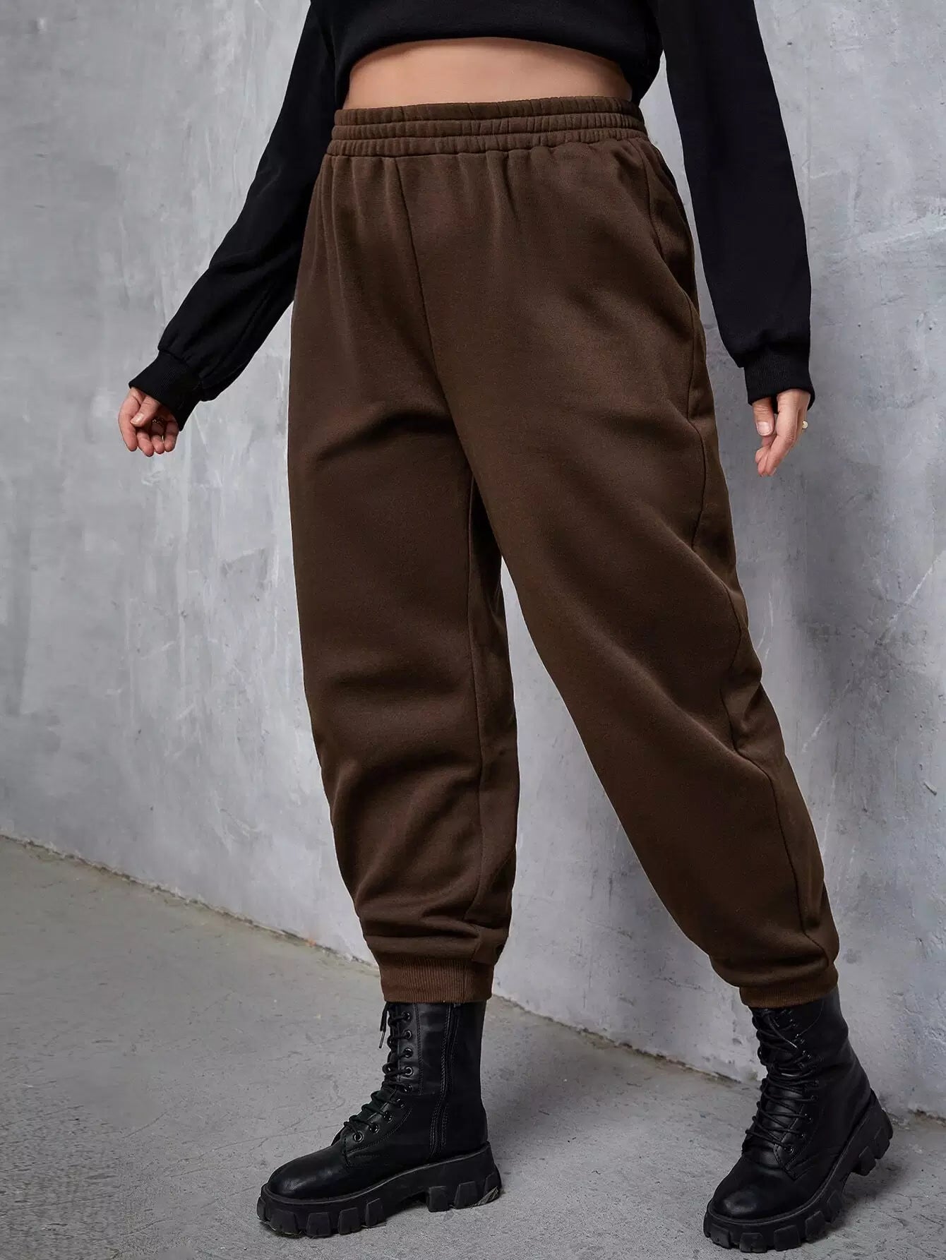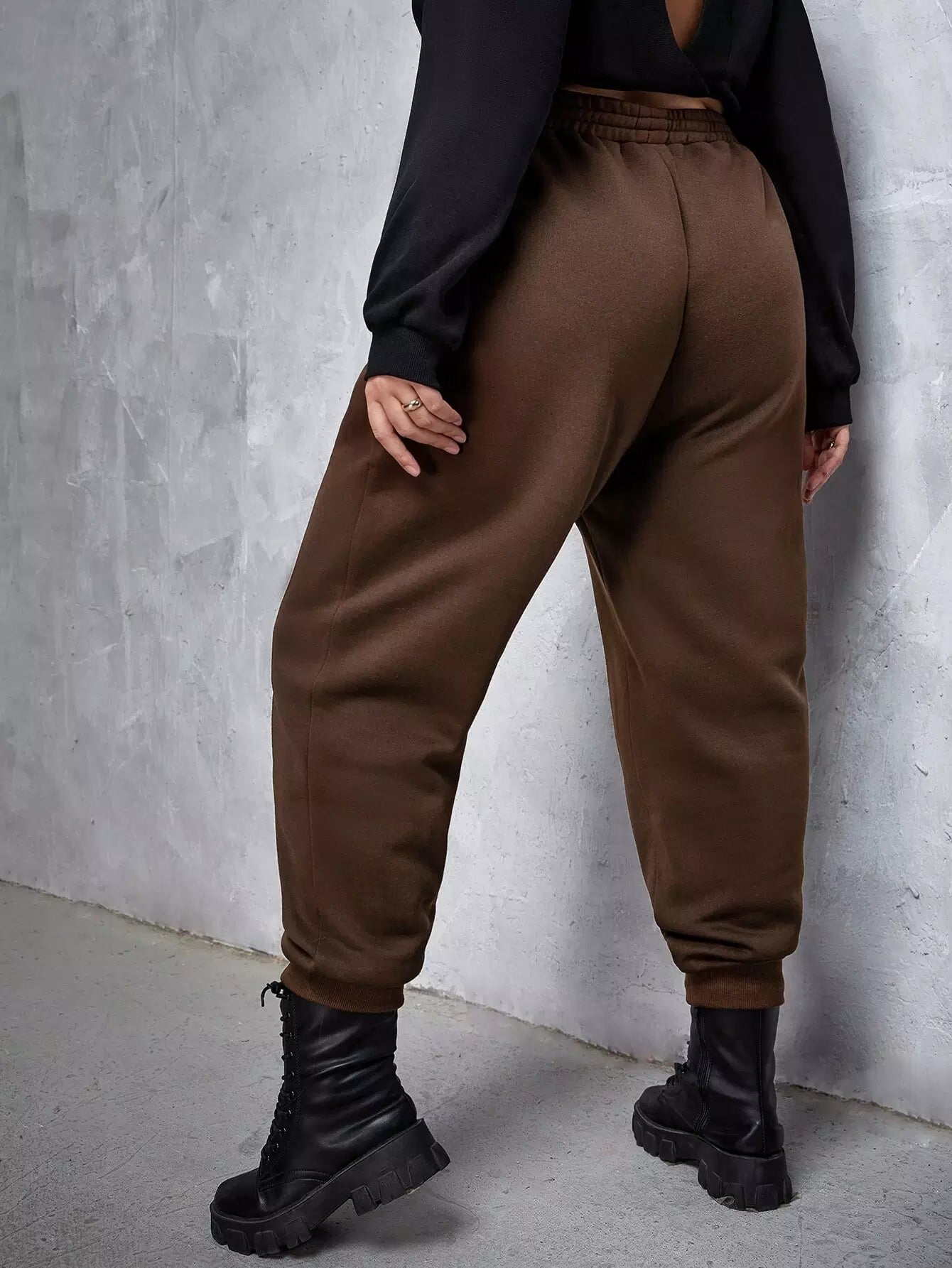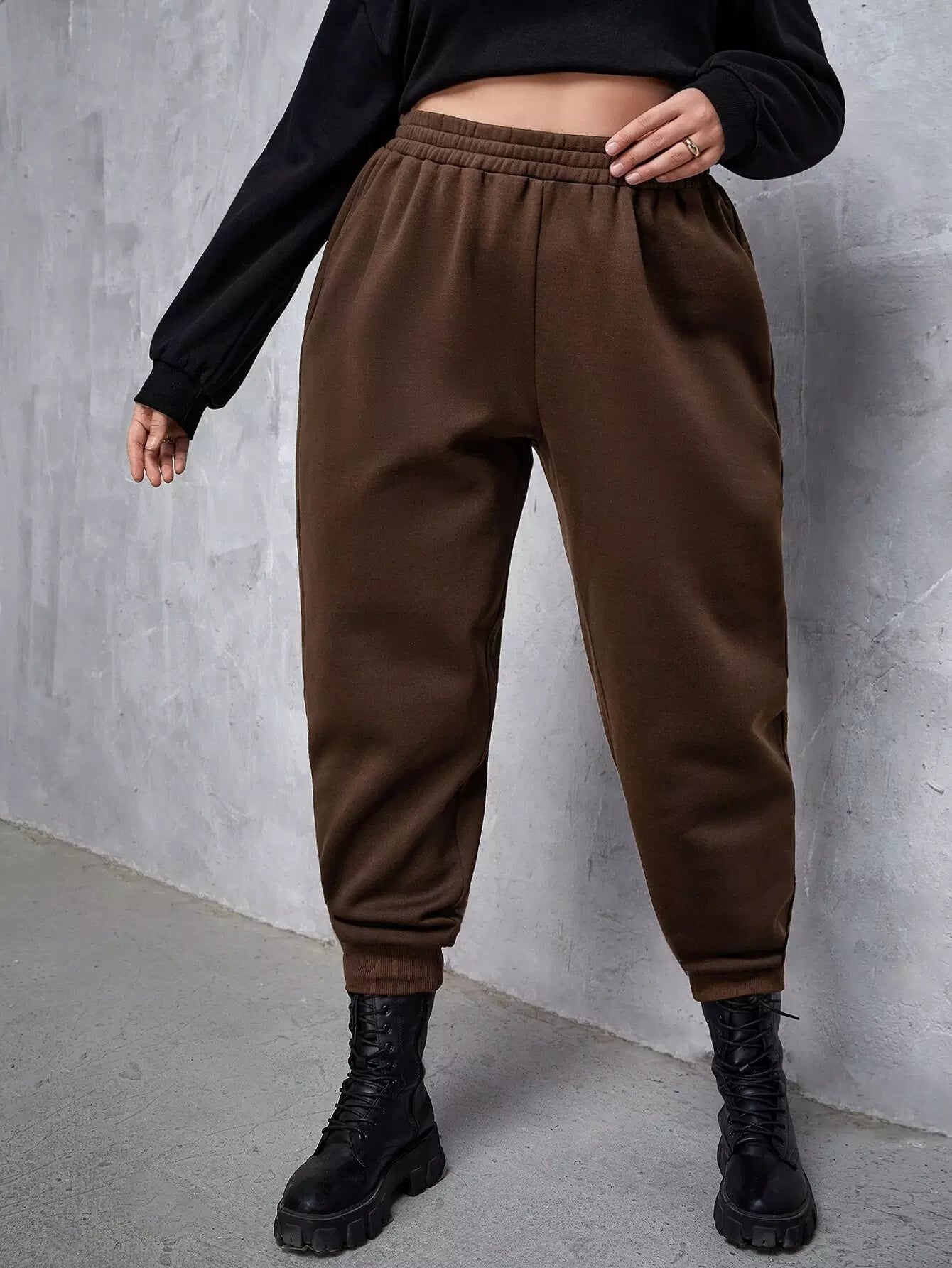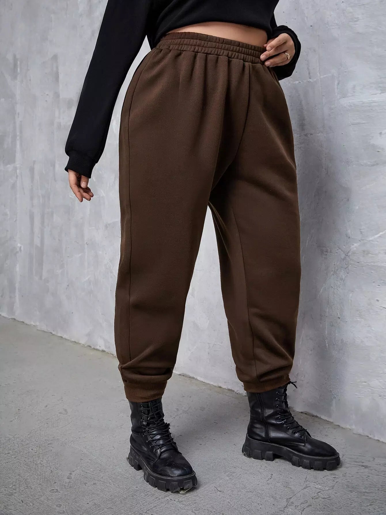 بنطلون رياضي بخصر مطاطي سادة بلاس بلس