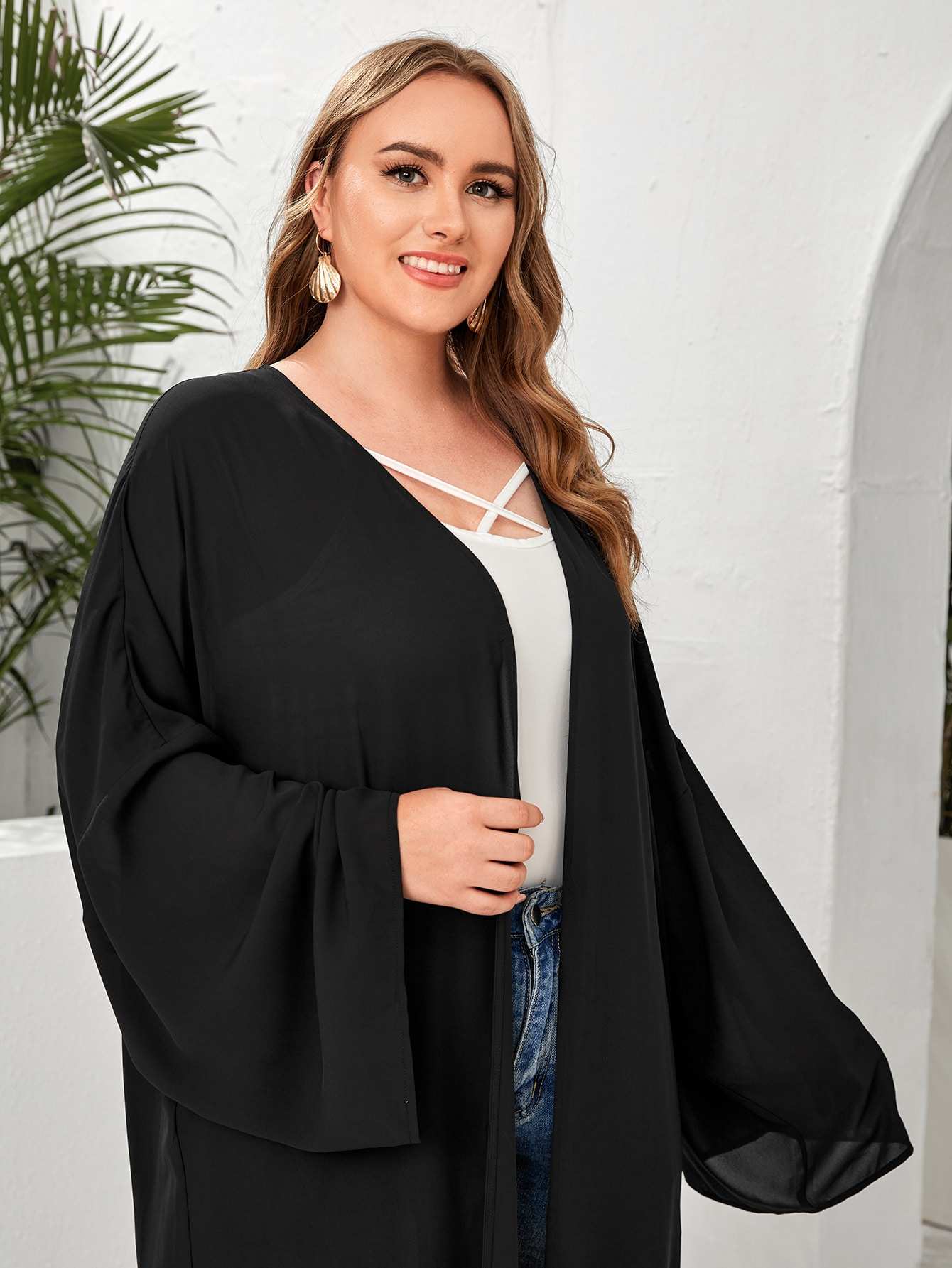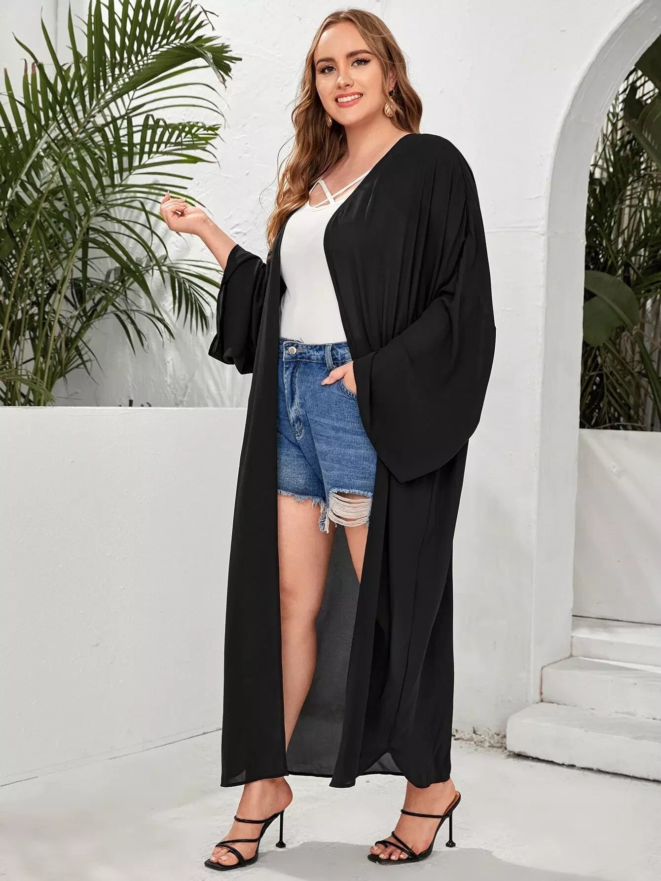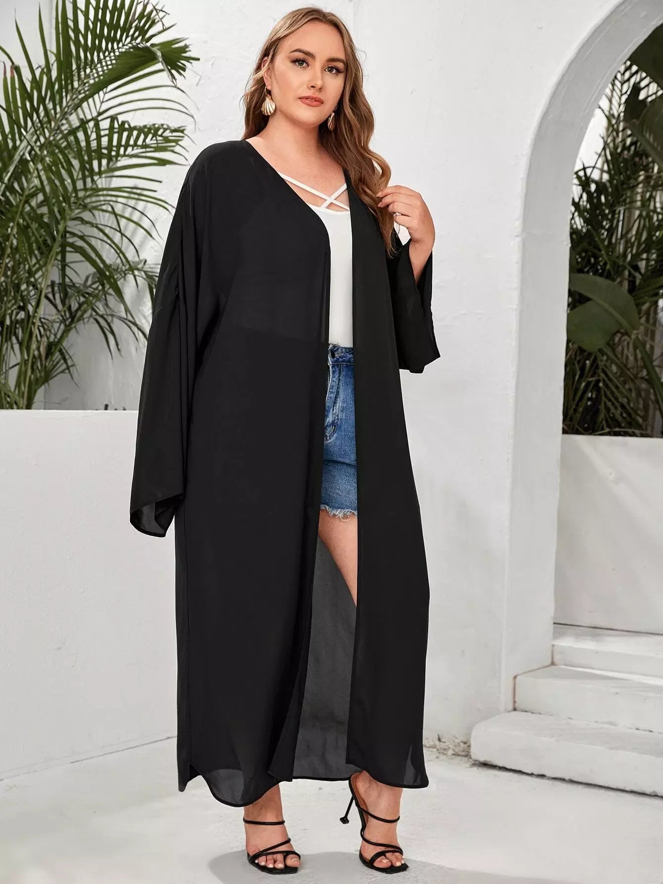 كيمونو بلس سادة مفتوح من الأمام