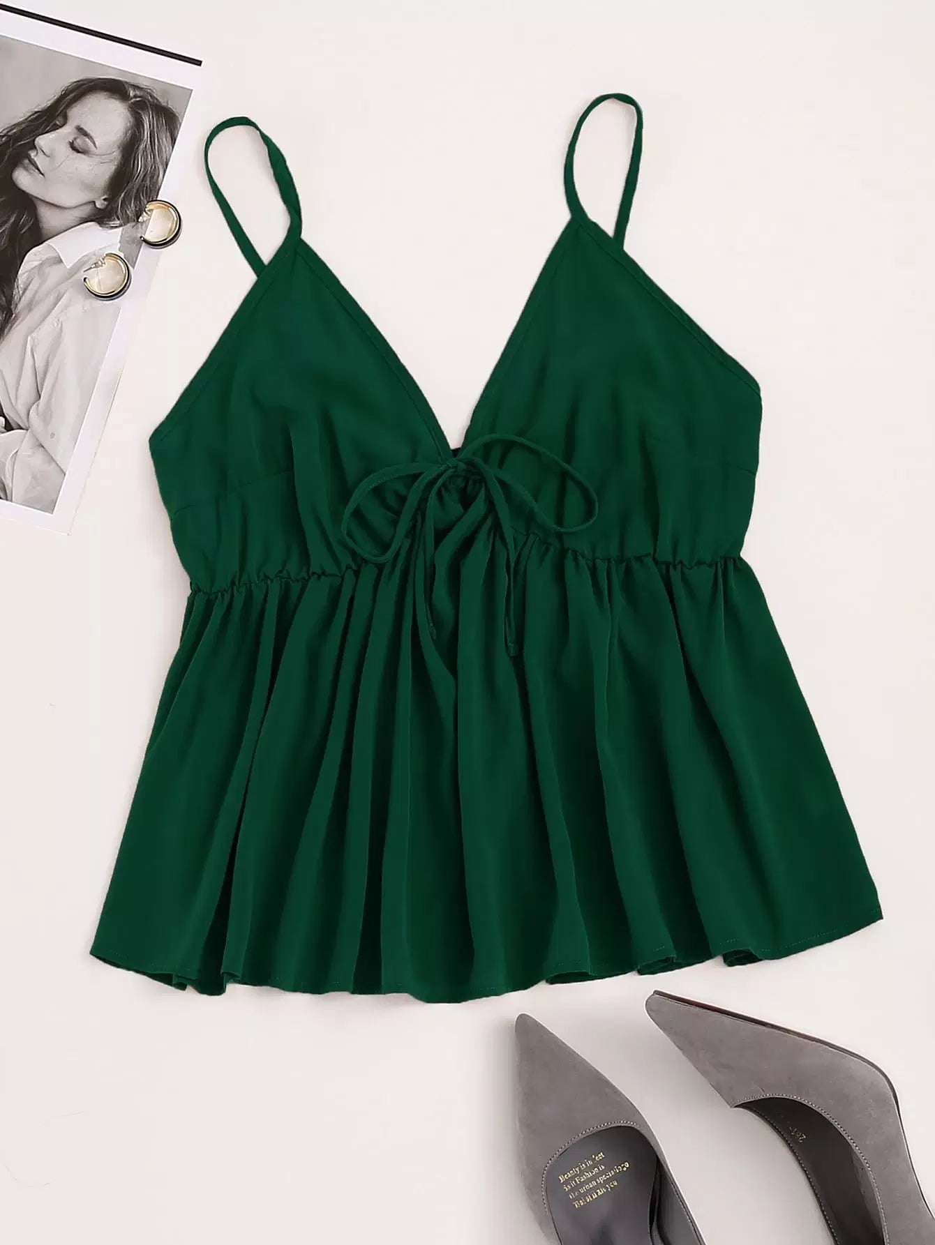 بلوزة بدون أكمام بكشكش بعقدة سادة زائد