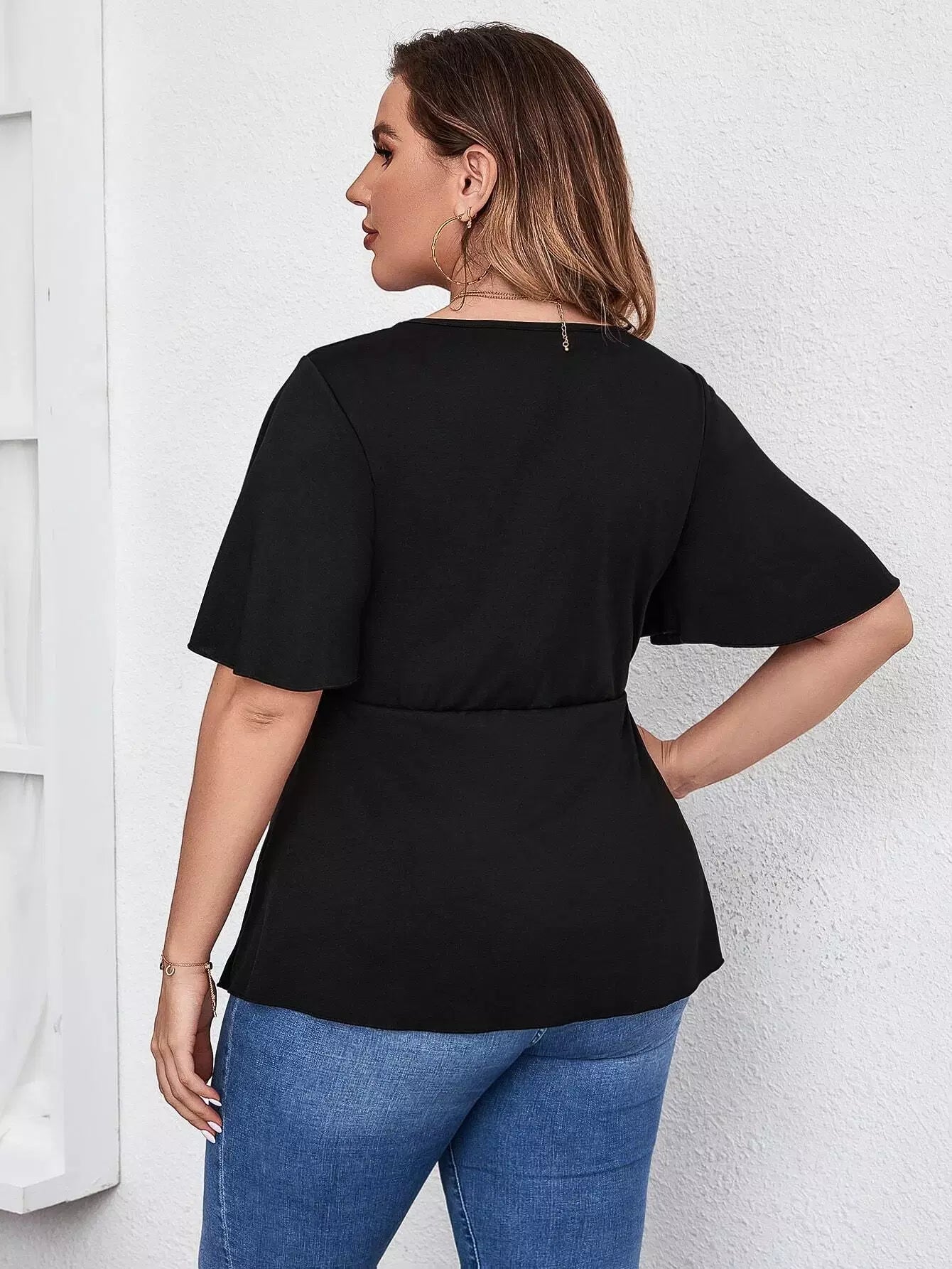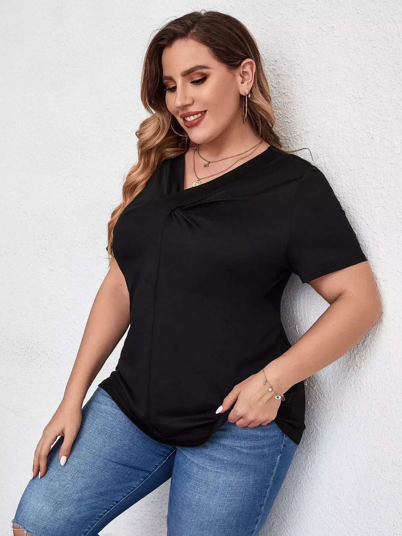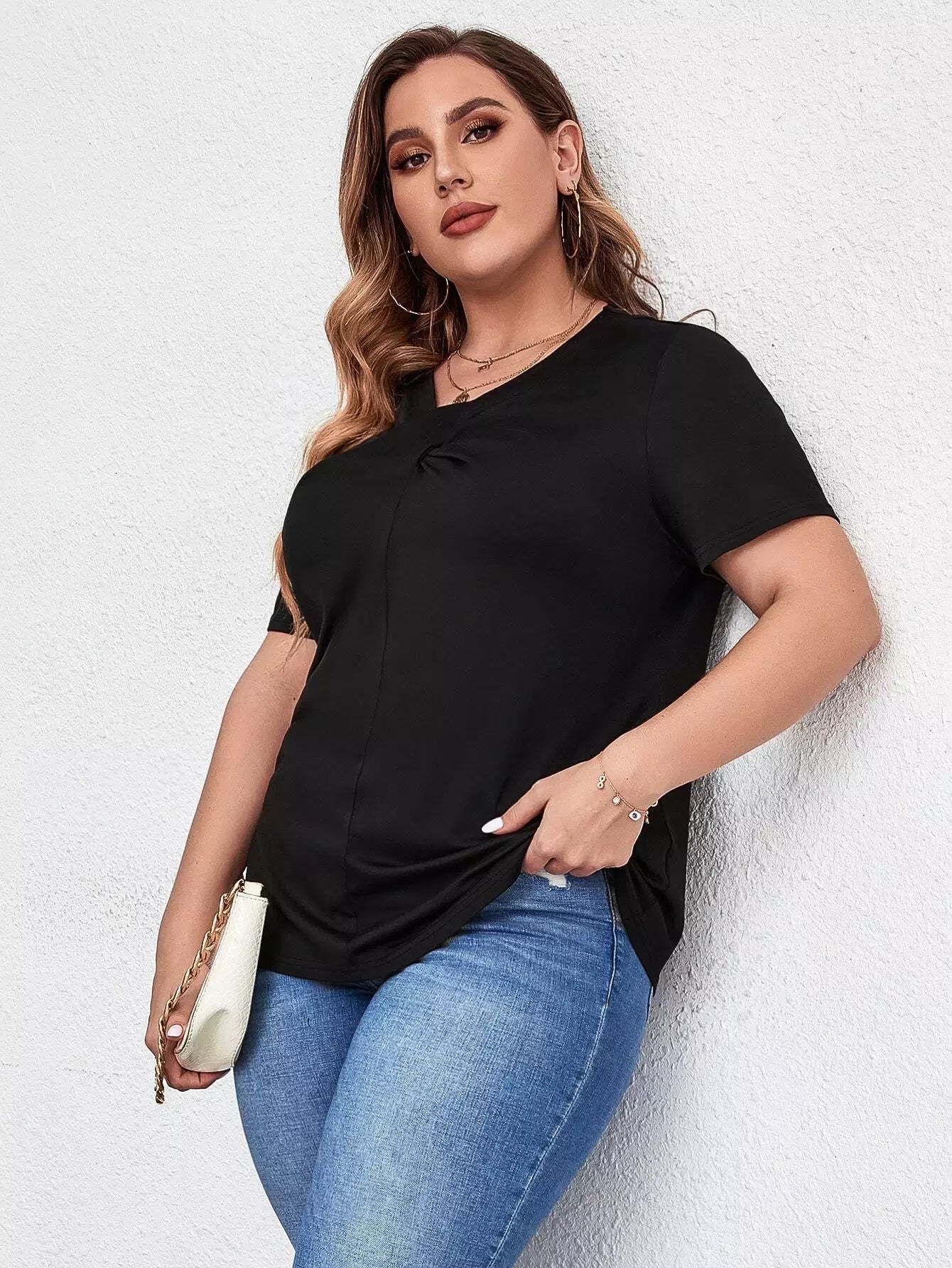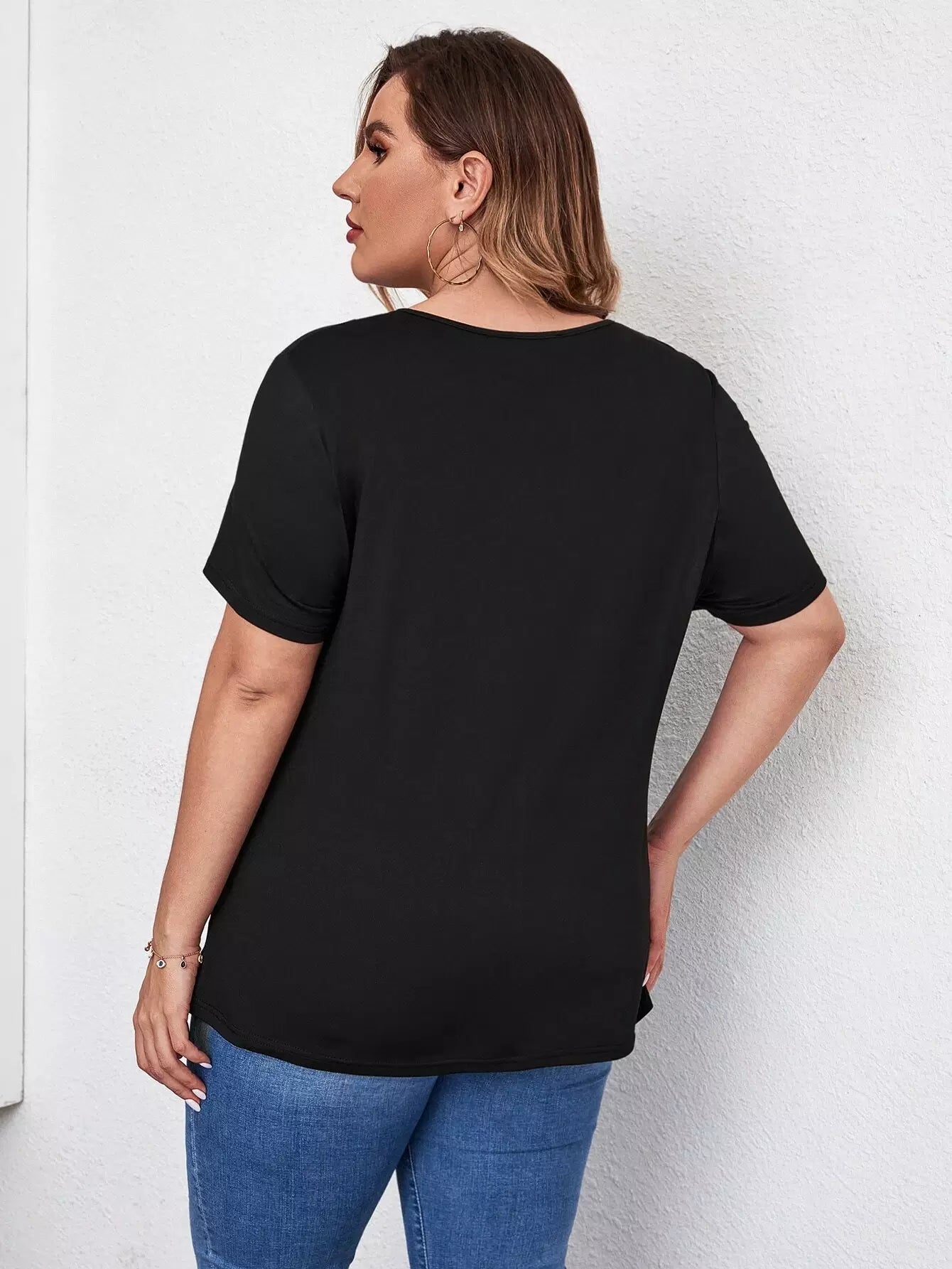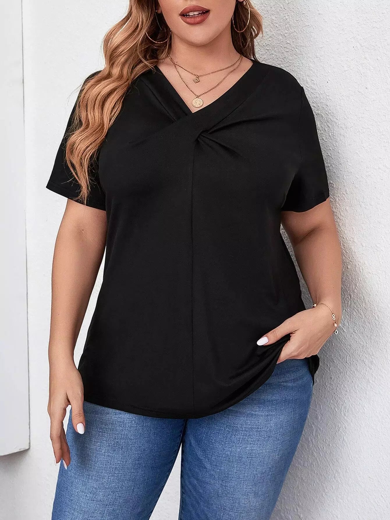 تي شيرت برقبة على شكل V سادة بلاس