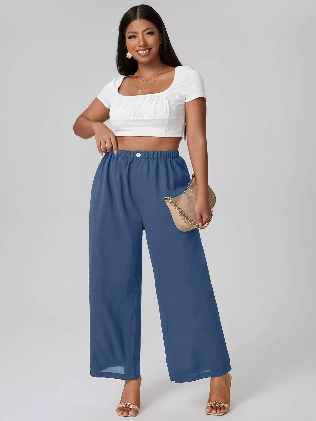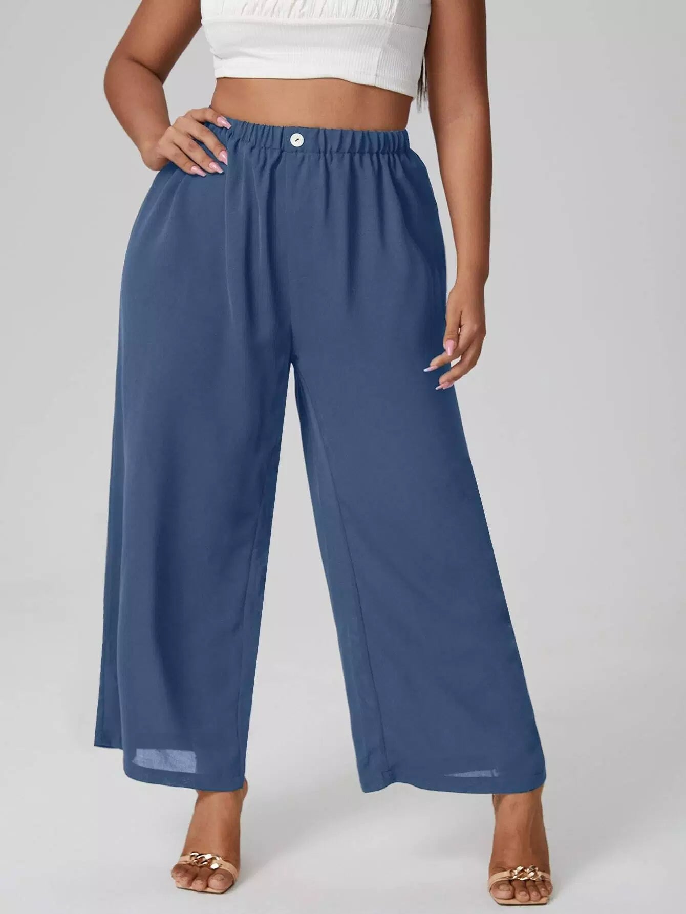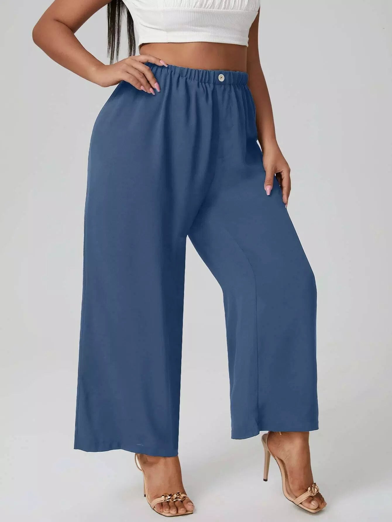 بنطلون واسع الساقين واسع السادة بلس