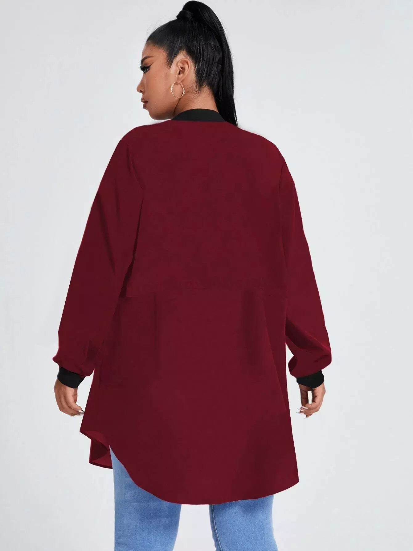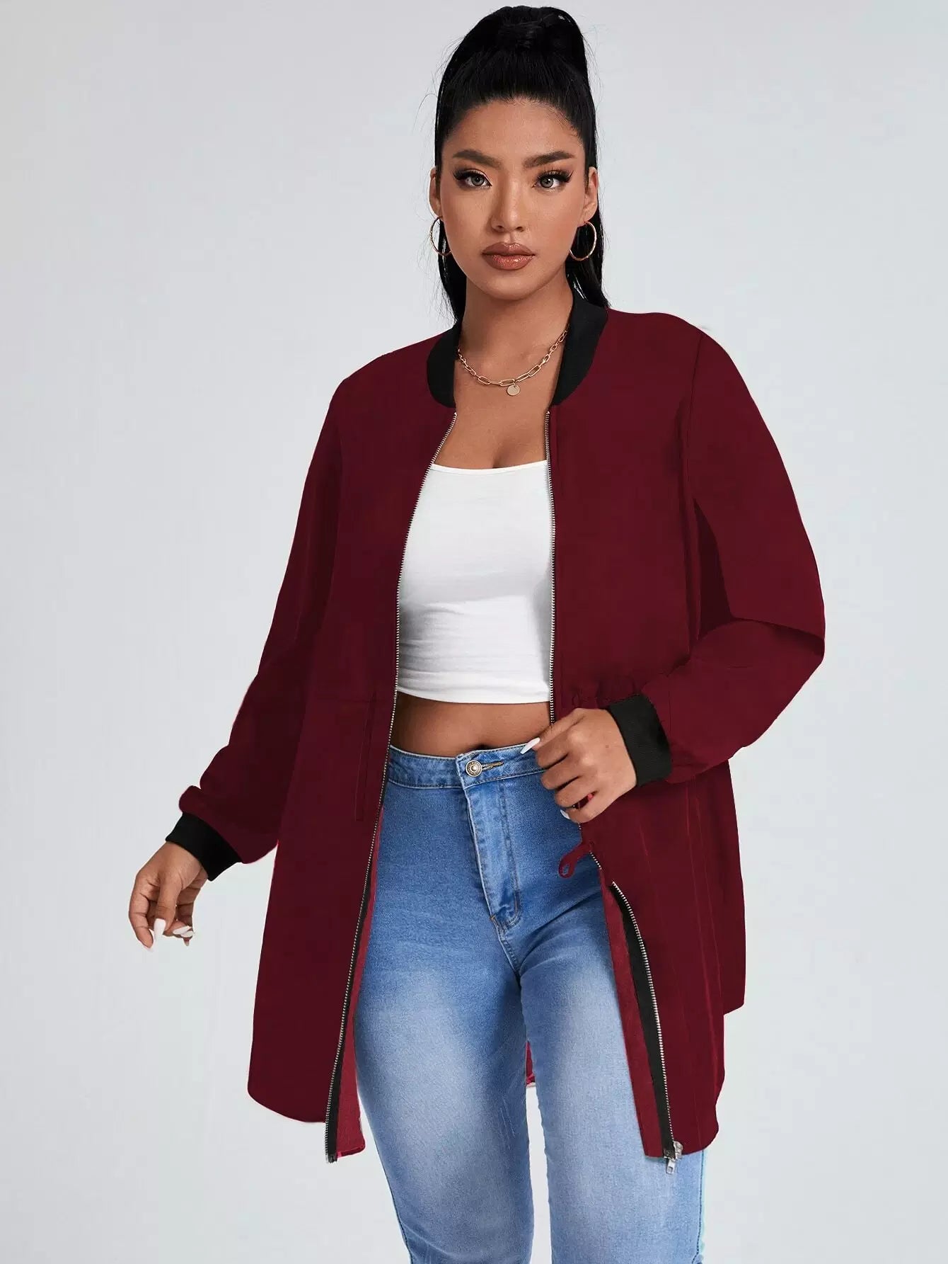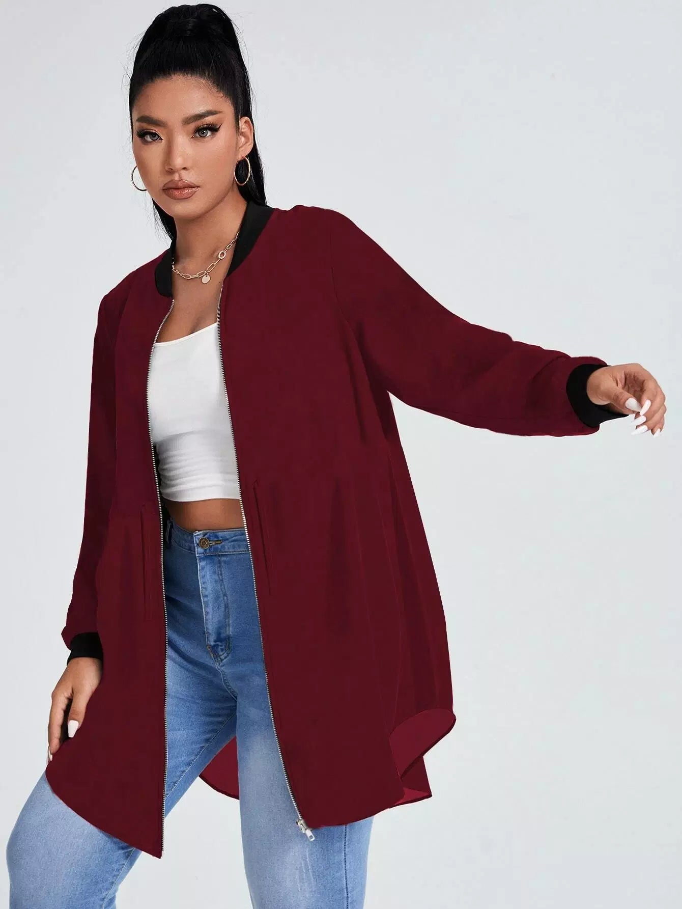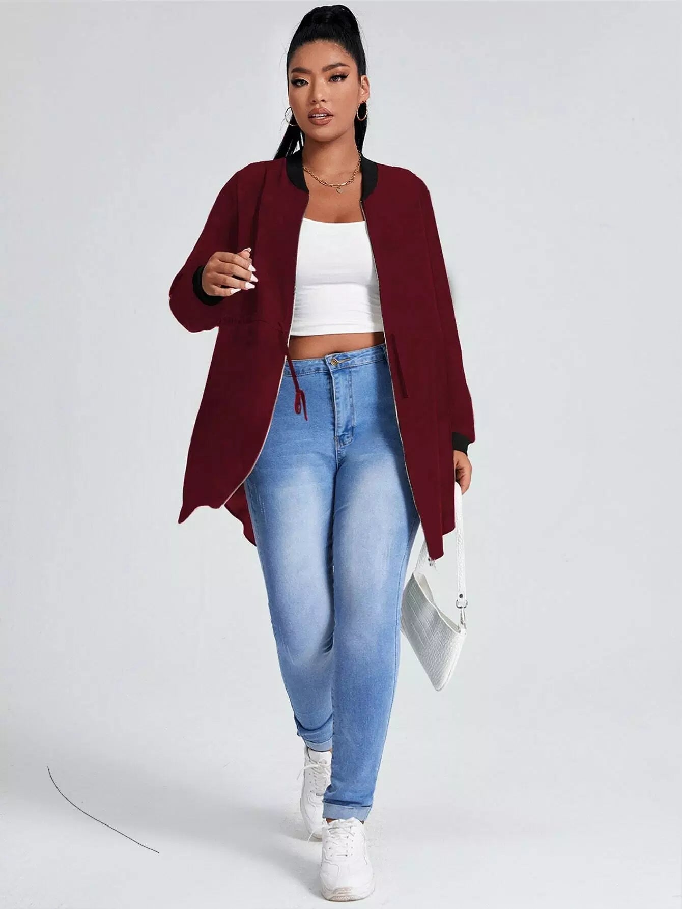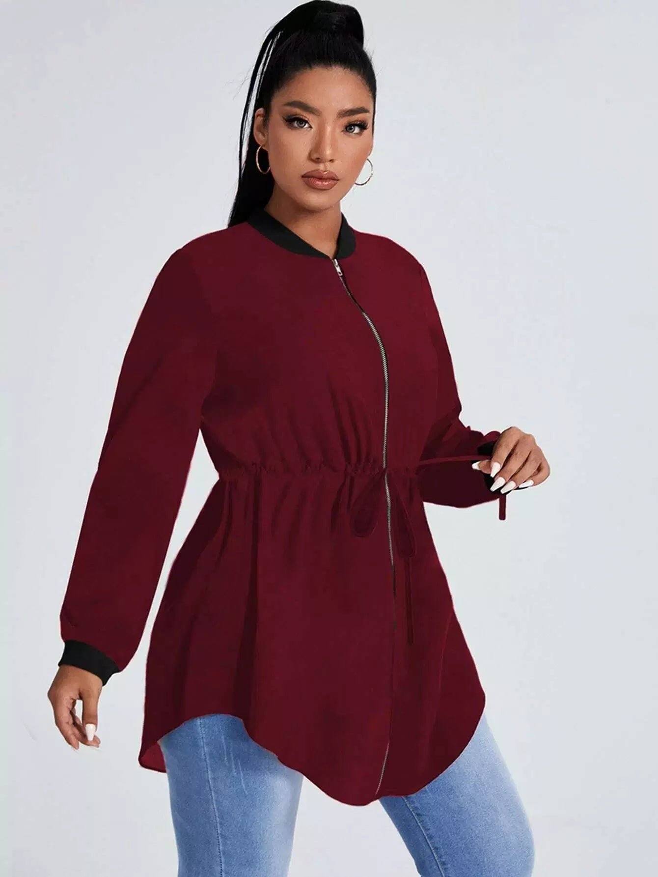 جاكيت بومبر سادة سادة من الأمام بسحّاب أمامي مزين برباط أمامي