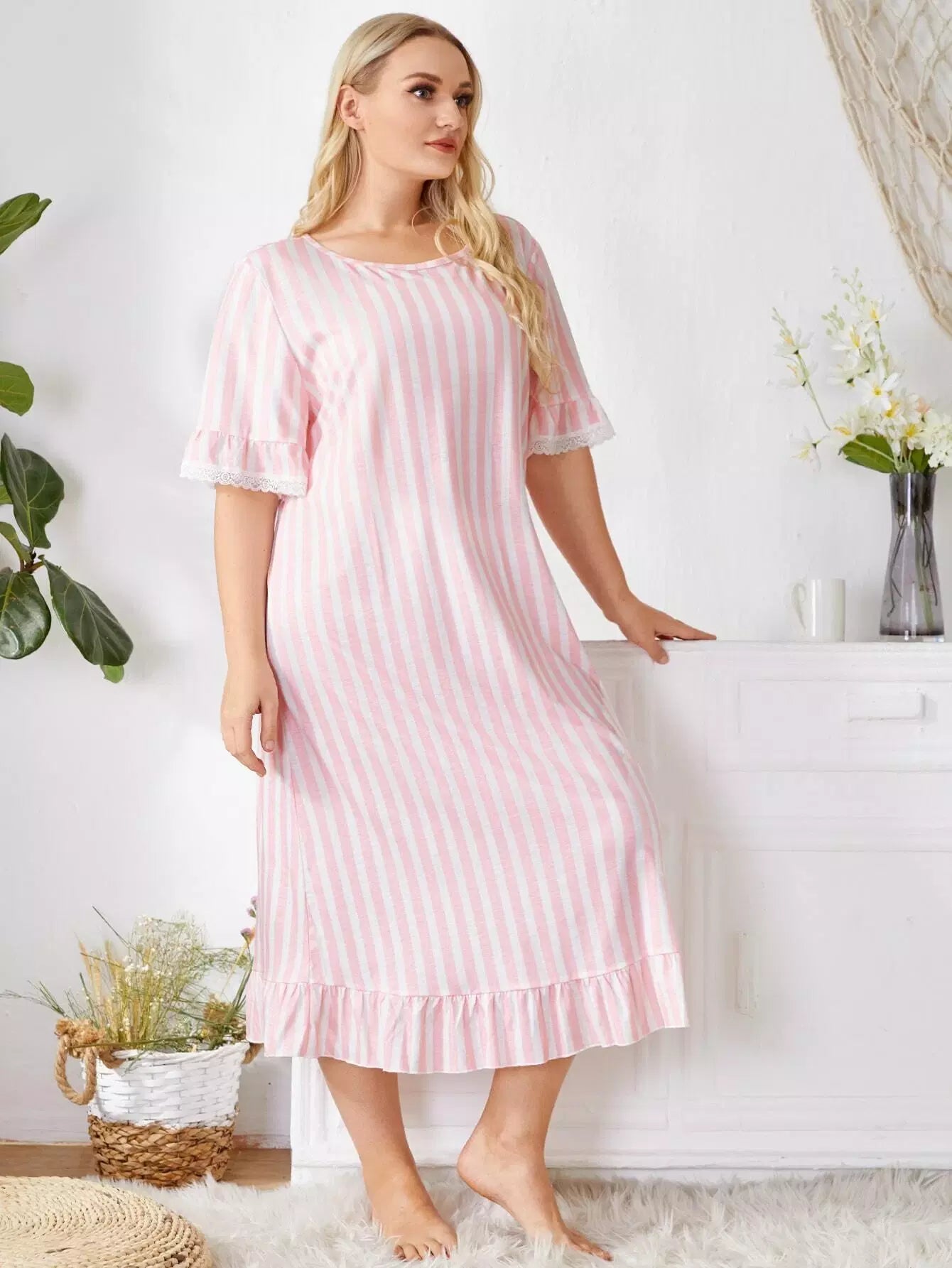فستان سهرة بأكمام مخططة بأكمام مخططة زائد